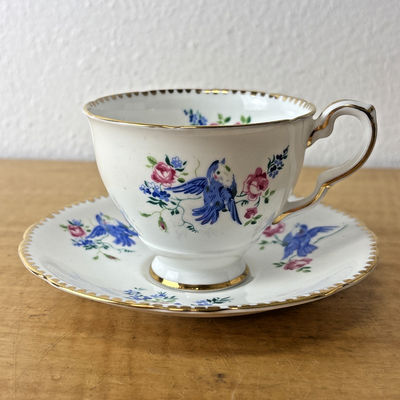 Royal Stafford Blue Bird Tea Cup & Saucer Vintage Bone China Teacup