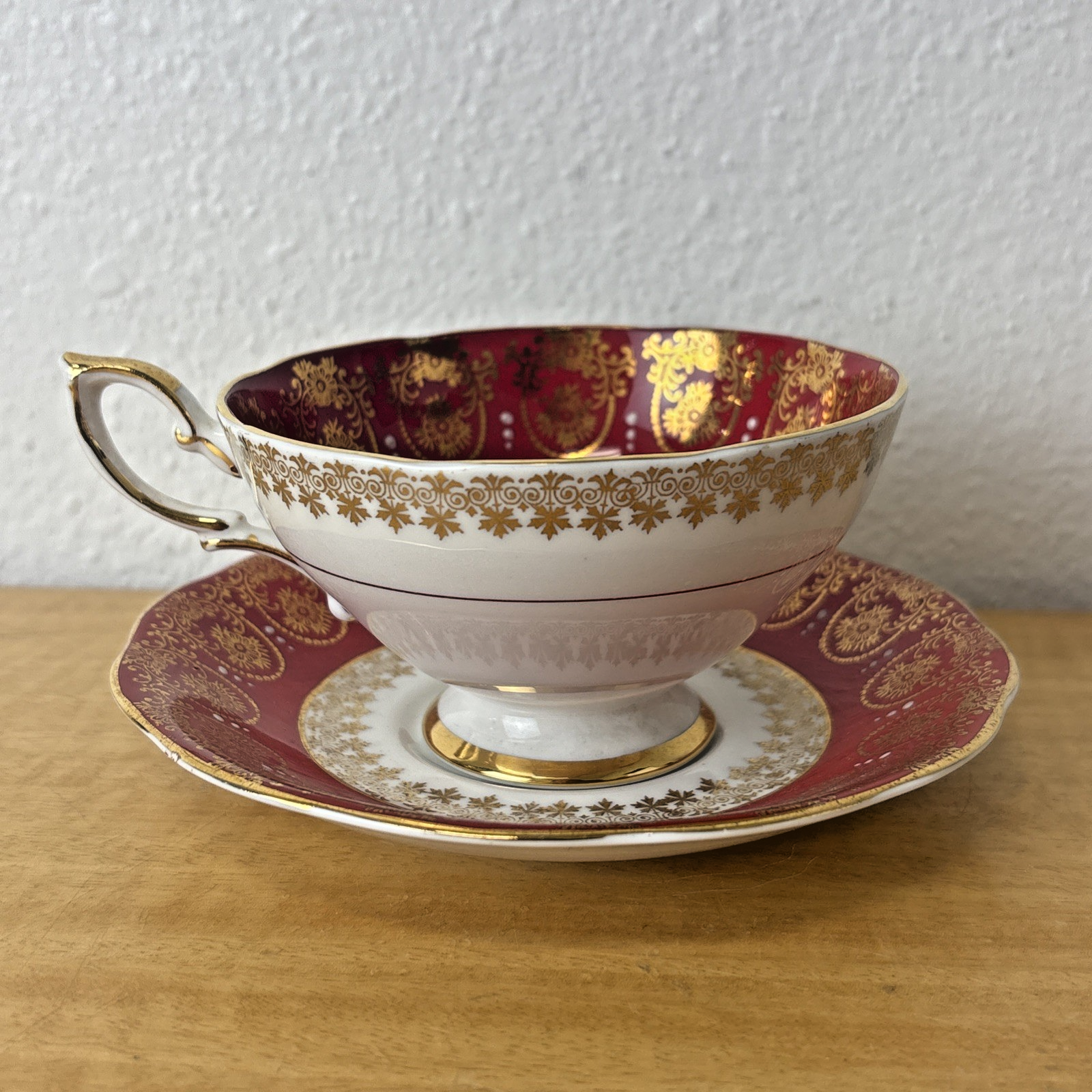 Royal Standard Tea Cup & Saucer English Bone China Porcelain Red Gold