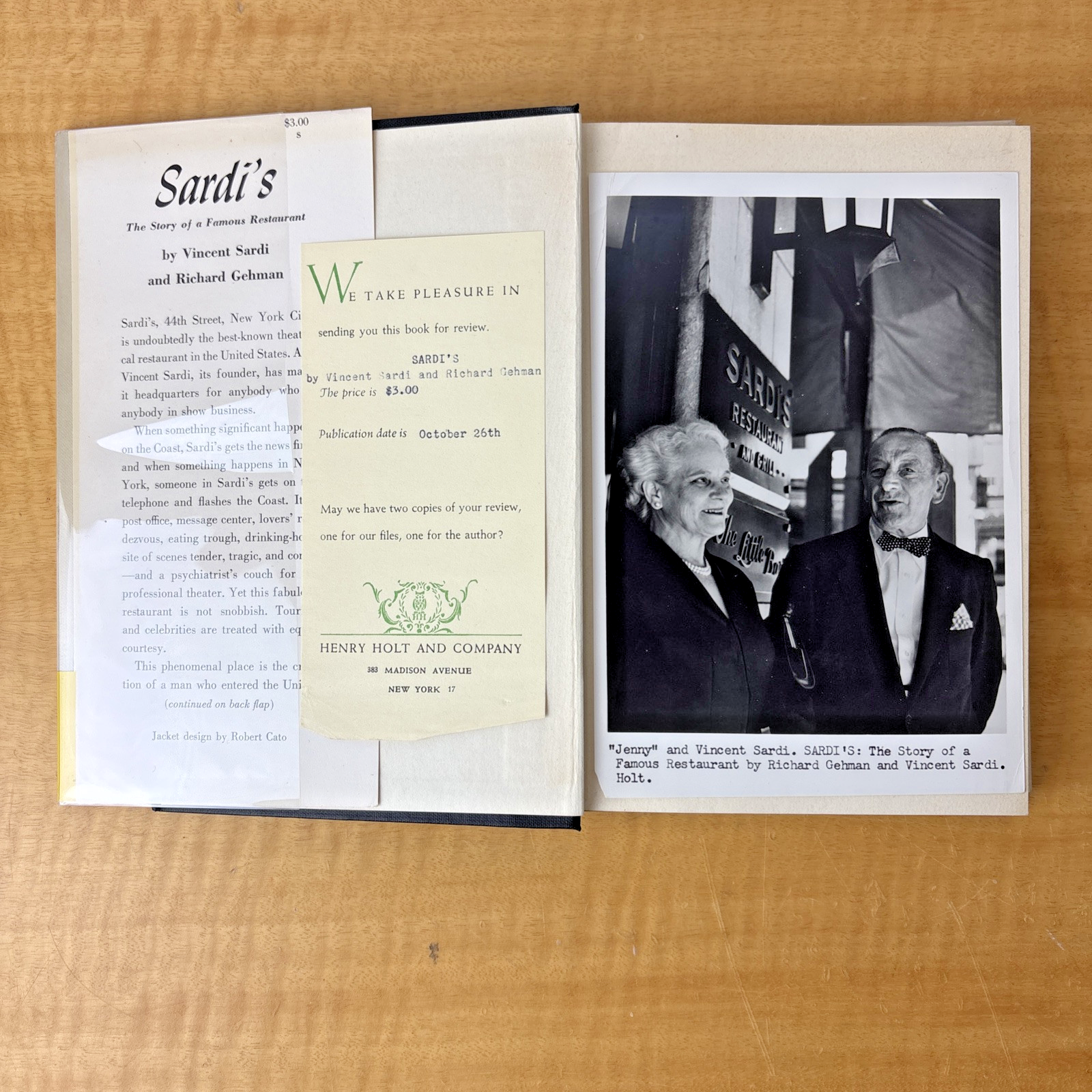 Sardi’s: The Story of a Famous Restaurant by Vincent Sardi, 1953, 1st Edition
