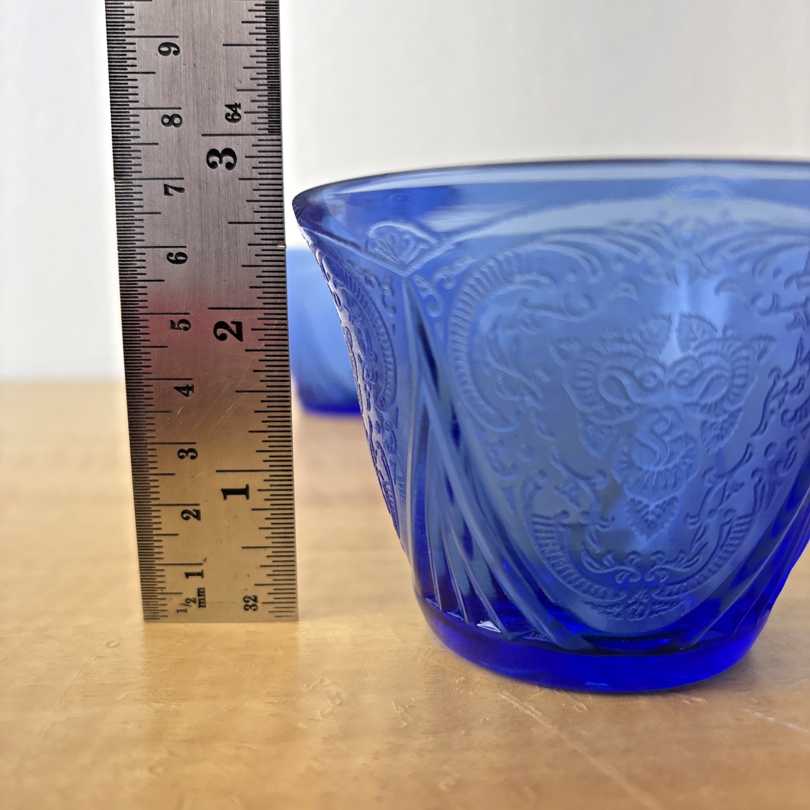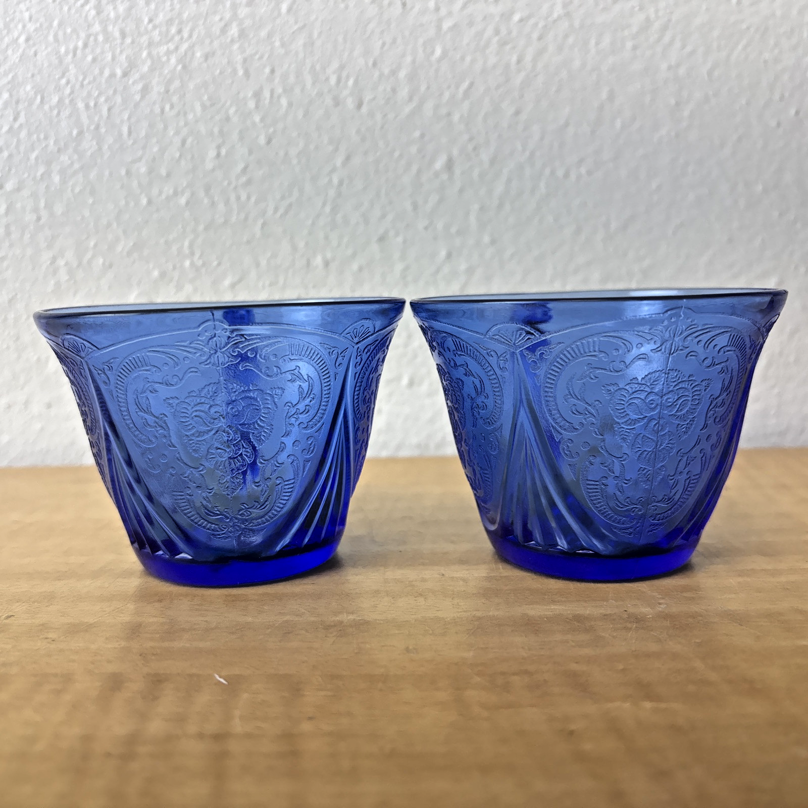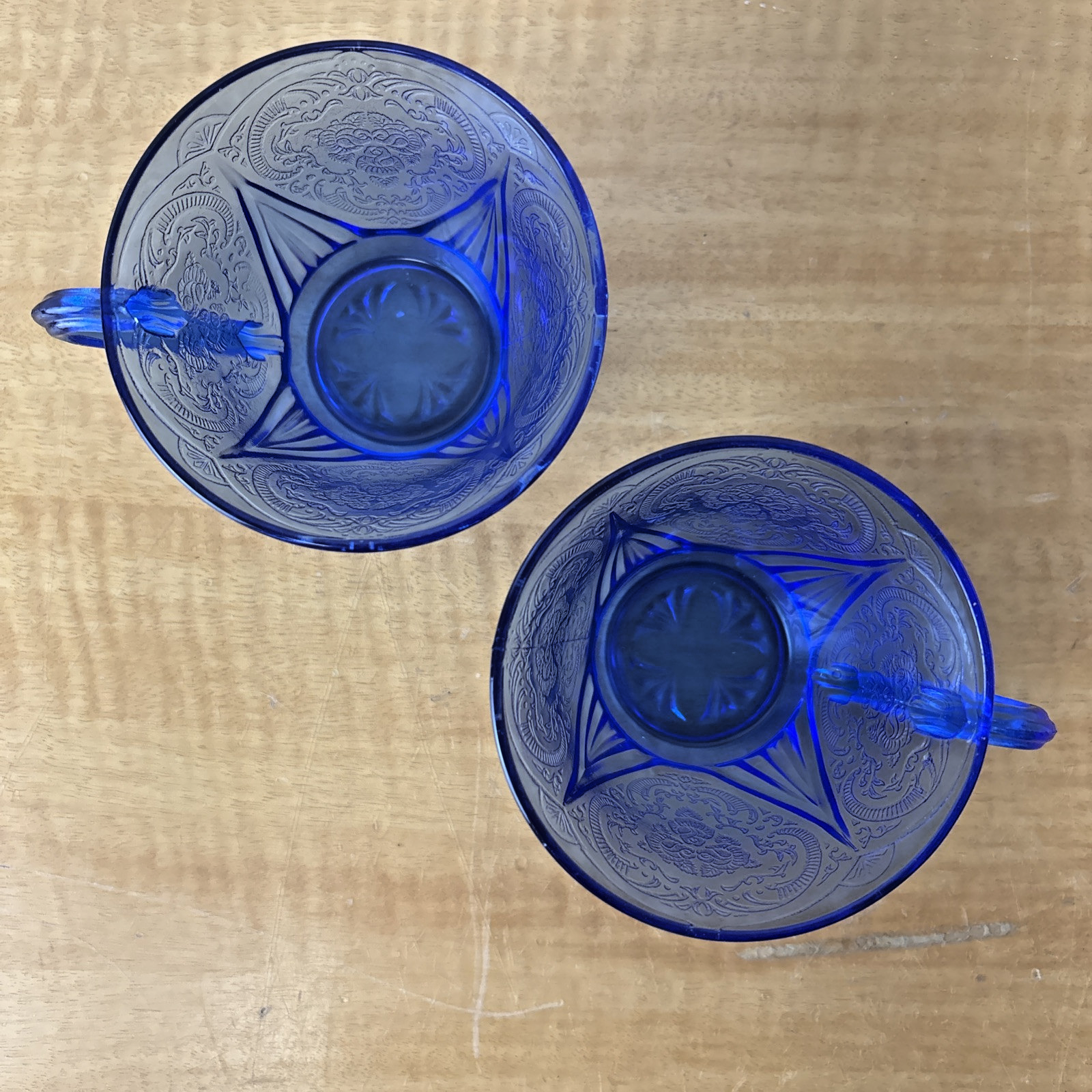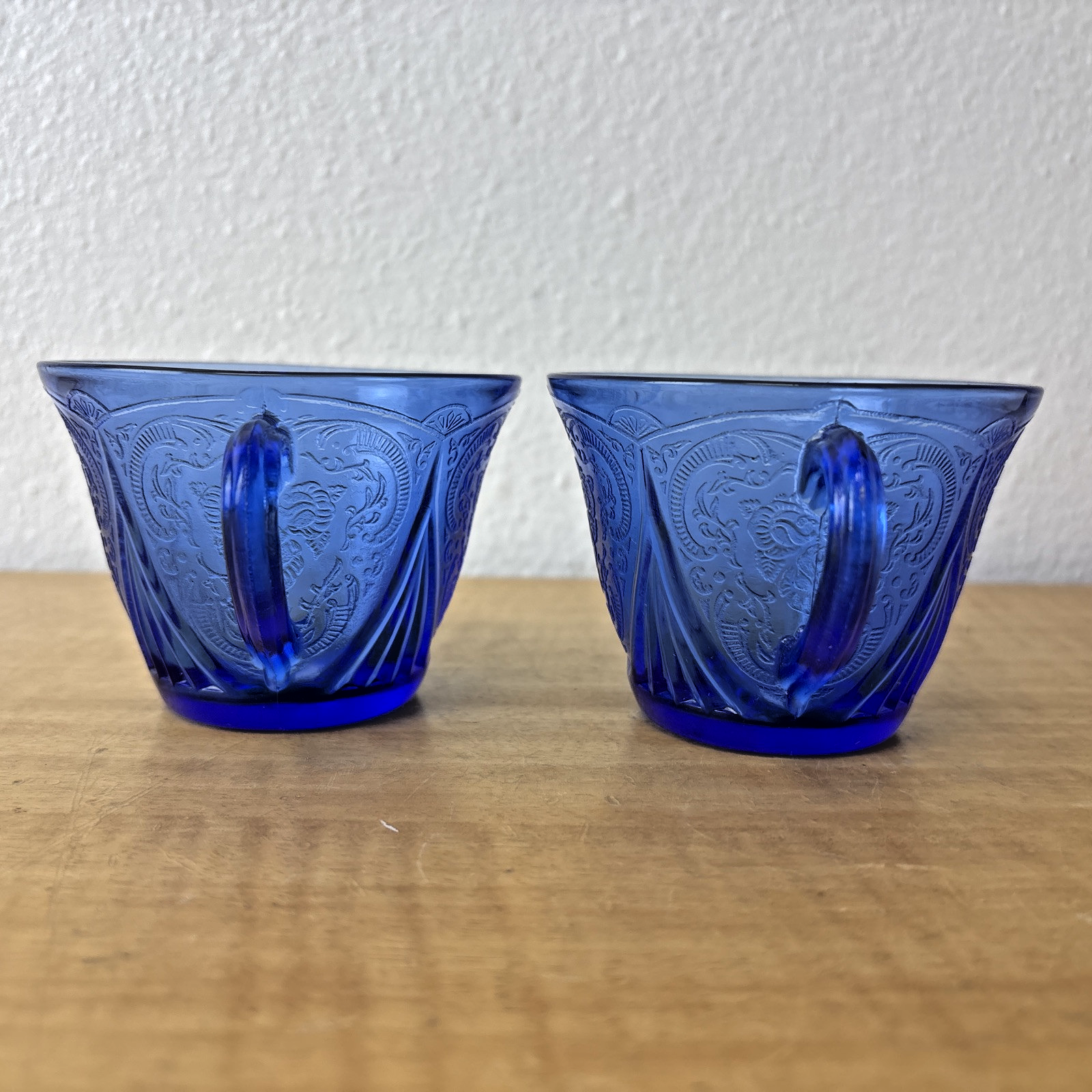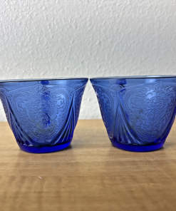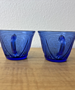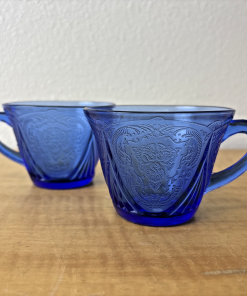 Set of 2 Hazel Atlas Blue Royal Lace Tea Cups