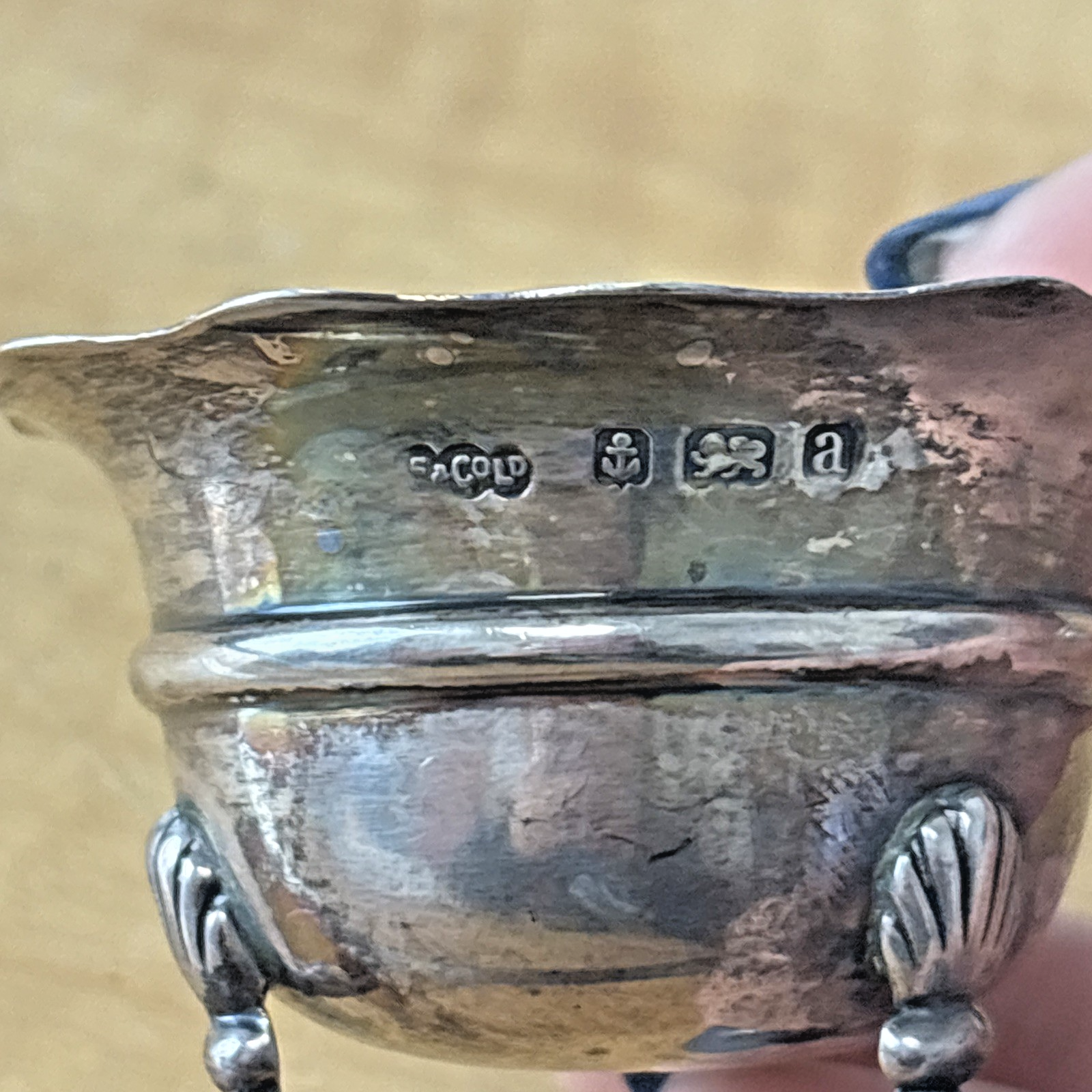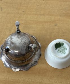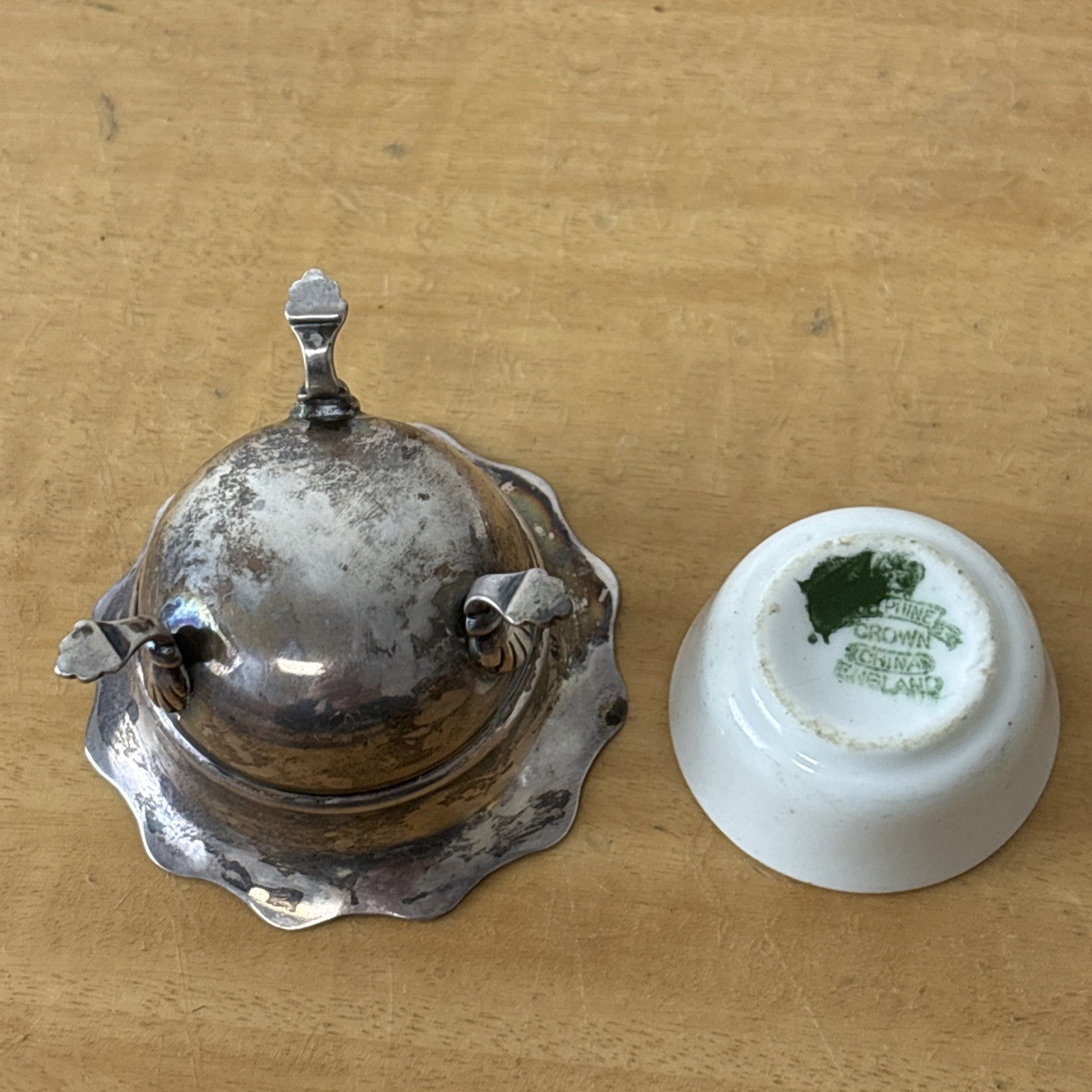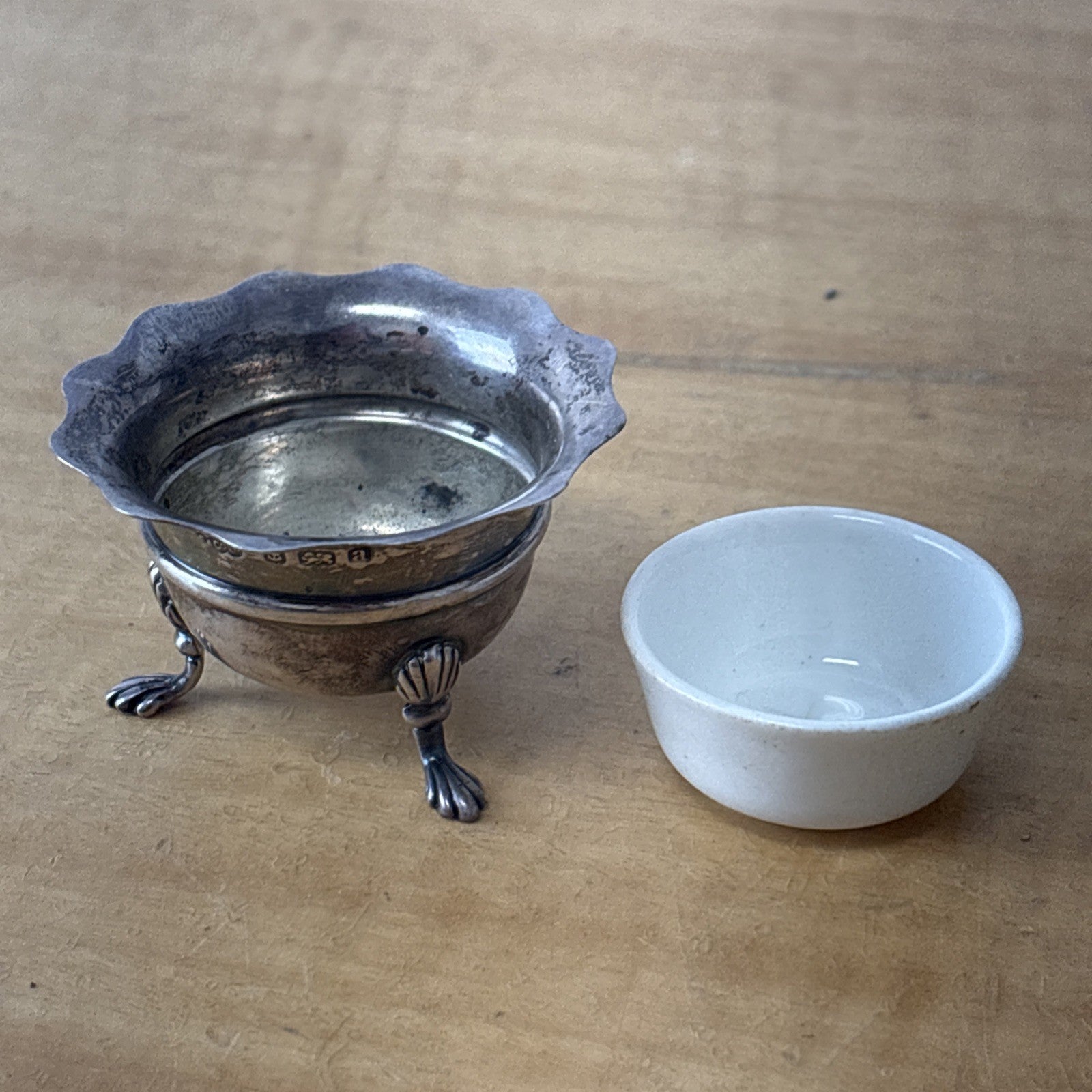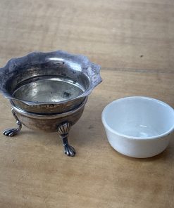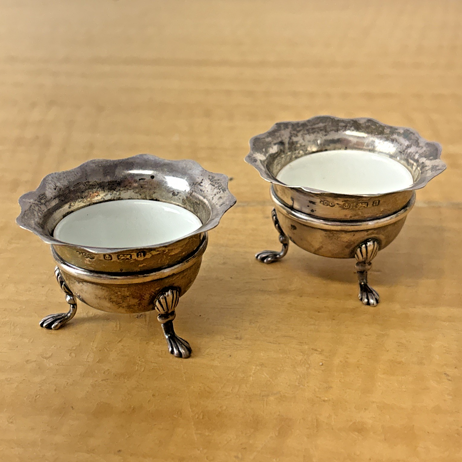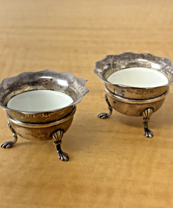 Set of 2 Sterling Silver Salt Cellar Bowls w/ Delphine Crown China Insert