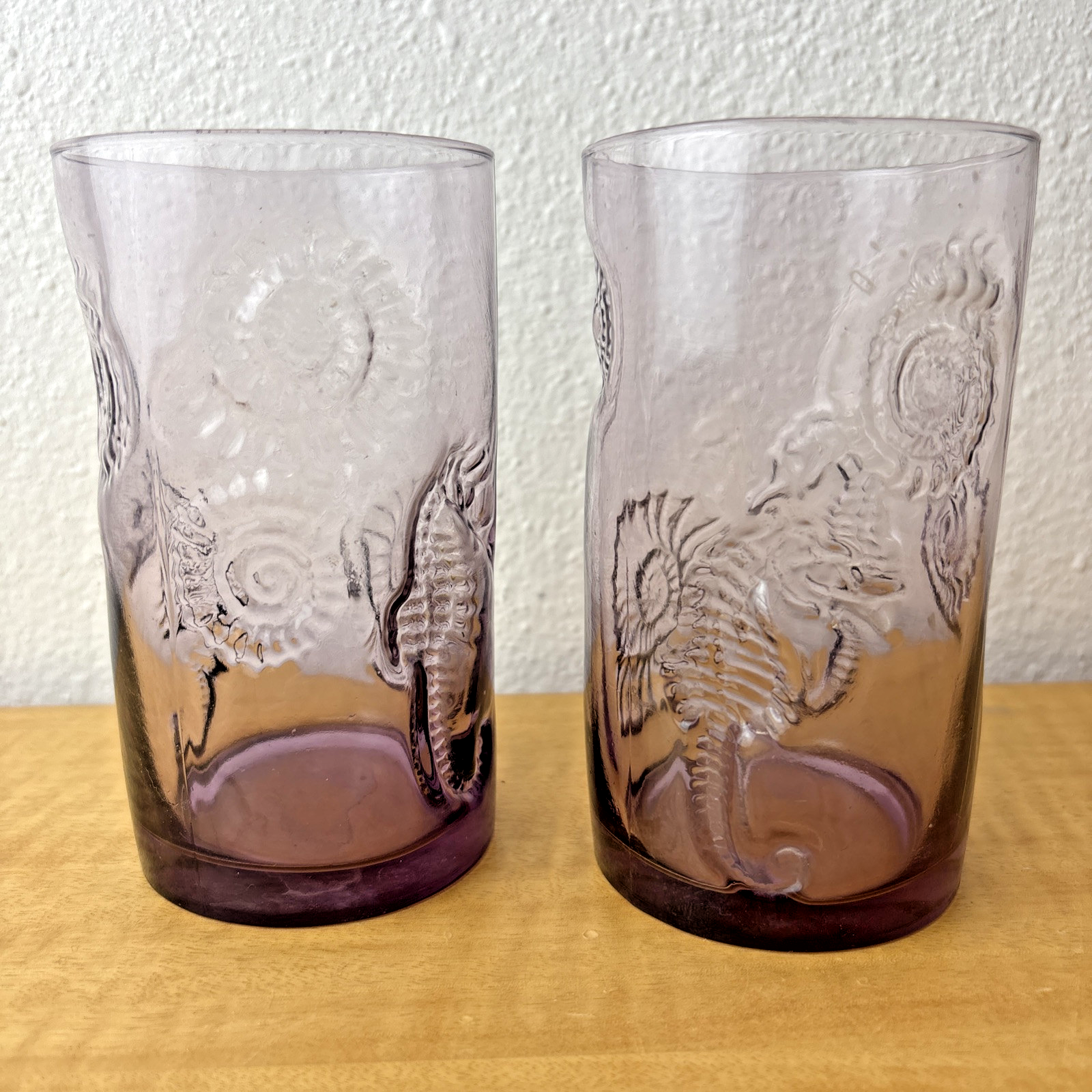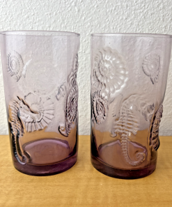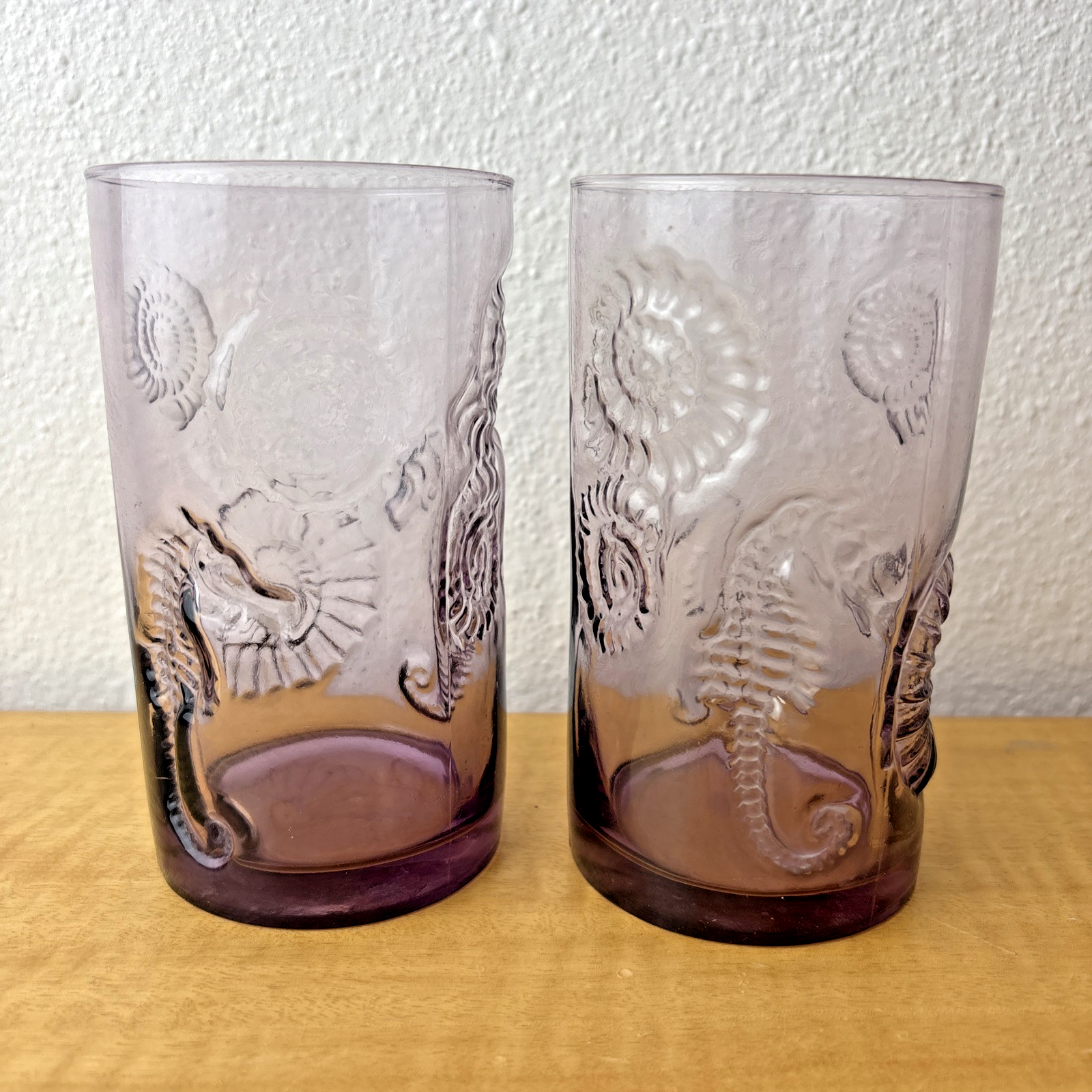 Set of 2 The Cellar Seahorse Embossed Clear Glass Tumbler Vintage 1989