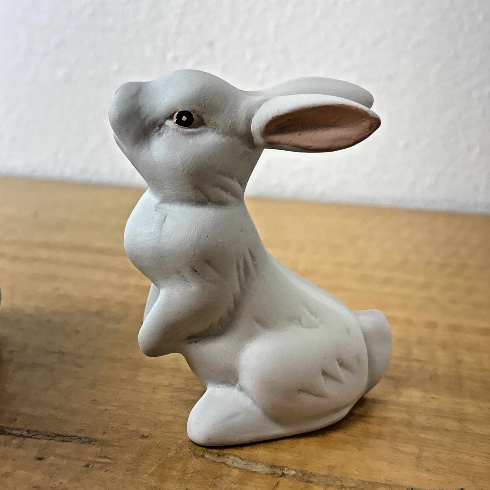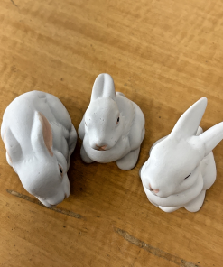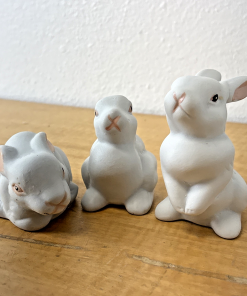 Set of 3 Ceramic White Bunny / Bunnies Pink Nose