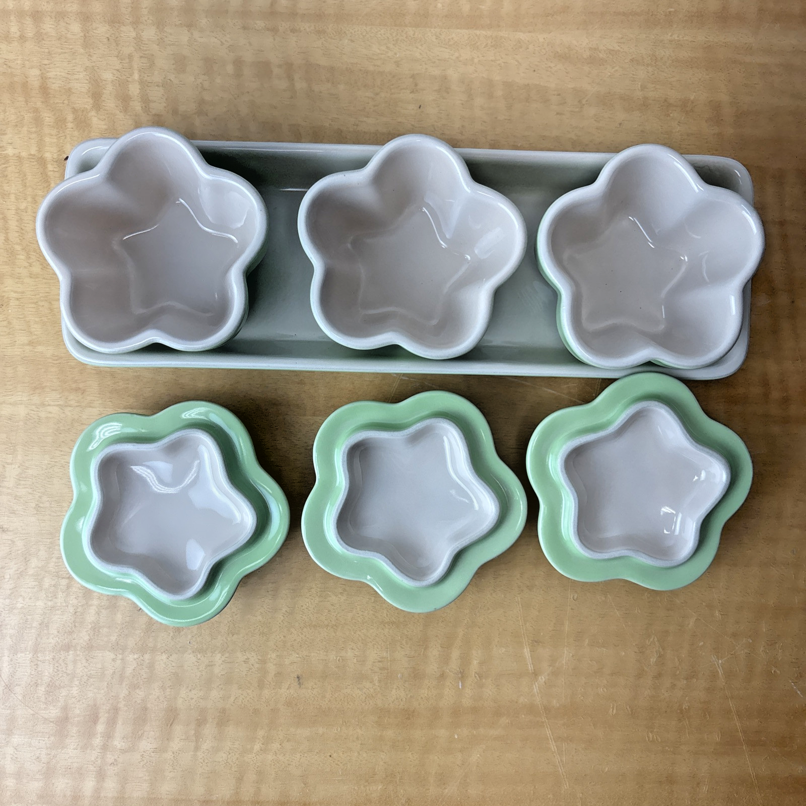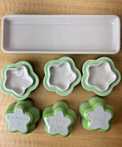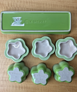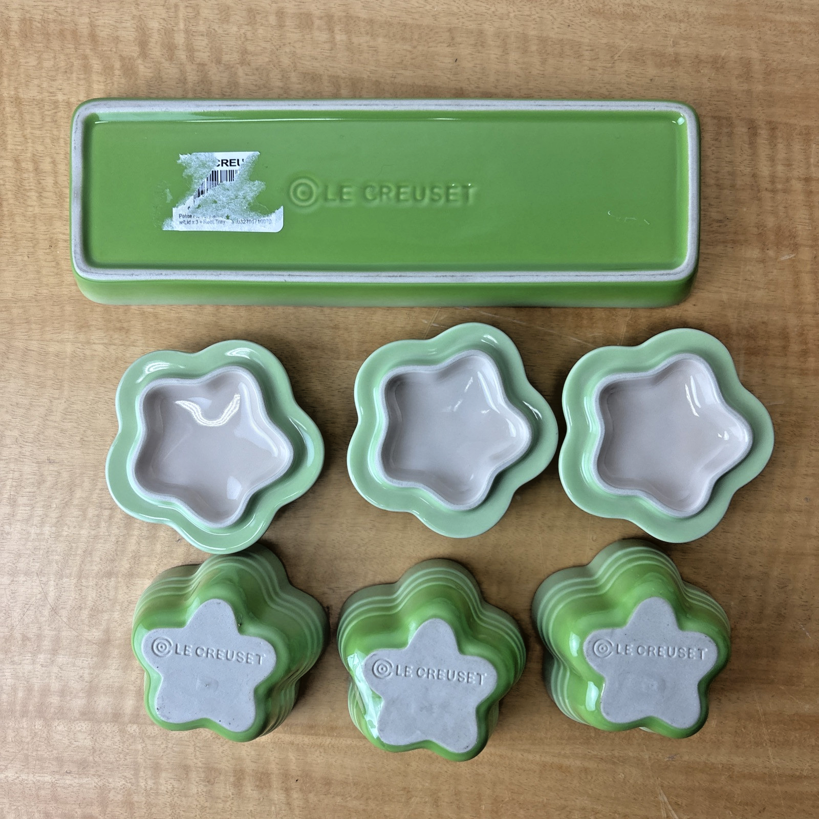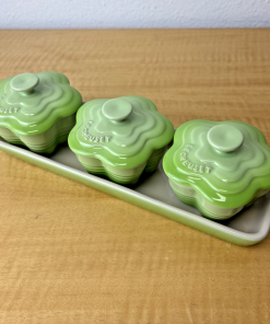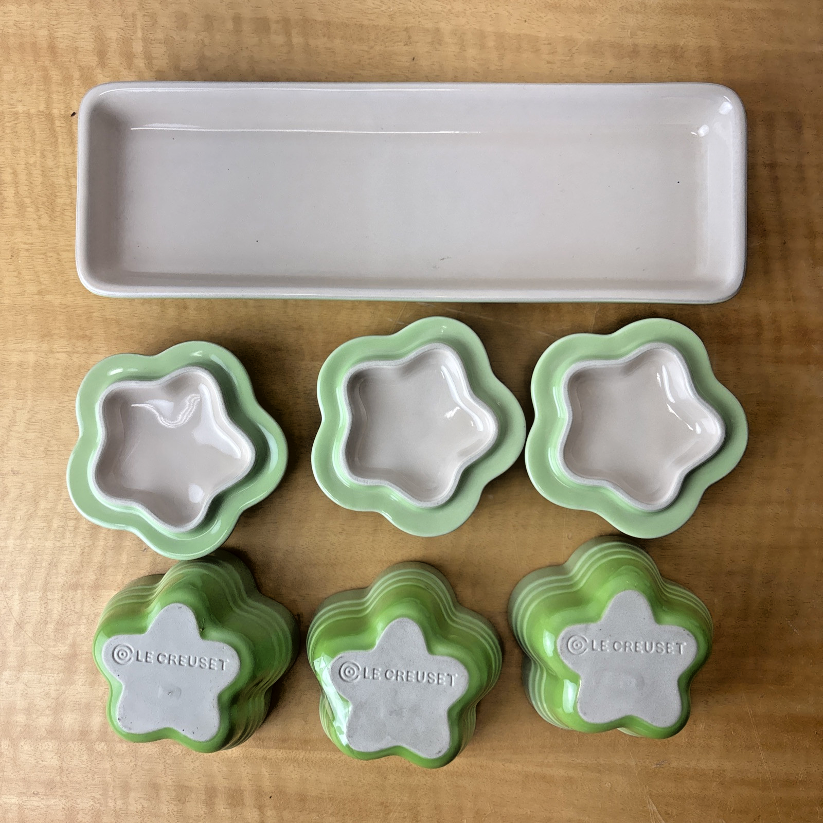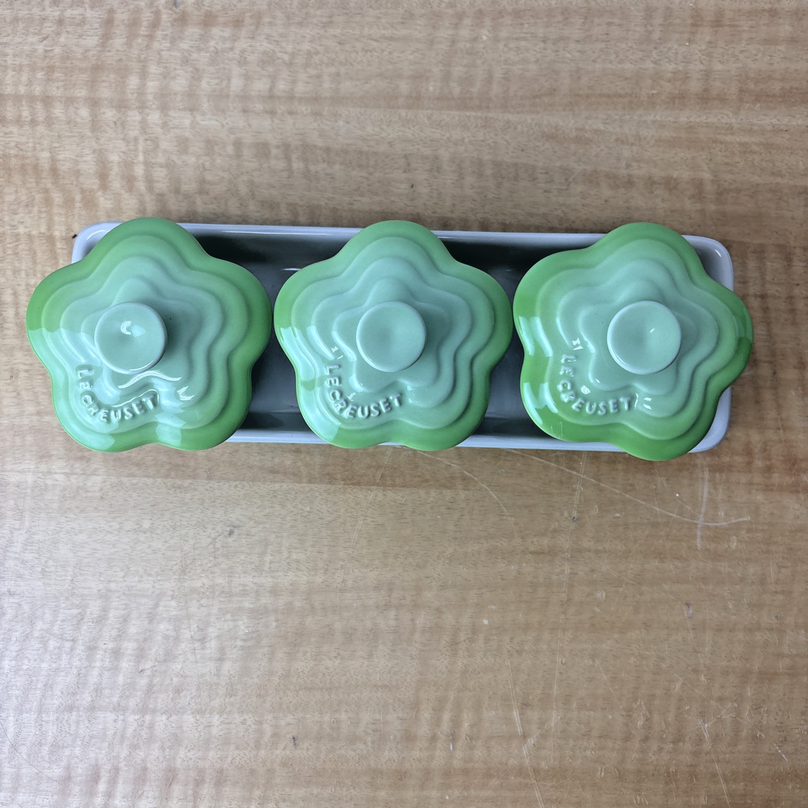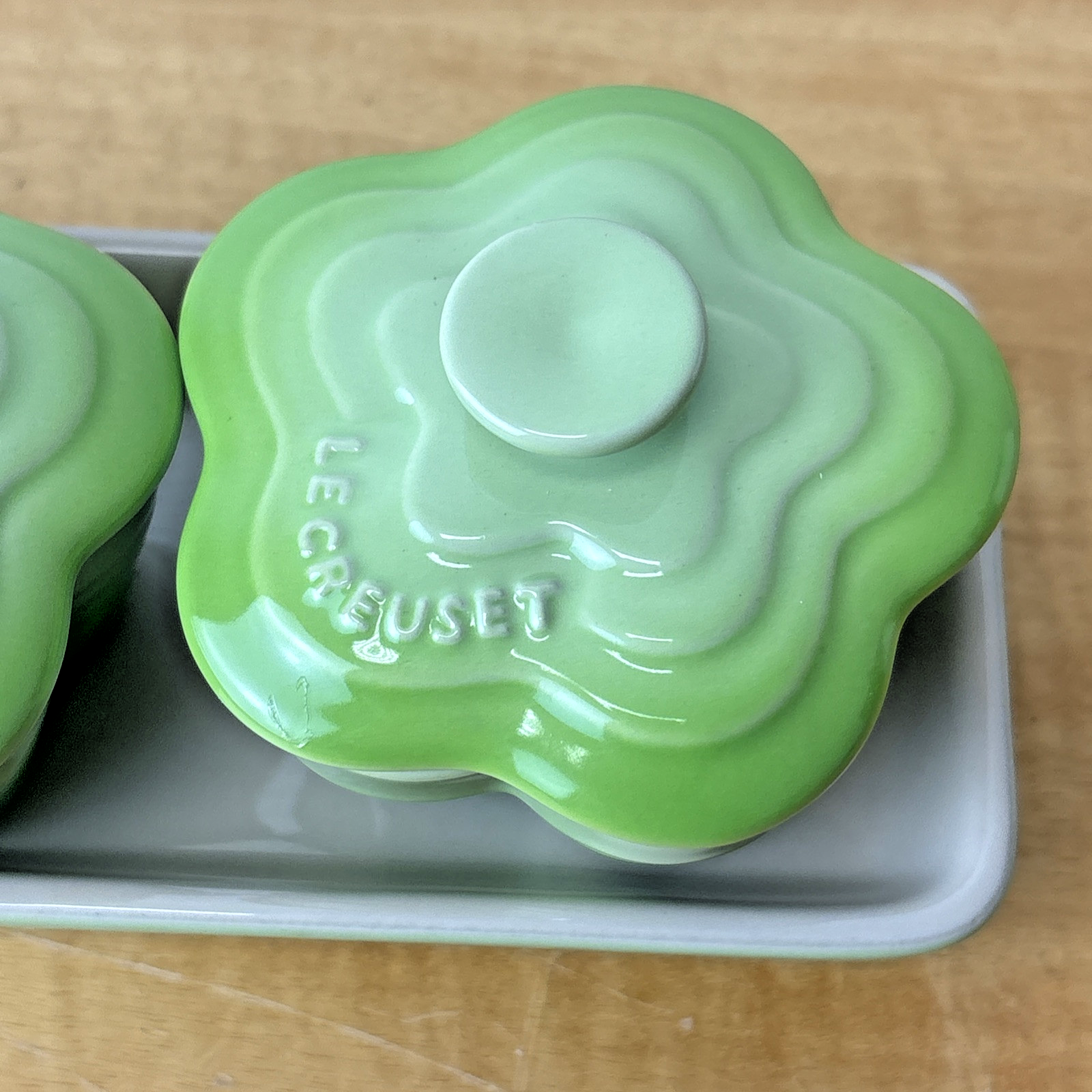 Set of 3 LE CREUSET Petite Ramekins Fleur Collection Light Green Spring Easter