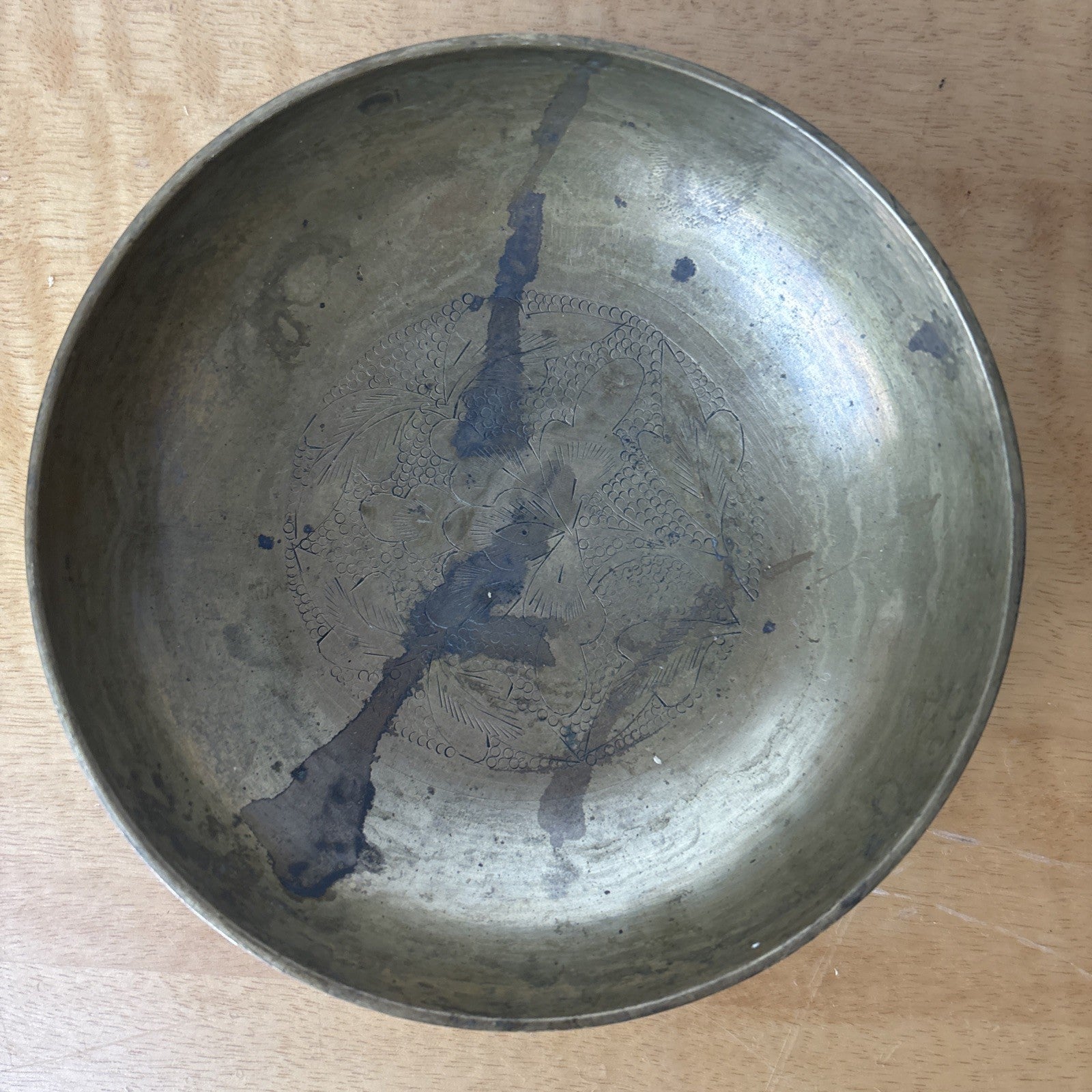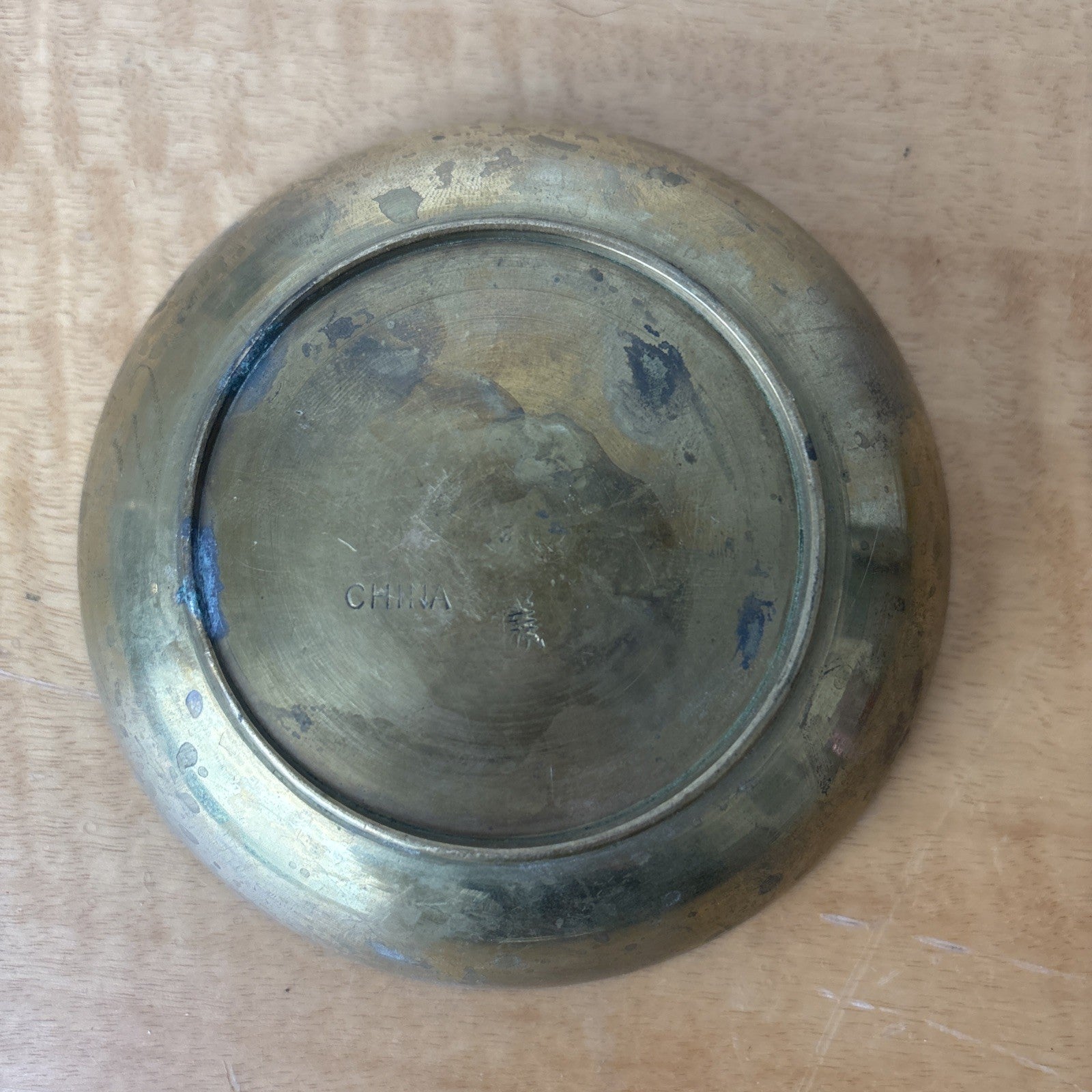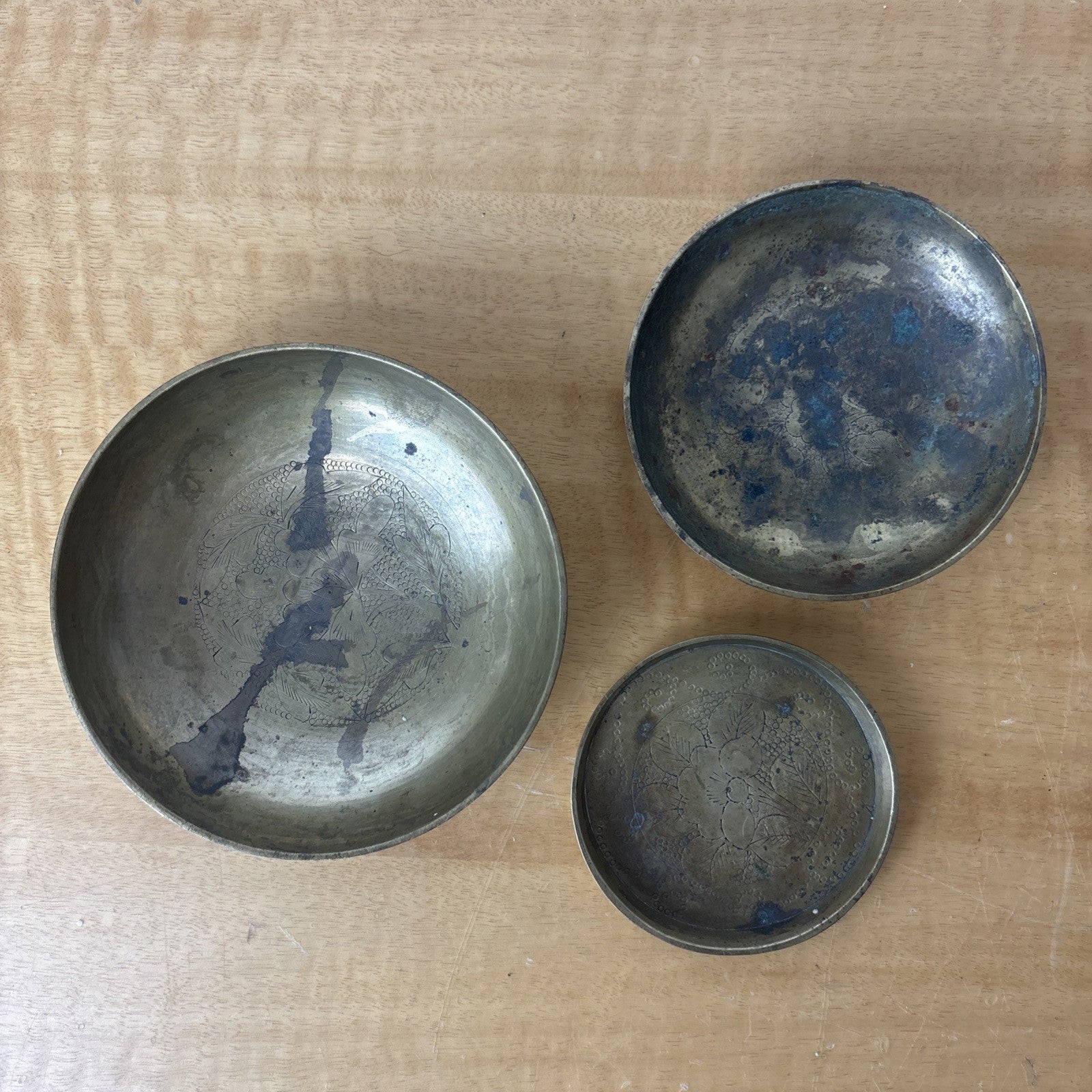 Set of 3 Vintage Brass Bowls / Trays With Designs, Made in China