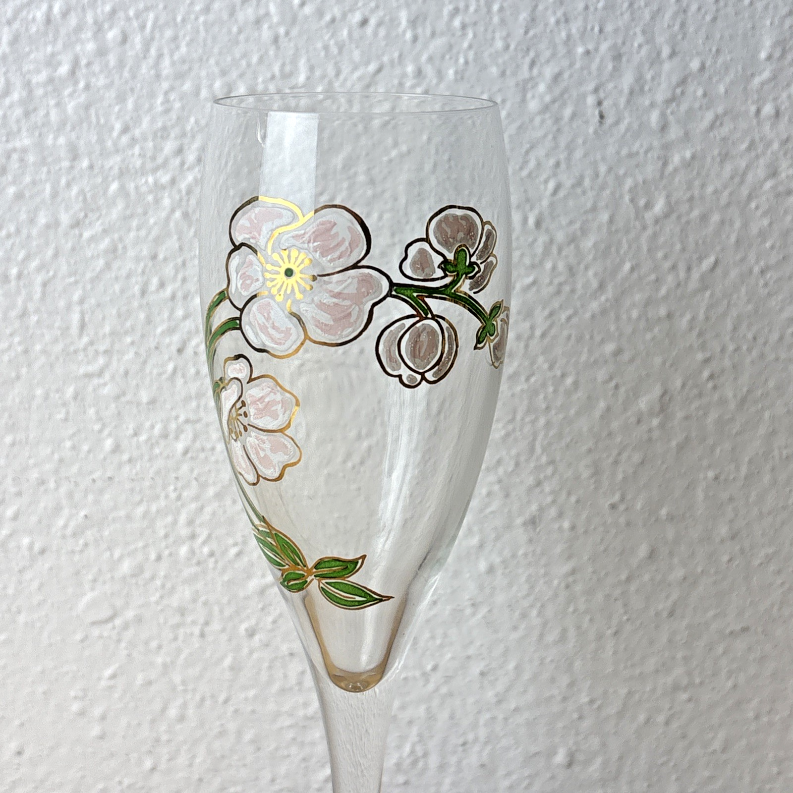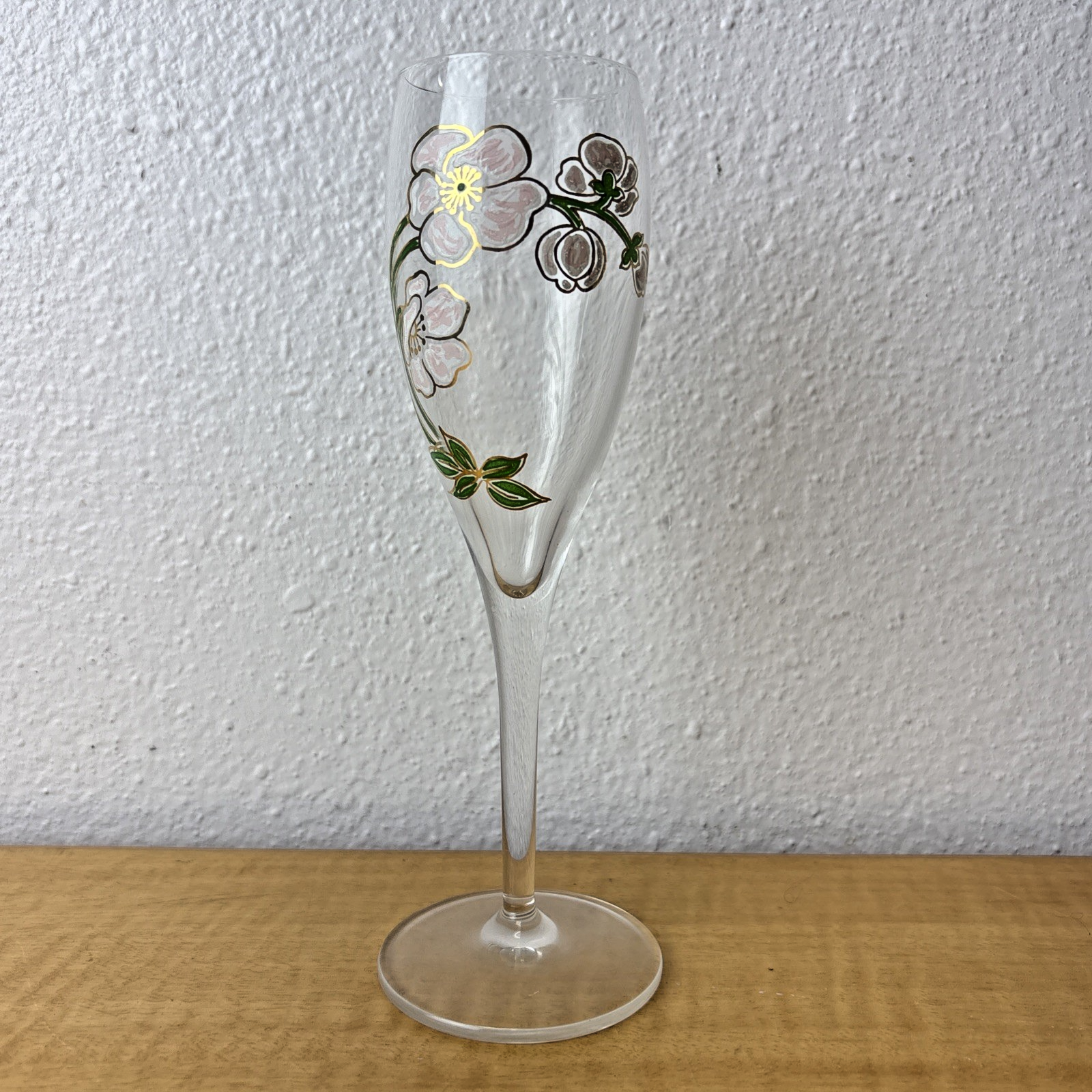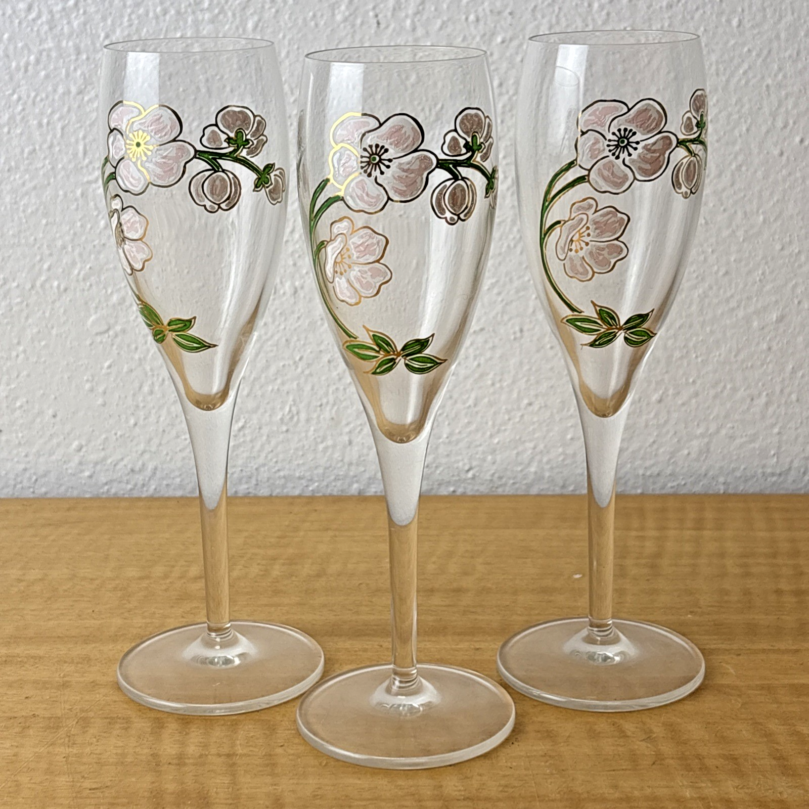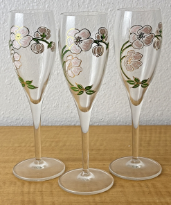 Set of (3) Vintage Perrier Jouet 7 1/2″ Hand Painted Floral Champagne Flutes