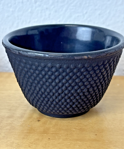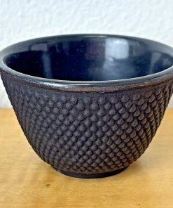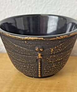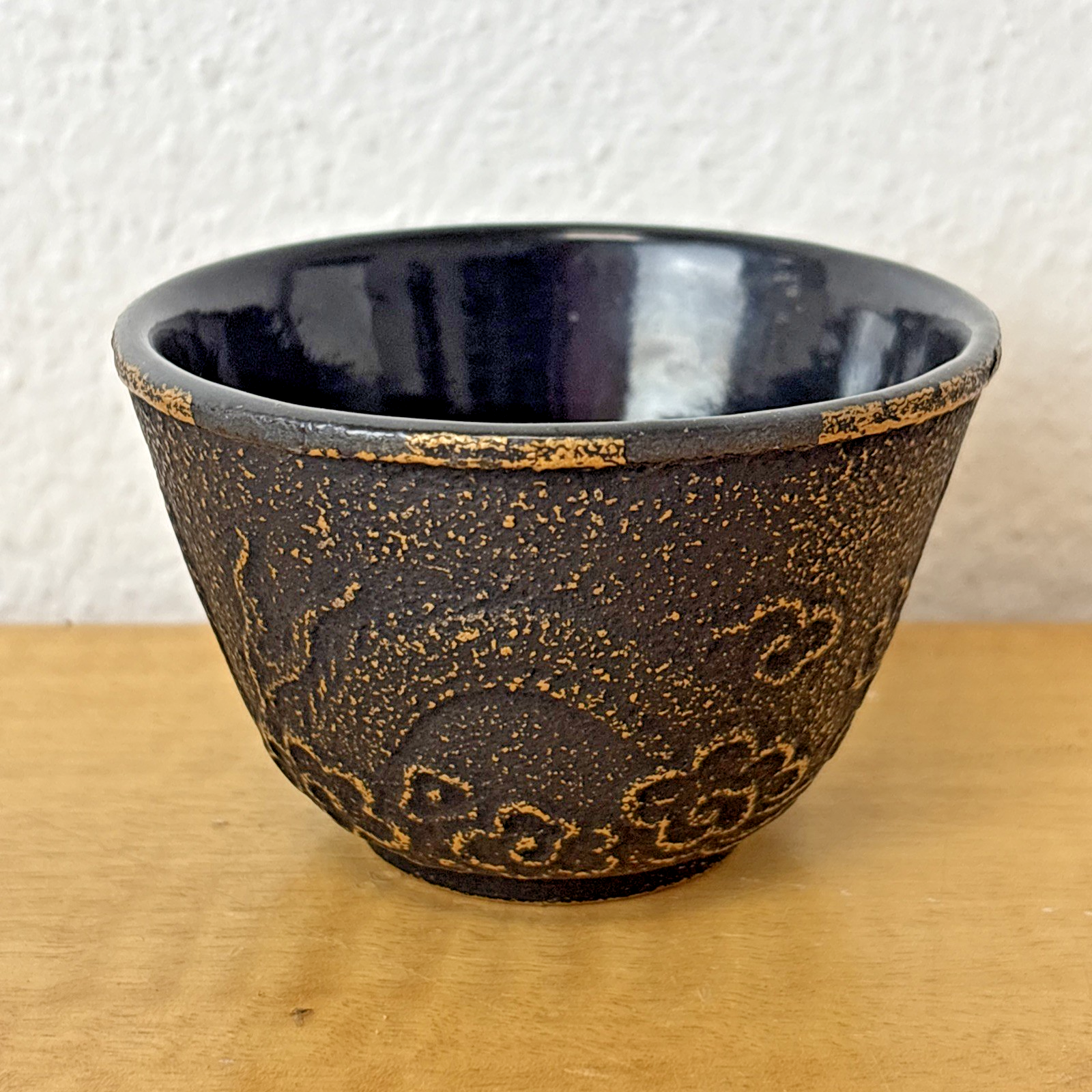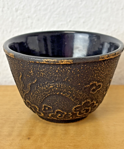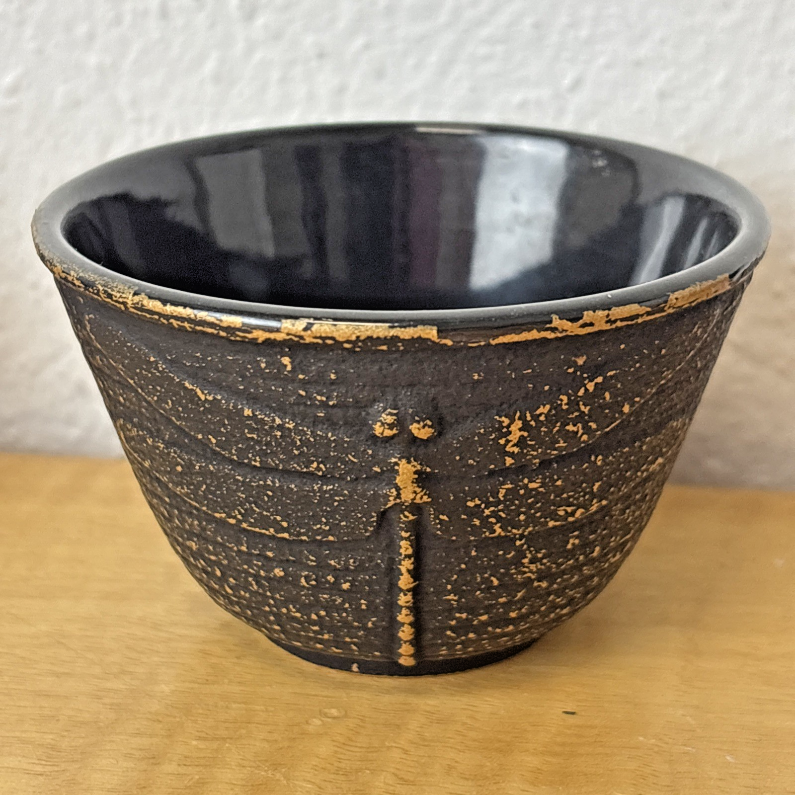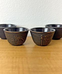 Set of 4 Black Cast Iron Teacups: Enamel Lined | Dragon Fly & Floral Design