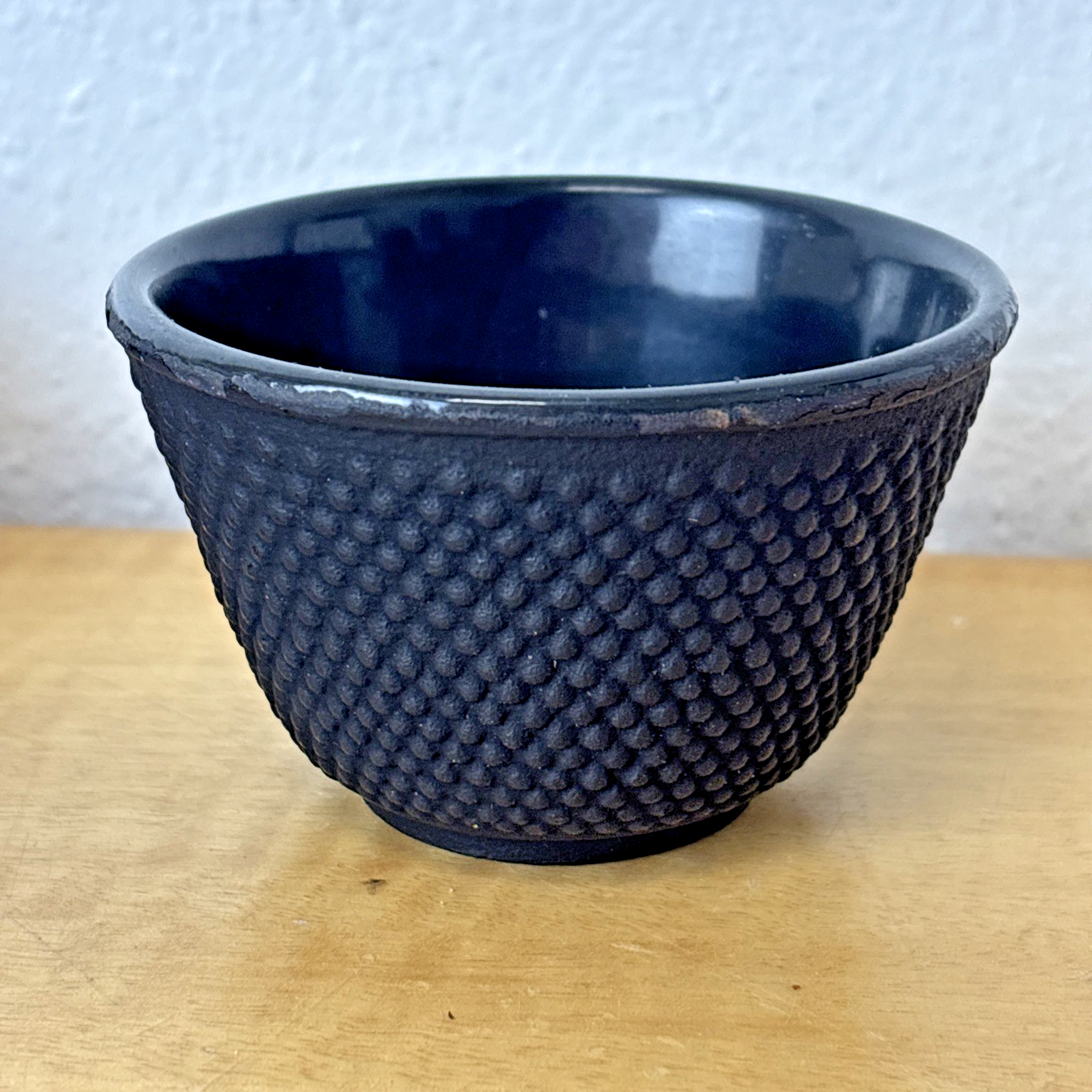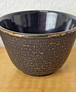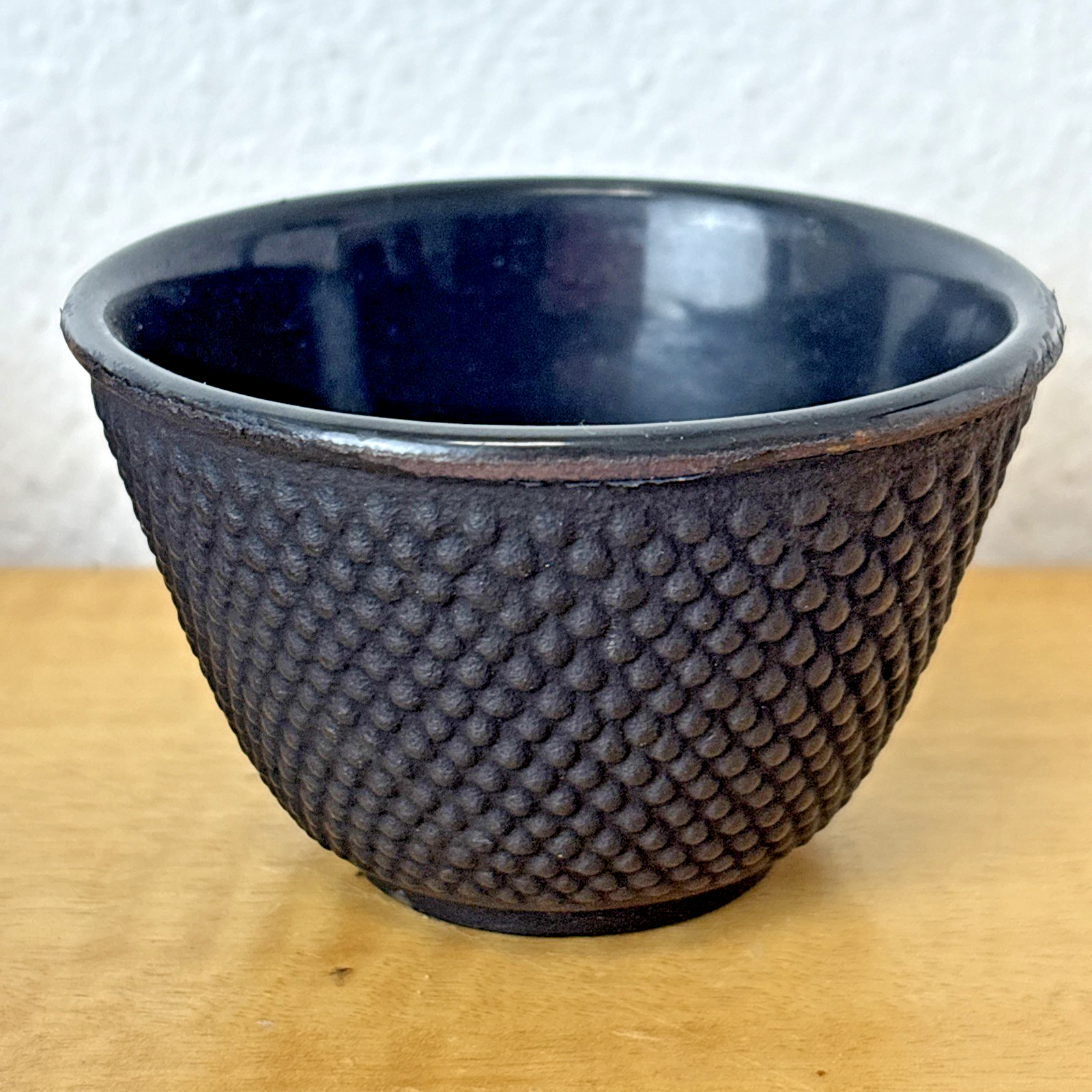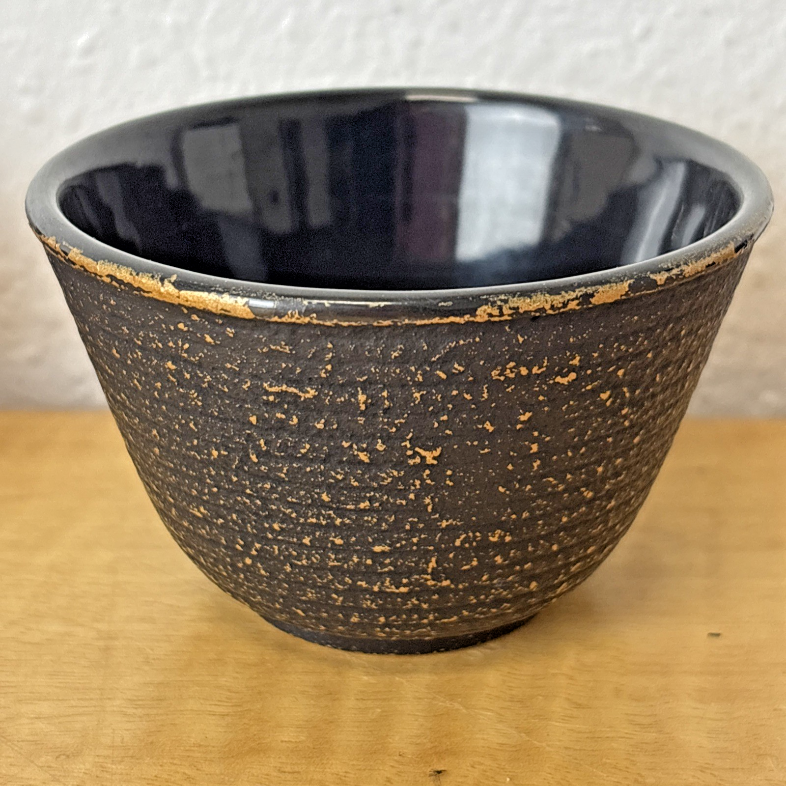 Set of 4 Black Cast Iron Teacups: Enamel Lined | Dragon Fly & Floral Design