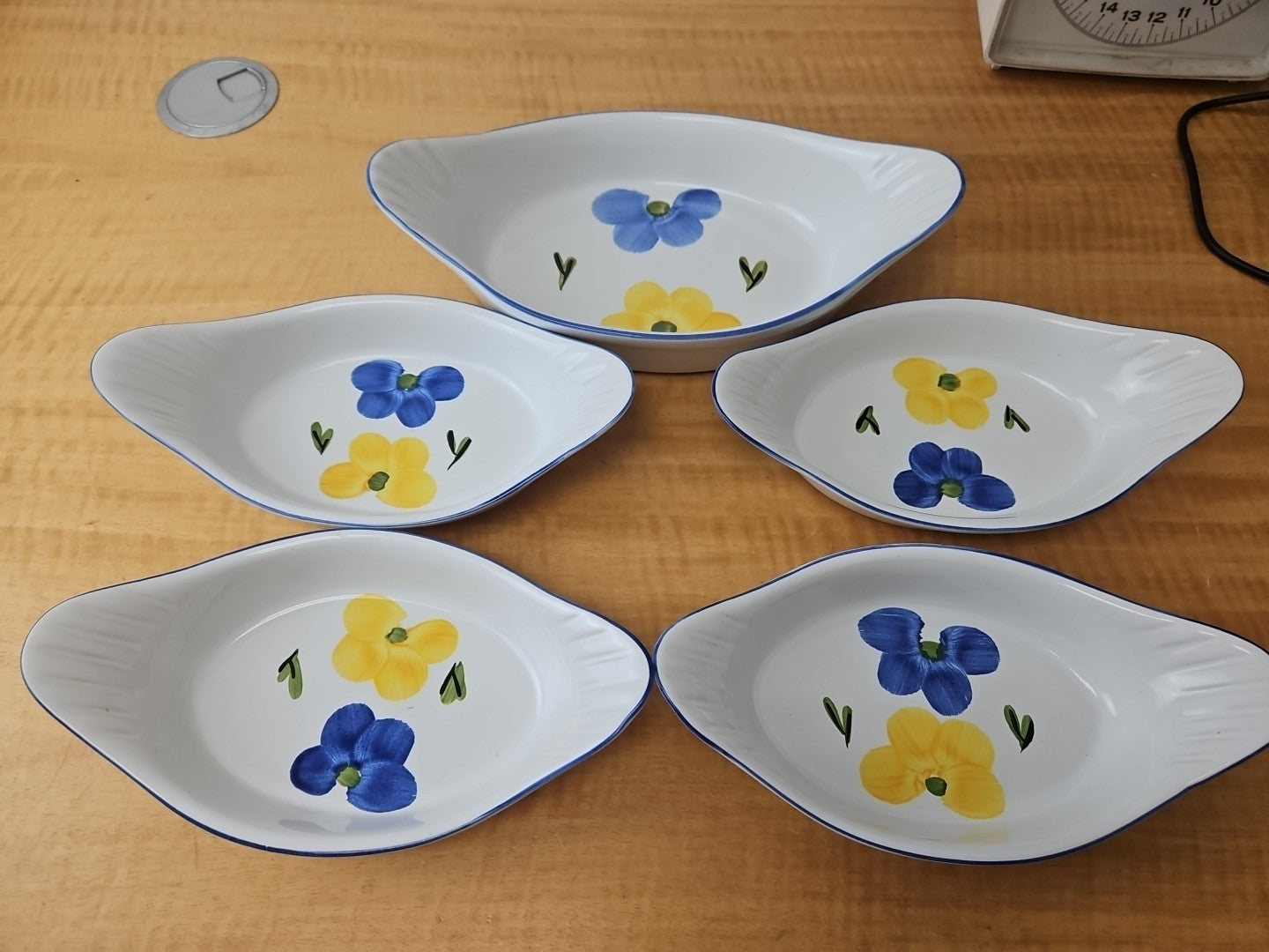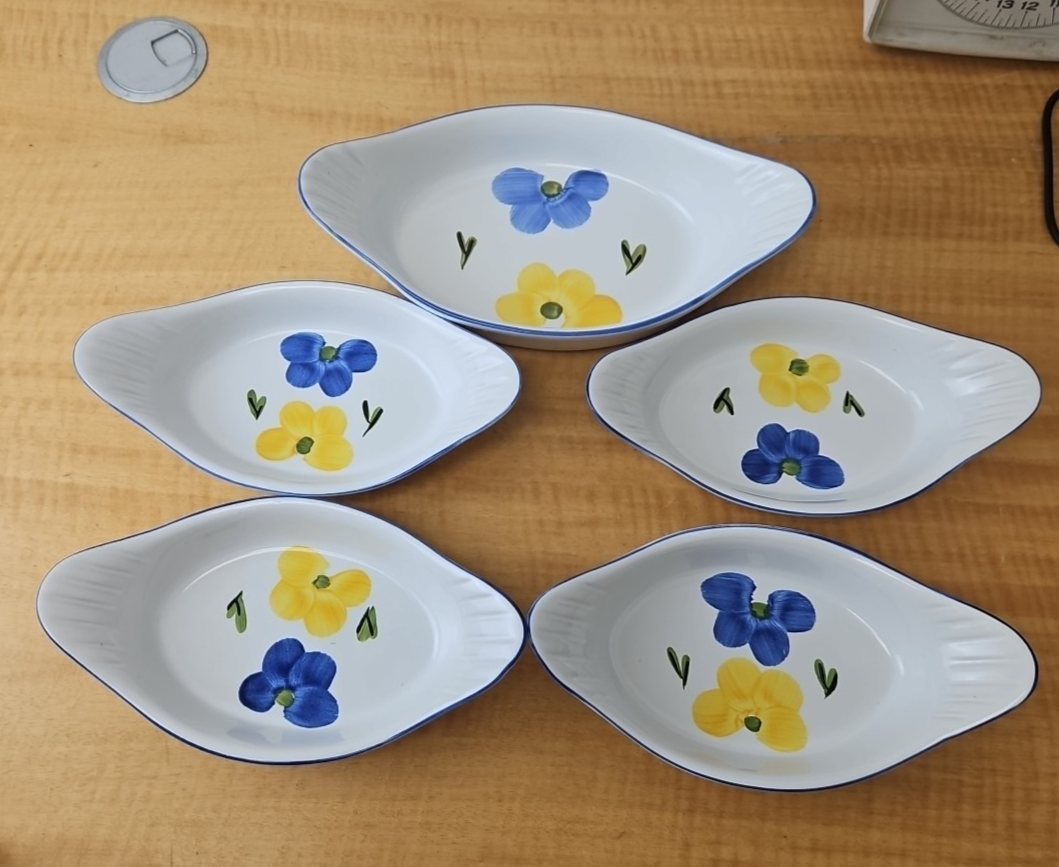 Set of 5 MAXAM hand painted Daisy Bakeware Portugal 4 Small #150 + 1 Large #149