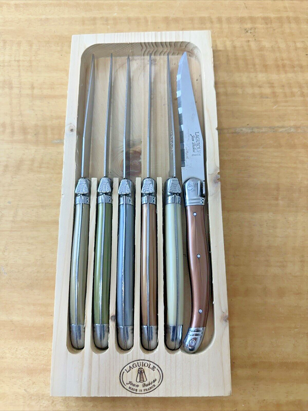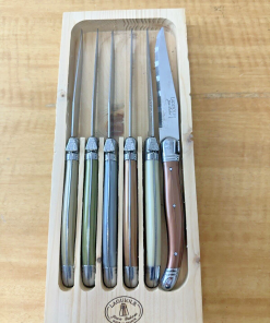 Set of 6 Authentic French Laguiole Steak Knives Multi Color