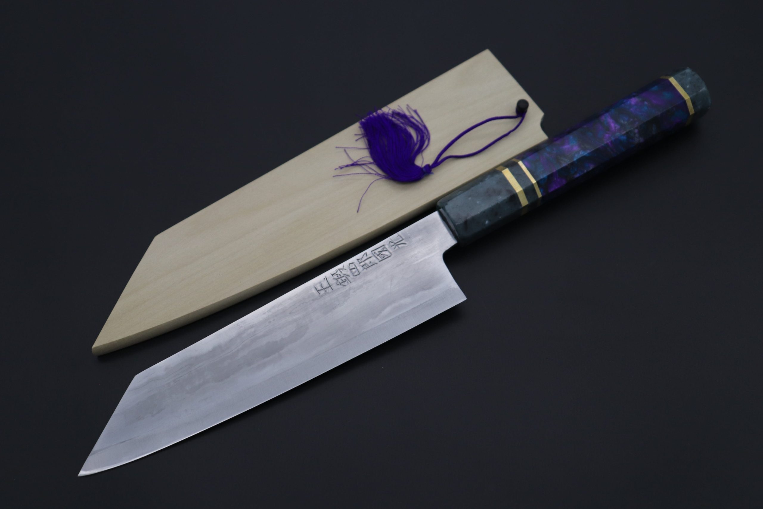 This Custom Limited Edition SHIROU-KUNIMITSU TAMAHAGANE Bunka 190mm knife was produced in collaboration with a Custom Handle Maker, who makes beautiful “one-of-a-kind” handles.