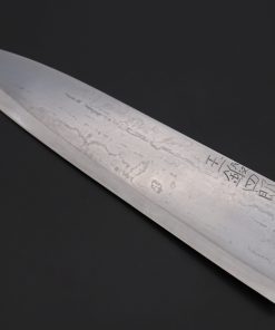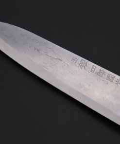 One of our knife experts, who has used and owned Tamahagane knives, stated although Tamahagane steel knives has several demerits —Such as being very prone to discoloration and rust, and not reaching the same Rockwell hardness as popular Japanese carbon steels (e.g. White Steel No.2, Blue steel No.2 and Aogami Super)— he personally felt Tamahagane knives have their own unique appealing warmth and spirit, and their own ‘mysterious’ cutting power. Even though our knife expert is very experienced, he was still very excited to spend time with the Tamahagane steel knives and sharpen them.
