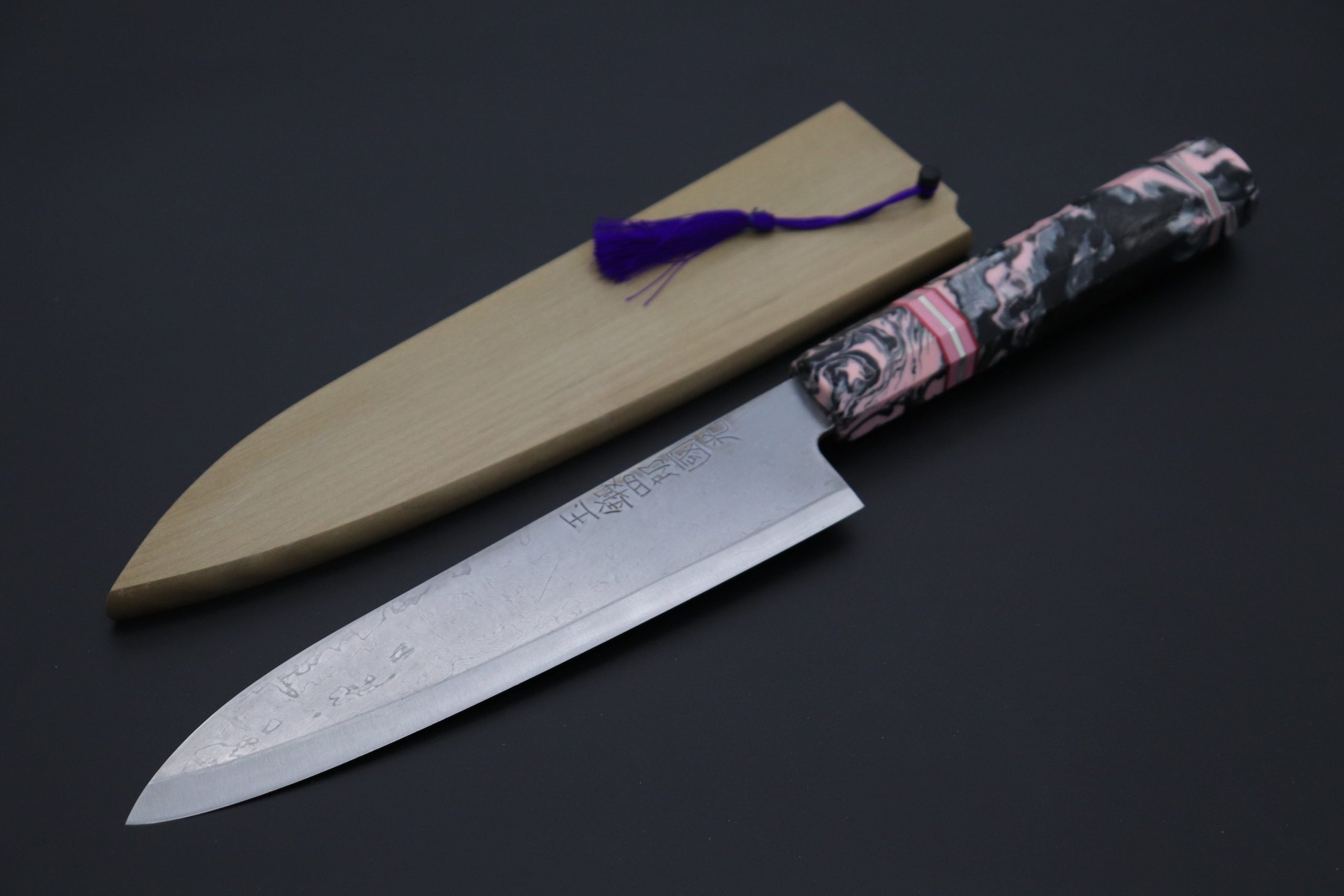This Custom Limited Edition SHIROU-KUNIMITSU TAMAHAGANE Wa-Gyuto 200mm knife was produced in collaboration with a Custom Handle Maker, who makes beautiful “one-of-a-kind” handles.