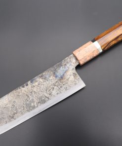 Each one of the unique Kurouchi (“Black forged”) finished blades has an uneven surface and a non-uniform finish. So, if you are looking for a very neat knife, with precise details and great ‘fit & finish’, these Shirou-Kunimitsu handmade traditional forged knives are not well suited to your preferences. However, at the same time, we really appreciate the originality and artisanal spirit of these knives and we think the traditional Kurouchi finish is something really special — We can feel the WABI-SABI aesthetics striking at our hearts and we hope our customers will feel the same way.