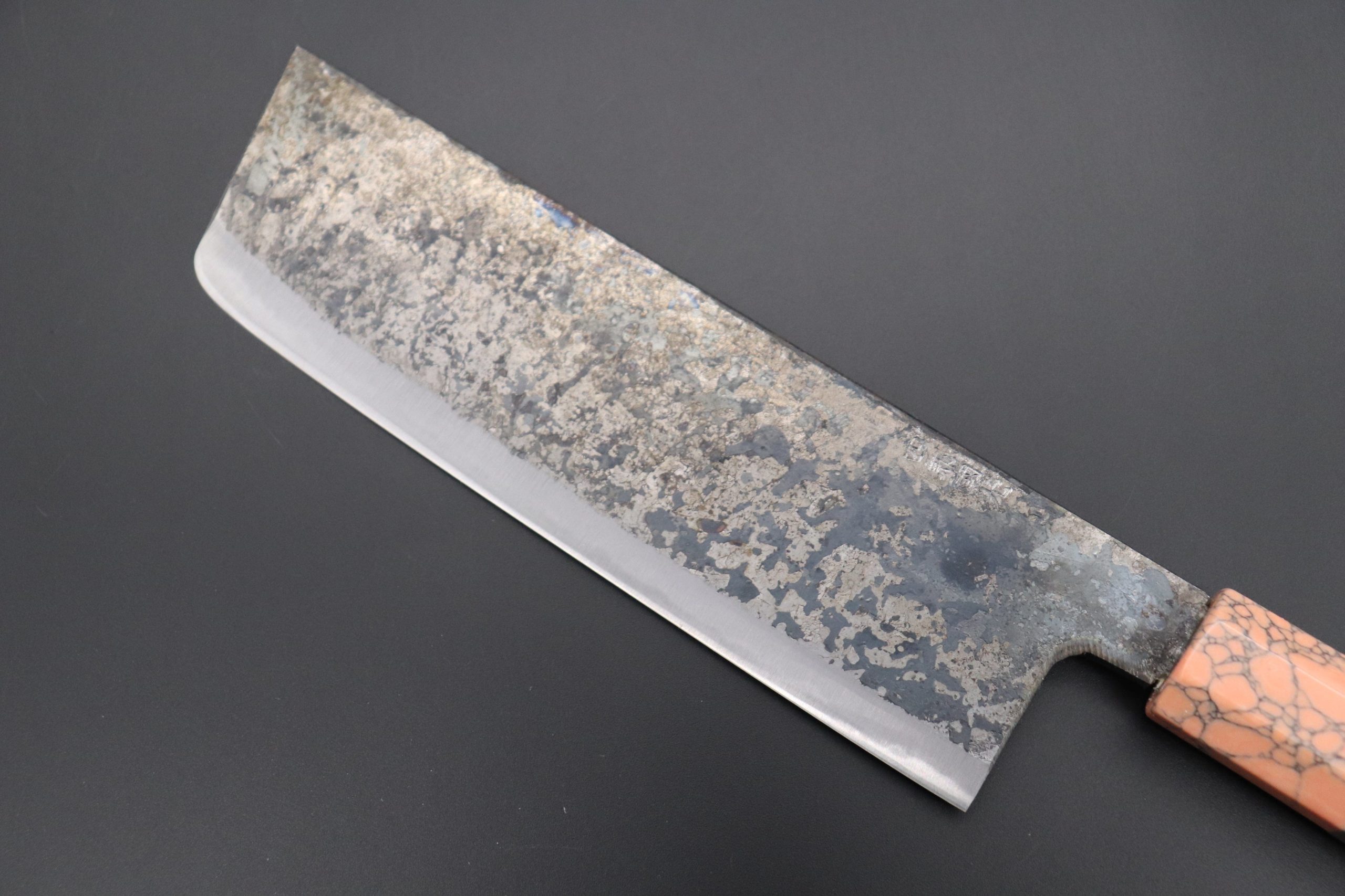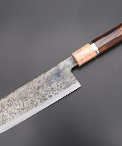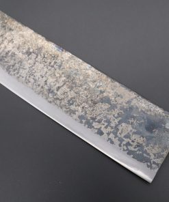 Each one of the unique Kurouchi (“Black forged”) finished blades has an uneven surface and a non-uniform finish. So, if you are looking for a very neat knife, with precise details and great ‘fit & finish’, these Shirou-Kunimitsu handmade traditional forged knives are not well suited to your preferences. However, at the same time, we really appreciate the originality and artisanal spirit of these knives and we think the traditional Kurouchi finish is something really special — We can feel the WABI-SABI aesthetics striking at our hearts and we hope our customers will feel the same way.