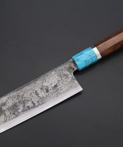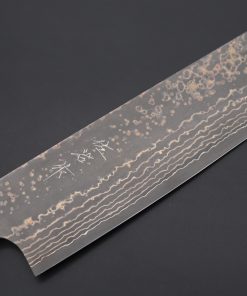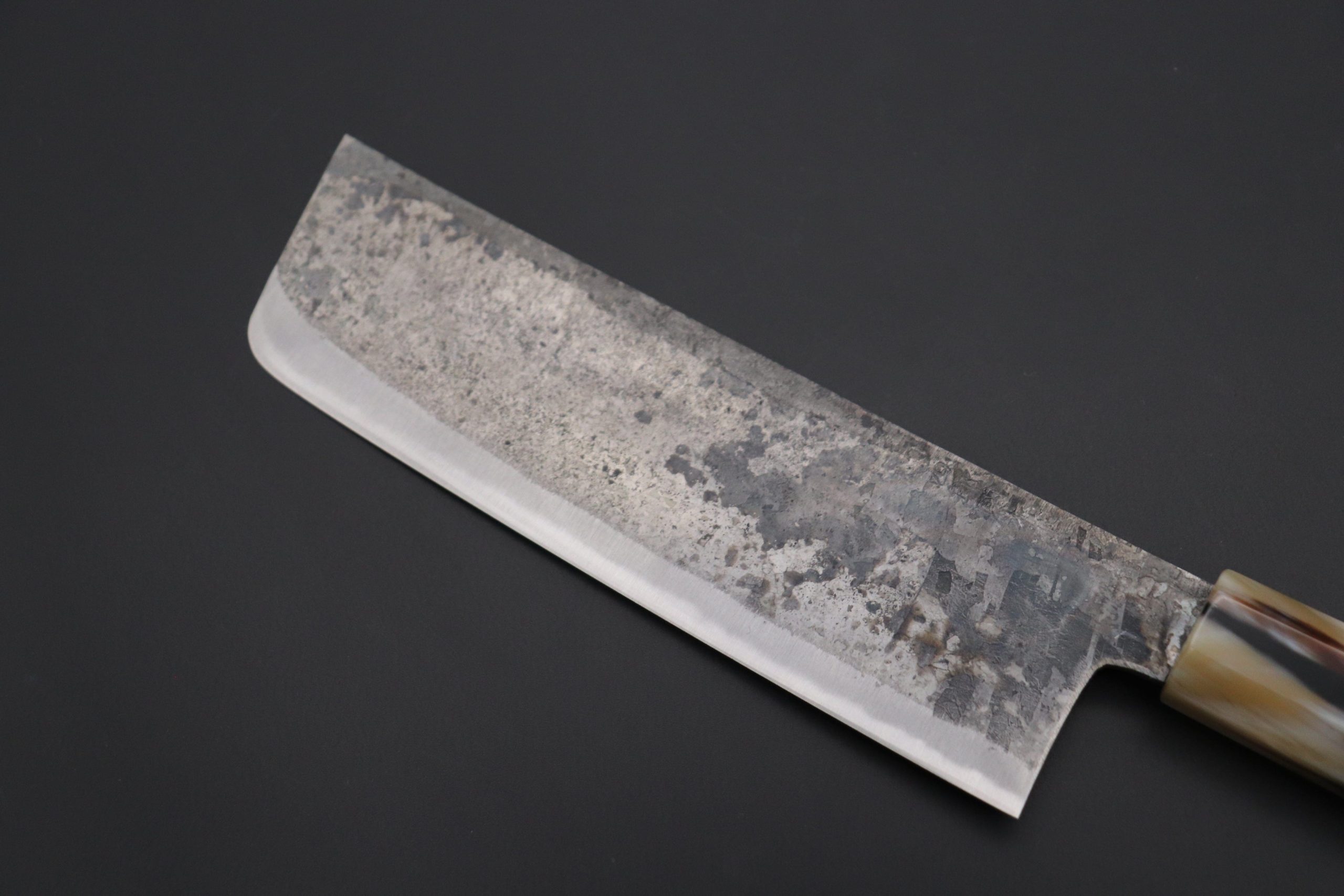 Each one of the unique Kurouchi (“Black forged”) finished blades has an uneven surface and a non-uniform finish. So, if you are looking for a very neat knife, with precise details and great ‘fit & finish’, these Shirou-Kunimitsu handmade traditional forged knives are not well suited to your preferences. However, at the same time, we really appreciate the originality and artisanal spirit of these knives and we think the traditional Kurouchi finish is something really special — We can feel the WABI-SABI aesthetics striking at our hearts and we hope our customers will feel the same way.