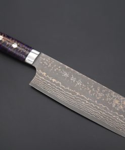 The Nakiri is a double bevel edged knife that is rectangular in profile and has a tall, thin blade. It is popular throughout Japan and is often used by home cooks for quickly and efficiently chopping, slicing or mincing vegetables and fruit. It is becoming increasingly popular with vegetarians.