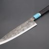 This Special Edition Wa Gyuto Knife with Contemporary, Stylish Wa Handle. The Innovative Octagonal Ebonywood handle with Black-Golden-Color Turquoise Gem-Composite Stone Ferrule & Butt with Nickel Silver Spacers.