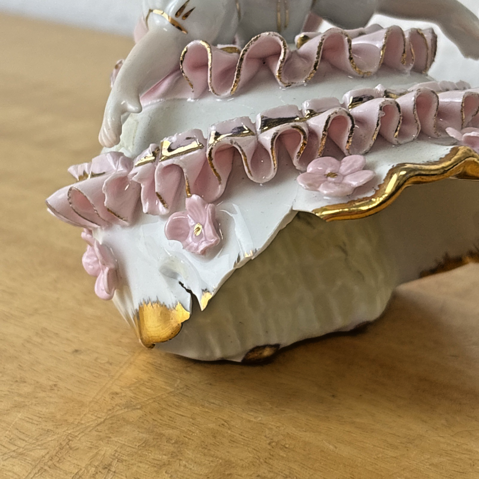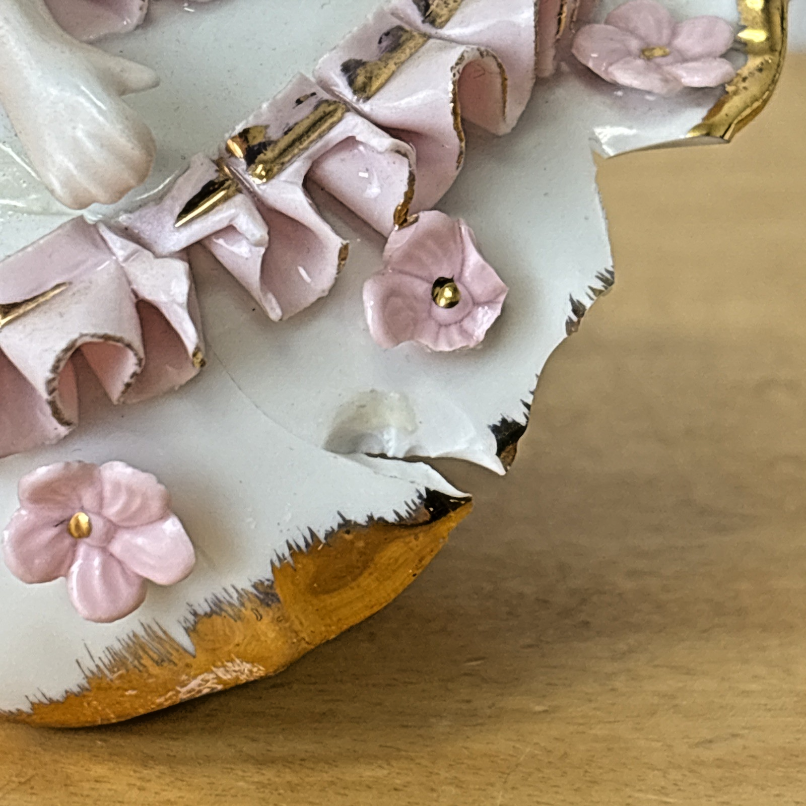 Condition Description: See images, ask questions. Large chip on skirt, glue residue on back side as seen in images.