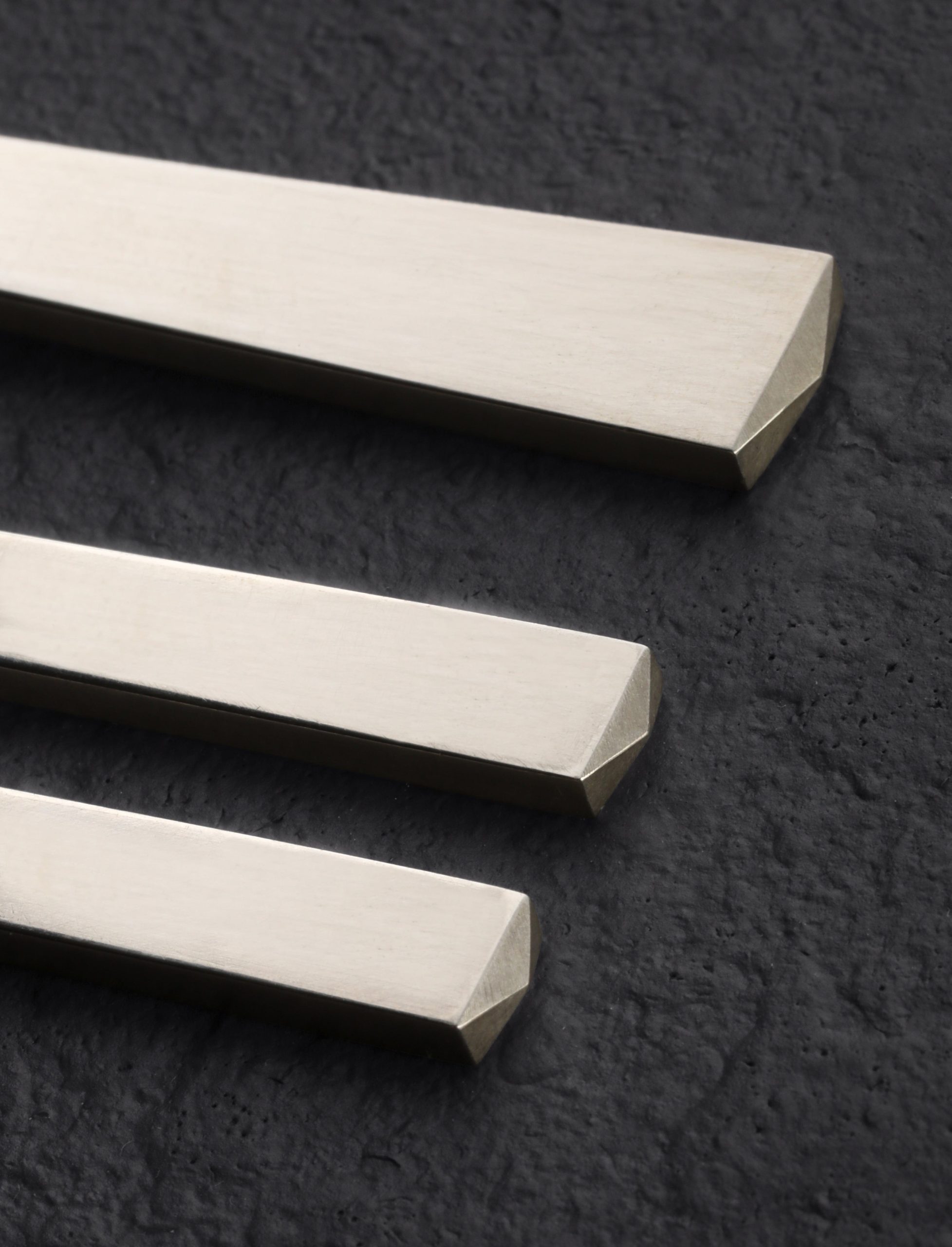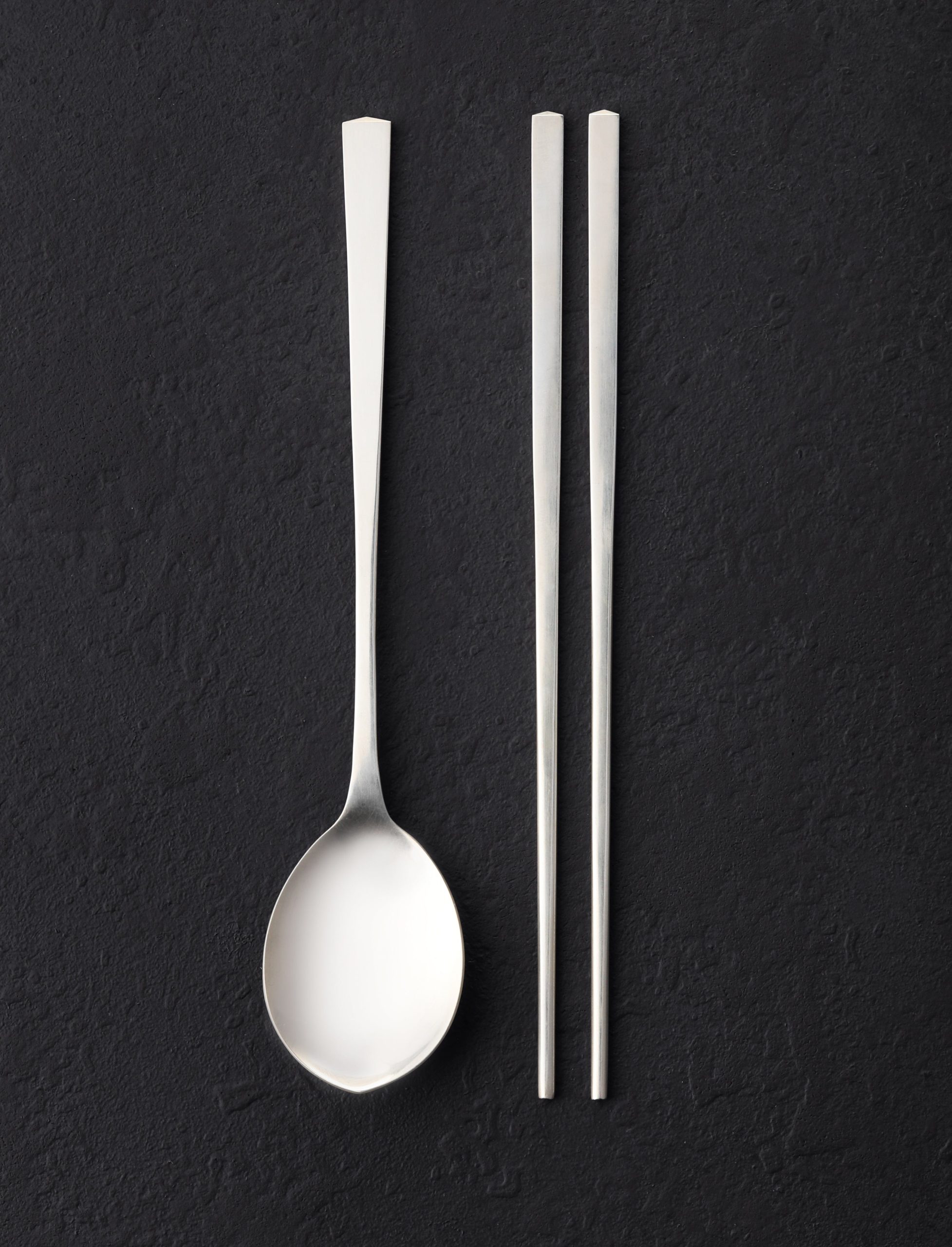 This remarkable eating experience is brought to us by artist and designer Kenny Son of Studiokyss. Kenny’s contemporary approach to the traditional Korean Sujeo set of chopsticks and a spoon is a statement of craftsmanship and quality, inspired by his wide-ranging portfolio of extraordinary culinary objects. Made by hand from .925 sterling silver in Sydney, Australia, this set offers a unique opportunity to own and use a functional and robust tabletop treasure in the form of an exquisite eating utensil set. Each line and facet in Kenny’s deliberate and thoughtful work warrants contemplation and appreciation.