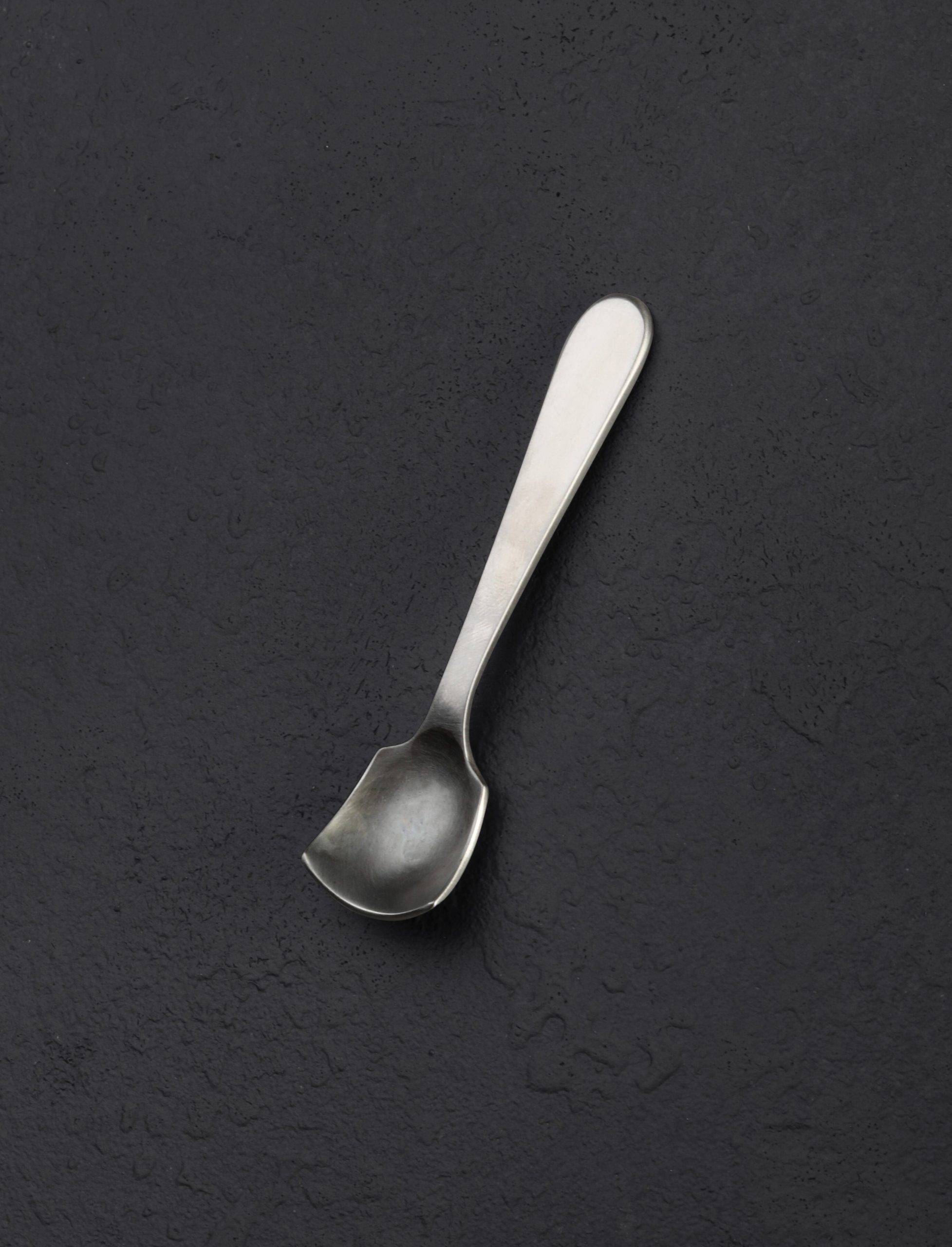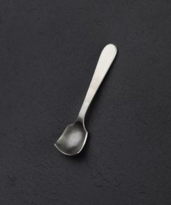 Spice up your daily food rituals with this salt spoon handcrafted by Erica Moody in Maine. The burnished stainless steel creates a rustic, softly colored patina that adds to the style and ambiance of each meal’s presentation. A perfect tool to decorate the table for gatherings, as well as to add precision to the cooking experience.