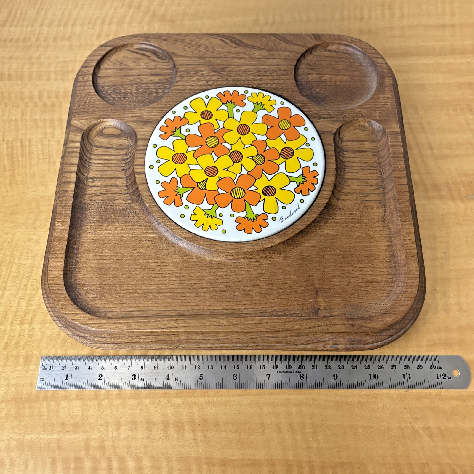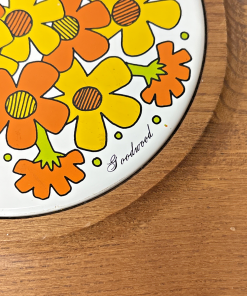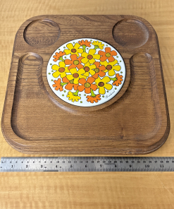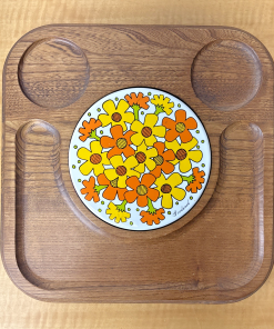 Square Goodwood Ceramic Tile and Wood Cheese Tray – Japan – Vintage Retro Floral