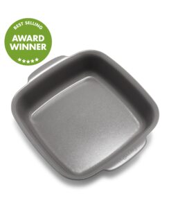 Deep and spacious, this lasagna pan is ideal for crafting casseroles, desserts, roasting, and big one-pan meals. The cast solid handles are clean, simple, and functional while the heavy-duty body heats quickly and evenly, eliminating hot spots and offering total control over the meal.
