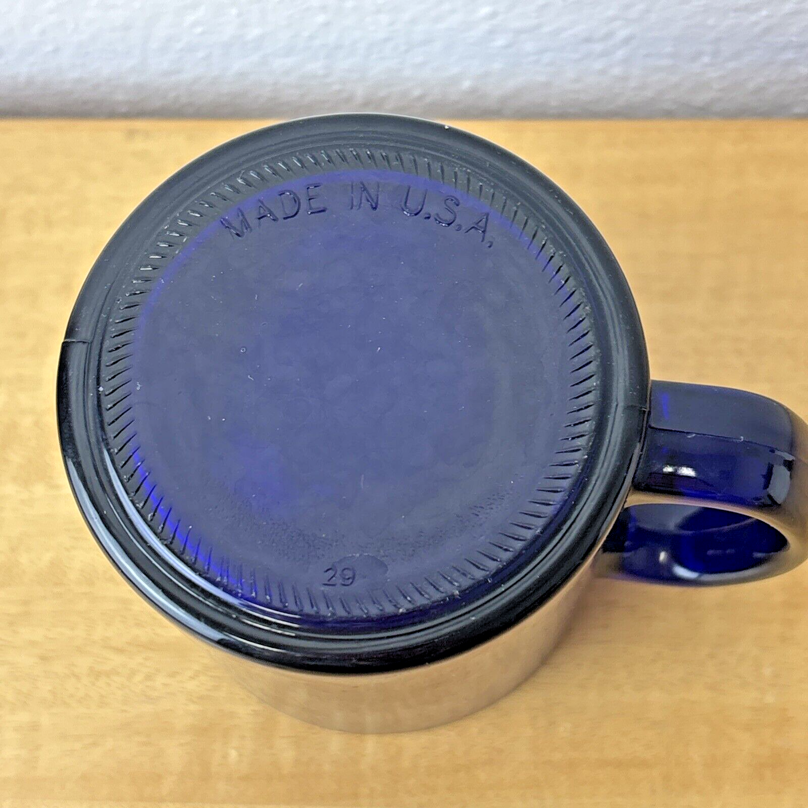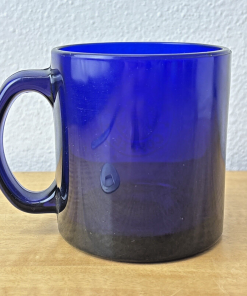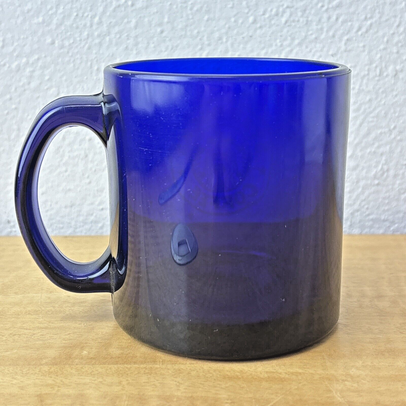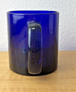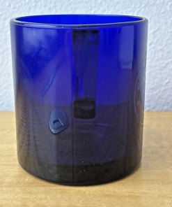 Starbucks Coffee Cobalt Blue Mug 3 3/4″ Tall Glass 12 oz Etched Mermaid Logo EC