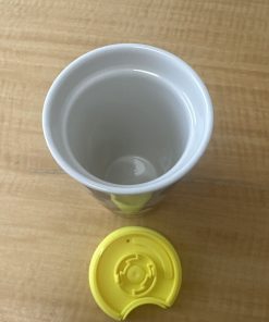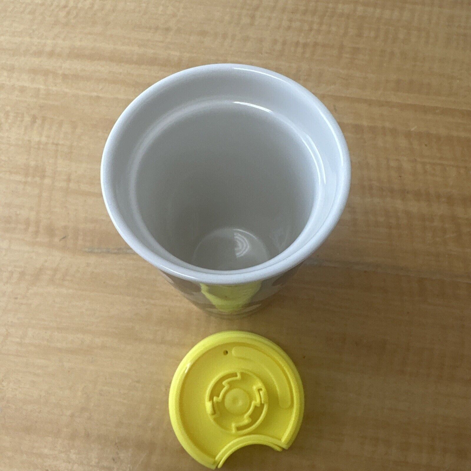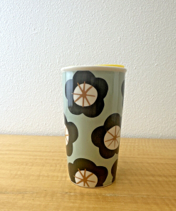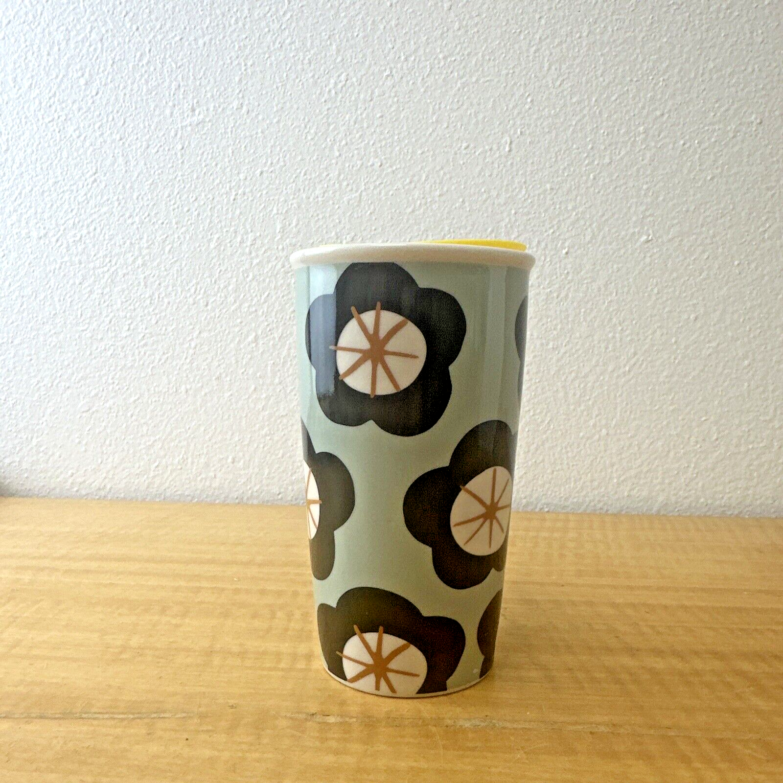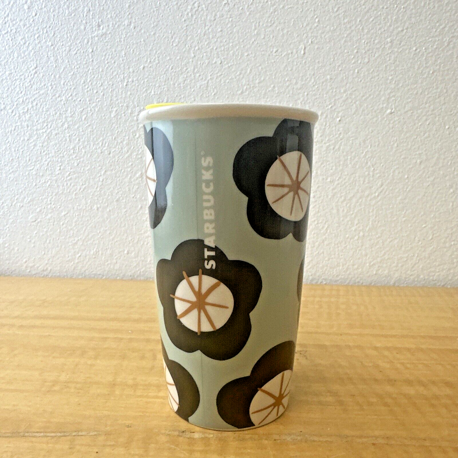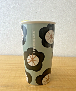 Starbucks Green Spring Black Floral Ceramic Travel Cup Tumbler 12 oz Yellow Lid
