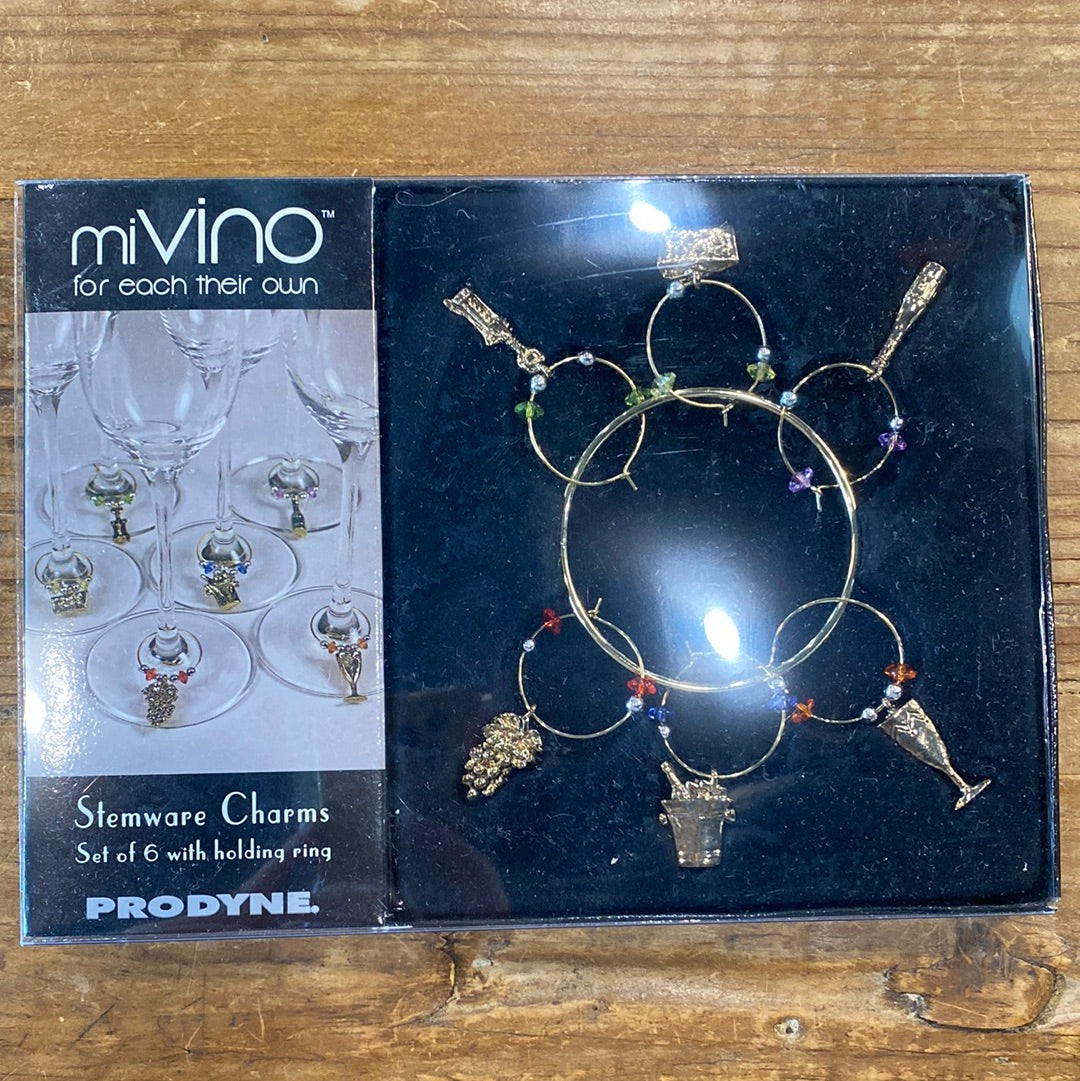Set of six charms with holding ring | Clip these decorative charms to your stemware so your guest will always know which glass is theirs | Crafted from solid metal