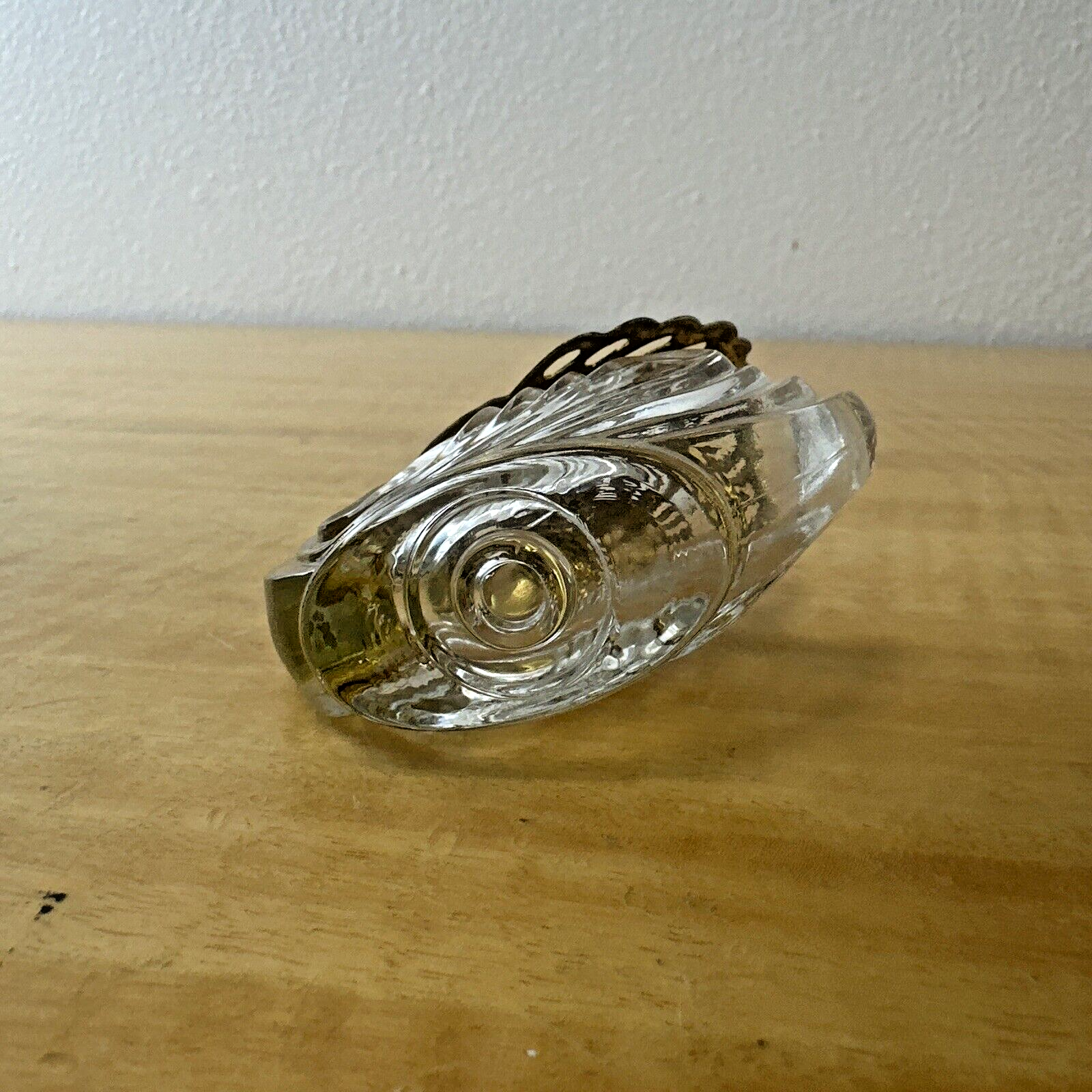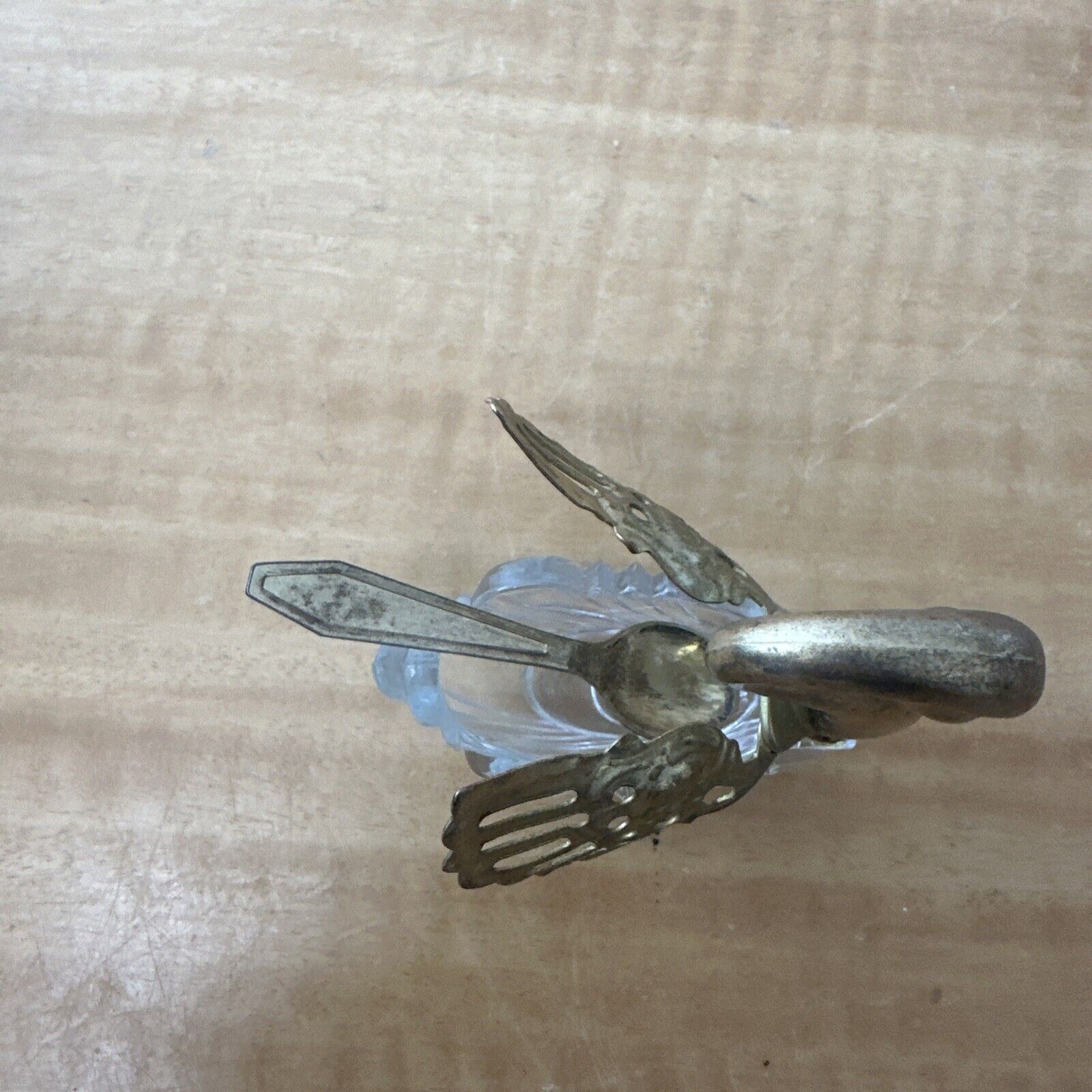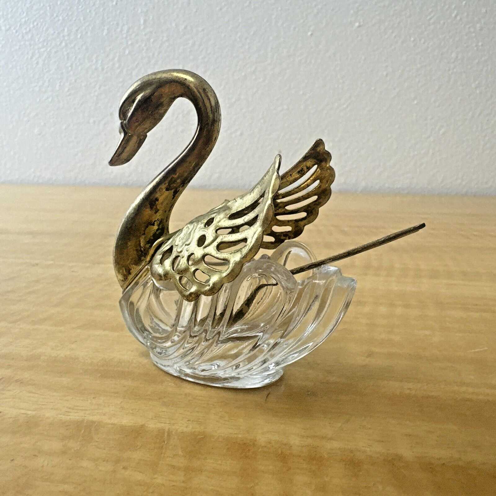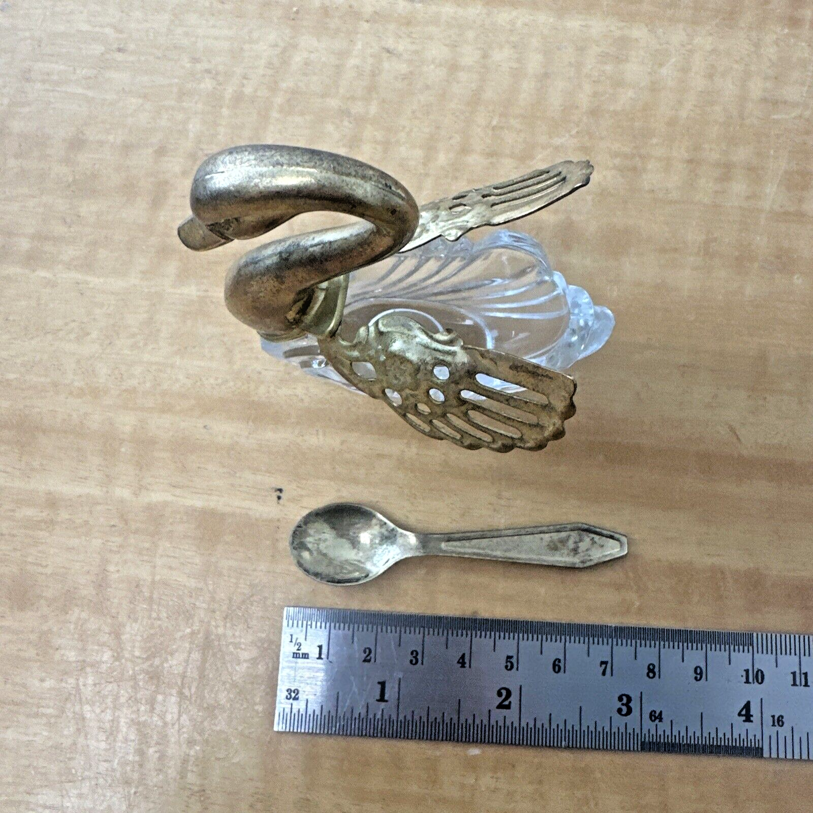 Swan Open Salt Cellar Satin Glass Movable Wings Elegant Gold Tone + Spoon