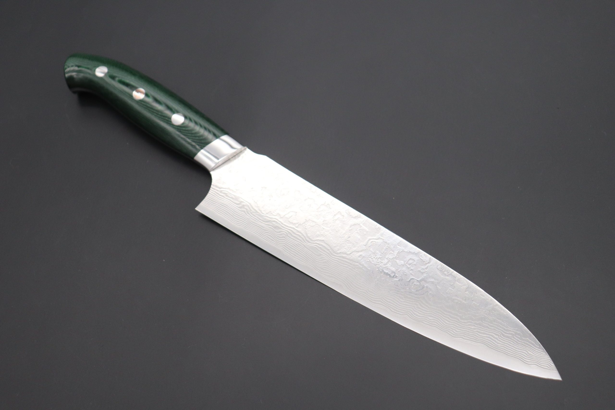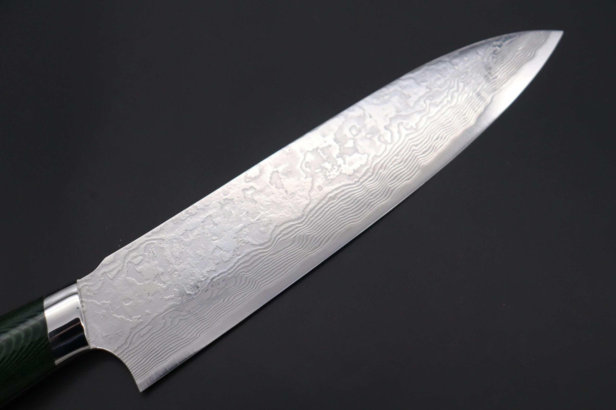 Takeshi Saji R-2 Custom Diamond Damascus Wild Series New Design Gyuto (210mm and 240mm, Green/Black Linen Micarta Handle)