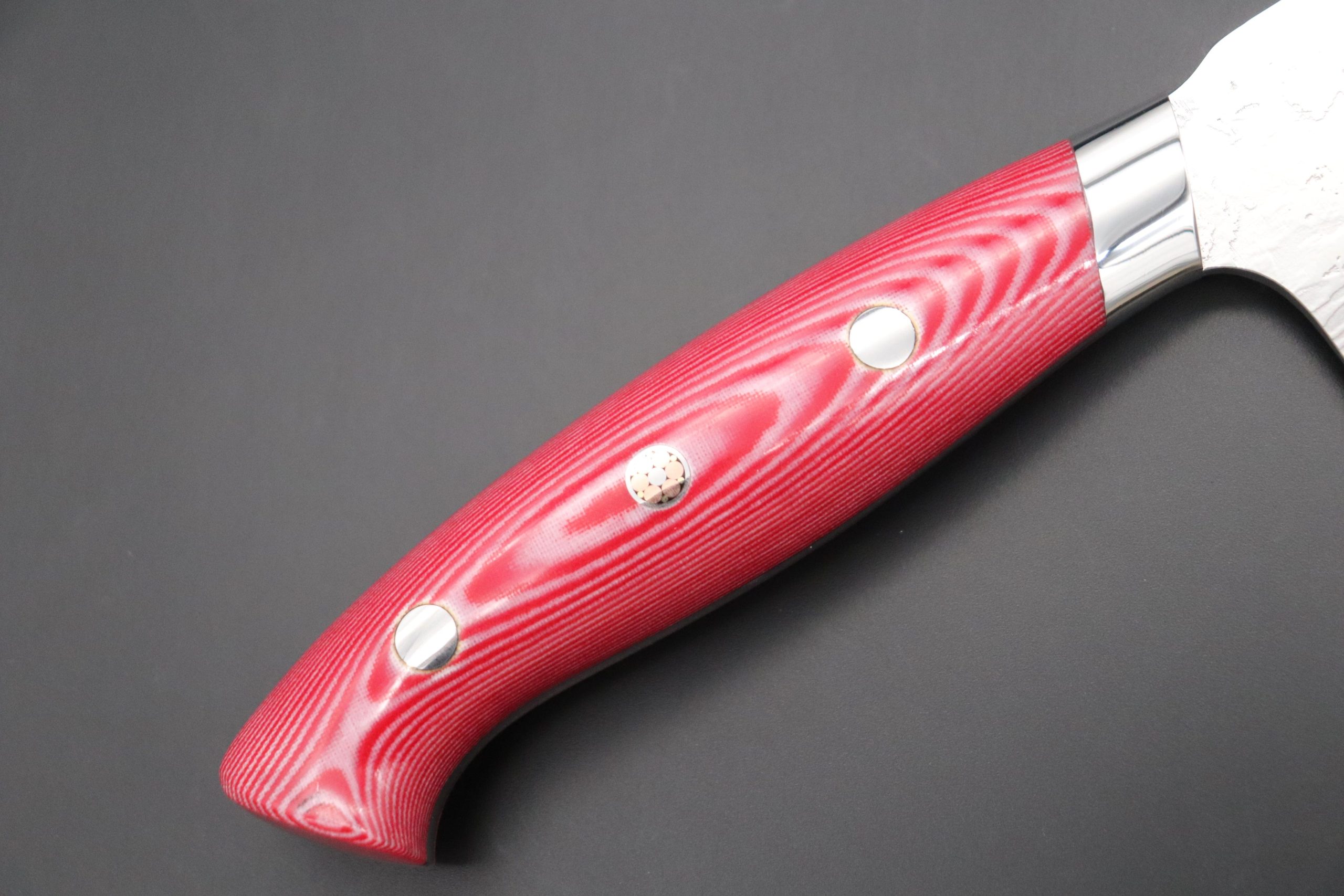 Handle Material: Red/White Linen Micarta Handle with Stainless Steel Bolster