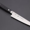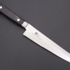 A mainstay of professional Western kitchens, the Petty knife is a small general-purpose knife used for peeling, shaping, and slicing fruits and vegetables, chopping herbs, and making garnishes. The compact size and relatively narrow blade of the Petty knife mean that it is very nimble and controllable, thus it is ideal for making precise cuts.