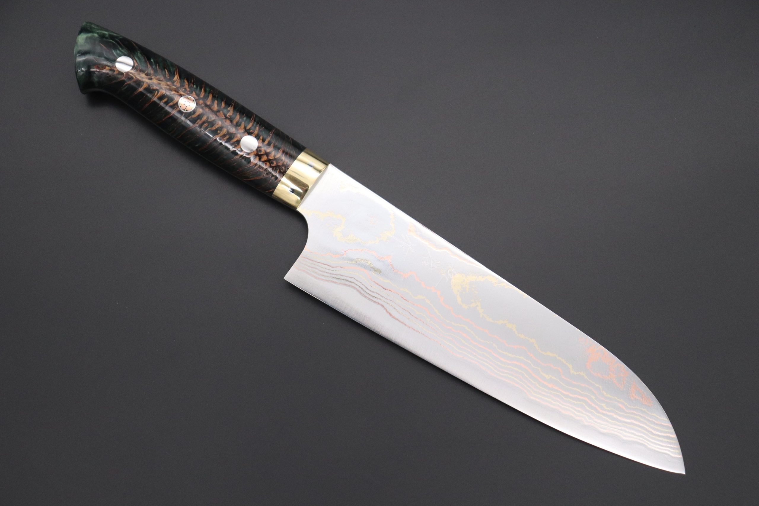 Knife Model: Takeshi Saji SUMMIT ― Limited Edition Custom Series Blue Steel No.2 Rainbow Damascus Series SMT-819 Santoku