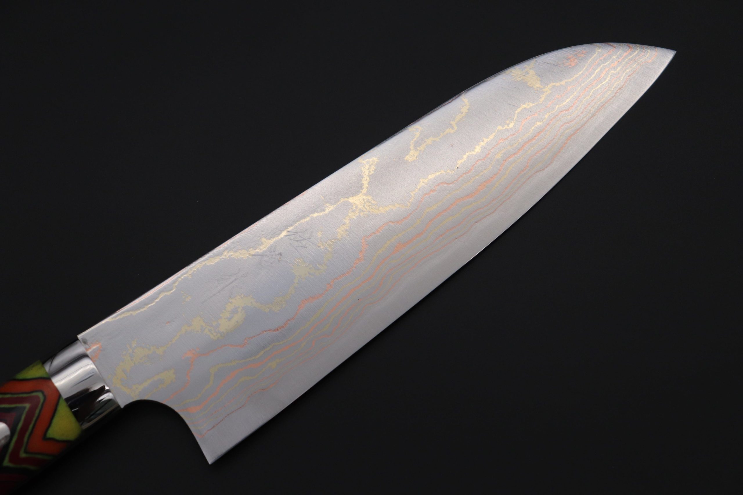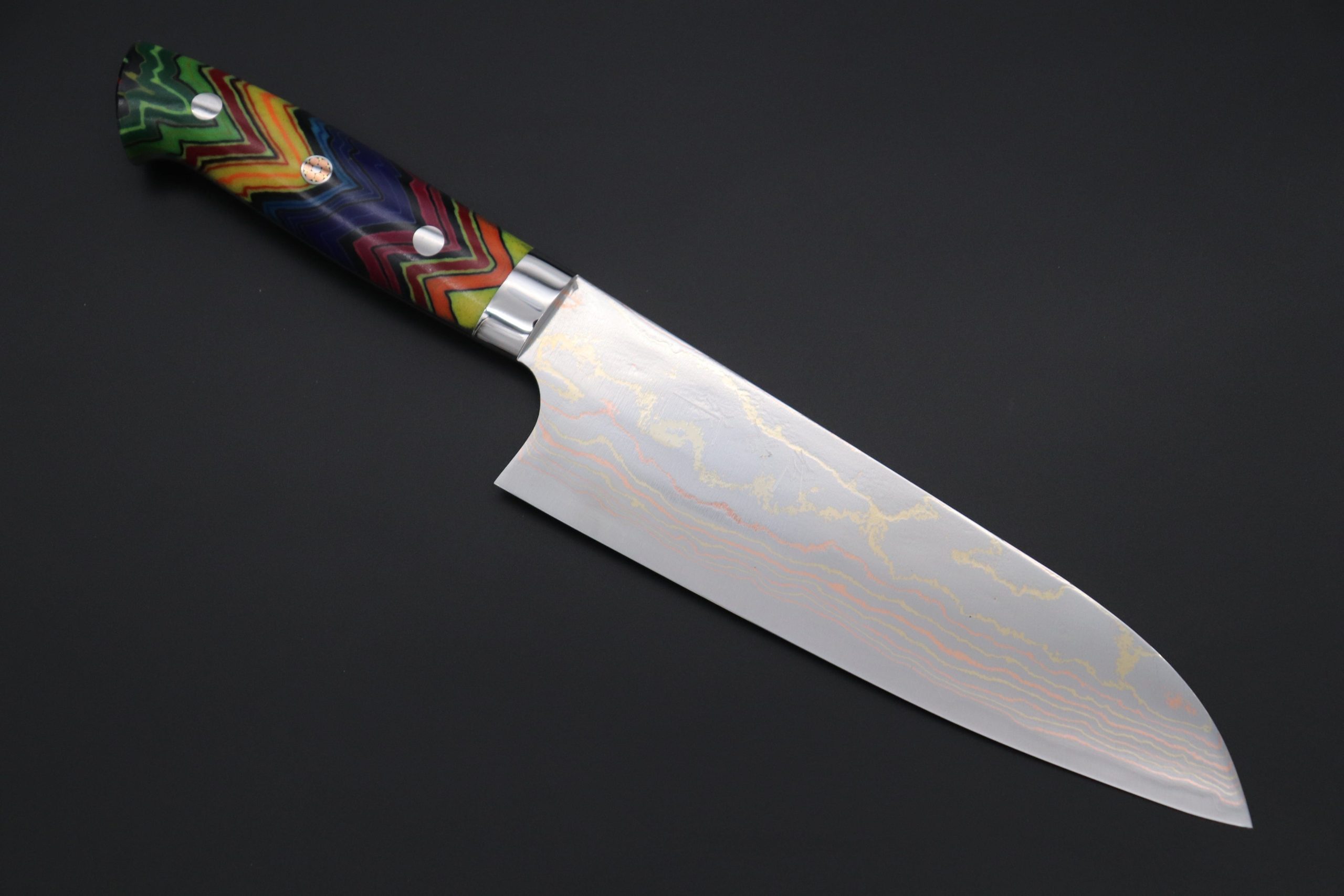 Knife Model: Takeshi Saji SUMMIT ― Limited Edition Custom Series Blue Steel No.2 Rainbow Damascus Series SMT-824 Santoku