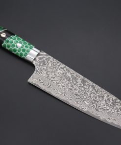 The tall blade and rounded nose / tip of the Santoku make it a versatile knife that is well suited to cutting meat, fish, or vegetables; Hence it’s name, which literally means “Three-purpose”. The Santoku is often recommended as a multi-purpose kitchen knife.