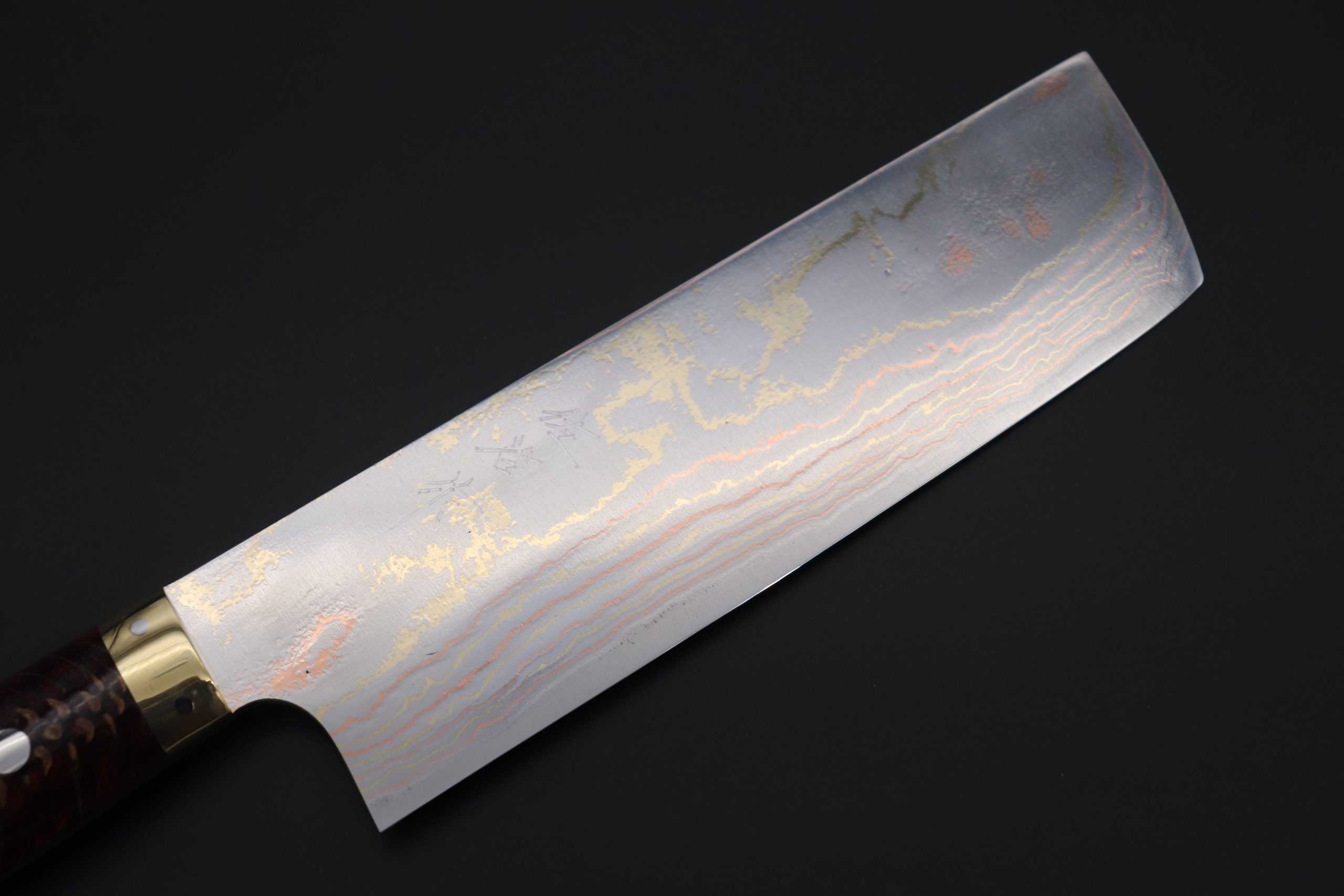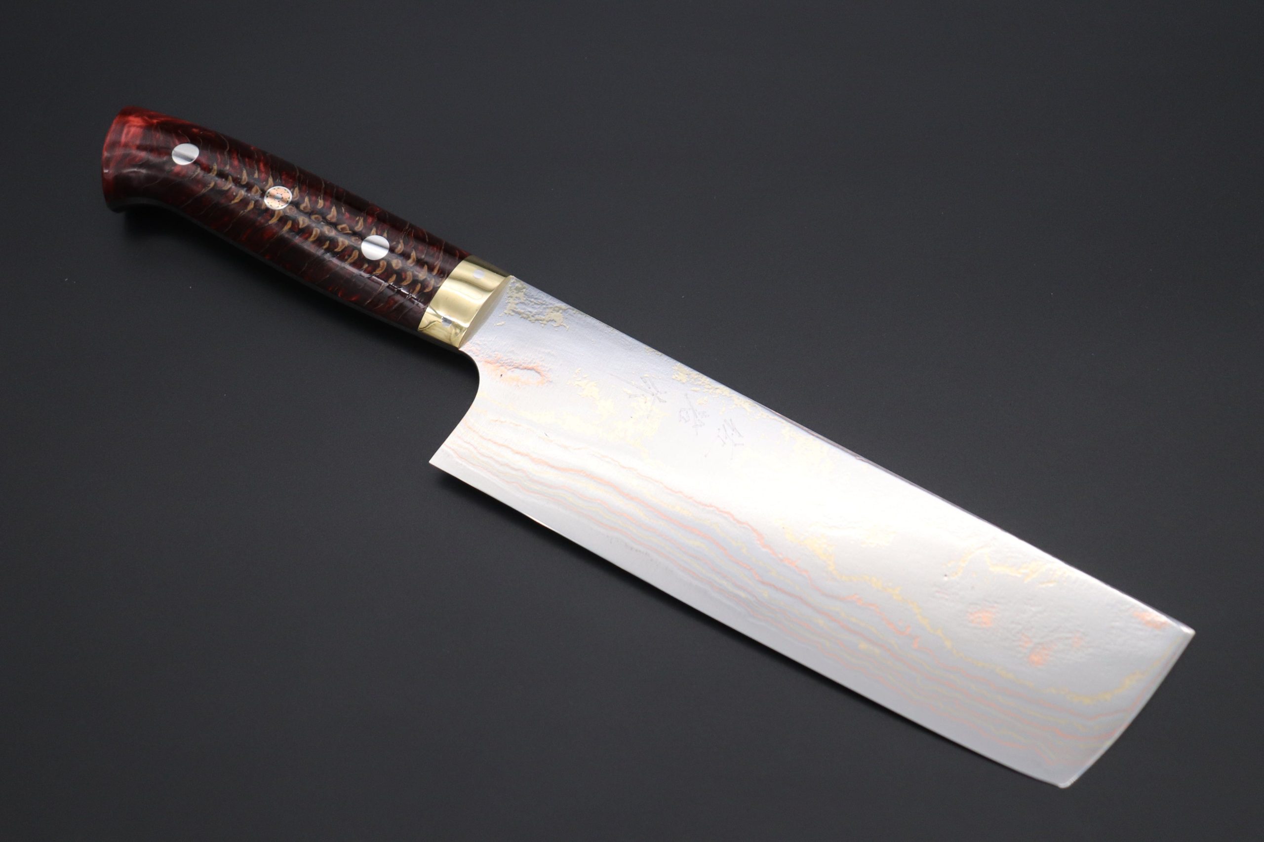 Knife Model: Takeshi Saji SUMMIT ― Limited Edition Custom Series Blue Steel No.2 Rainbow Damascus Series SMT-831 Nakiri