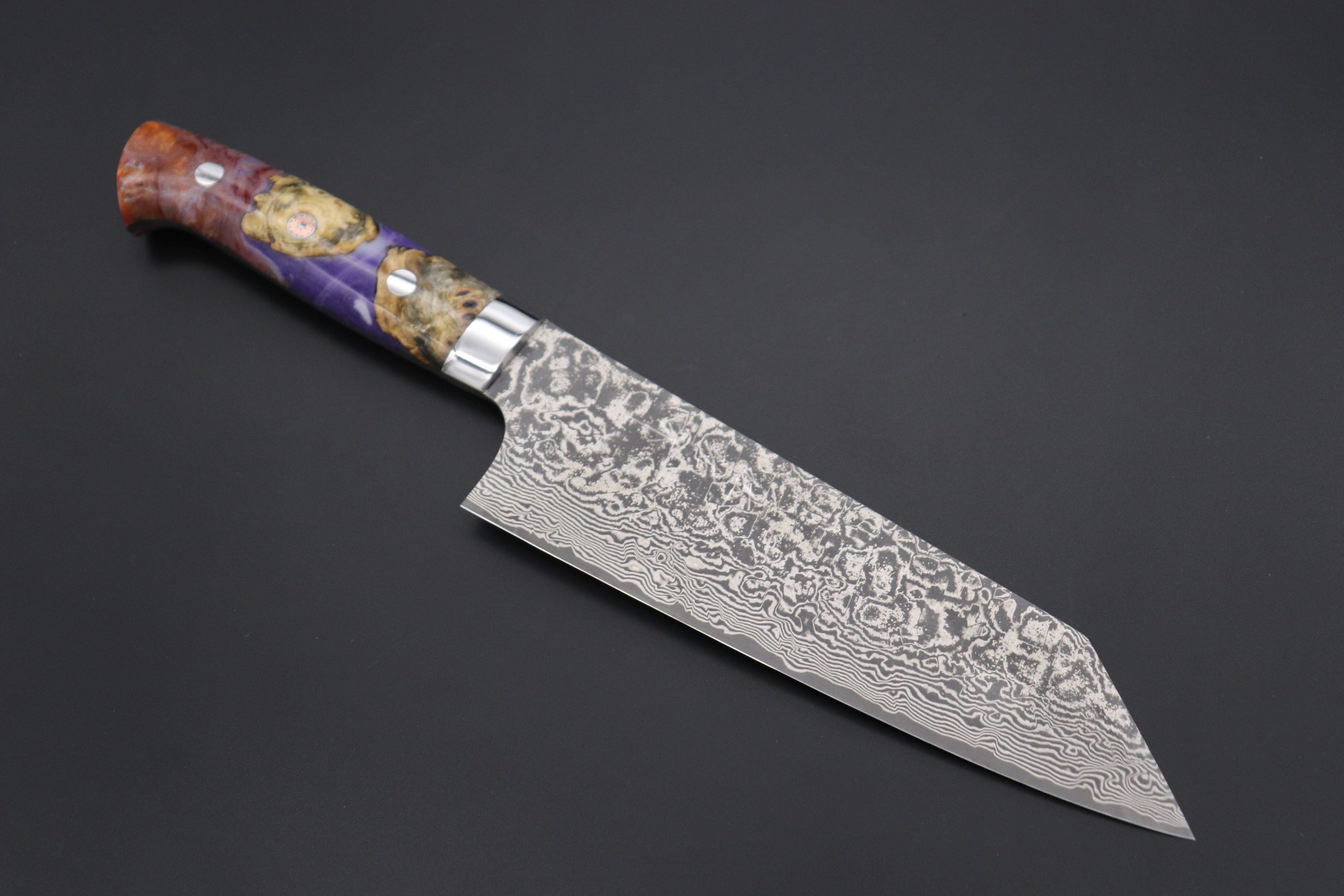 Handle Material: Mysterious Color & stabilized California Buckeye Hybrid wood Handle with Stainless Steel Bolster