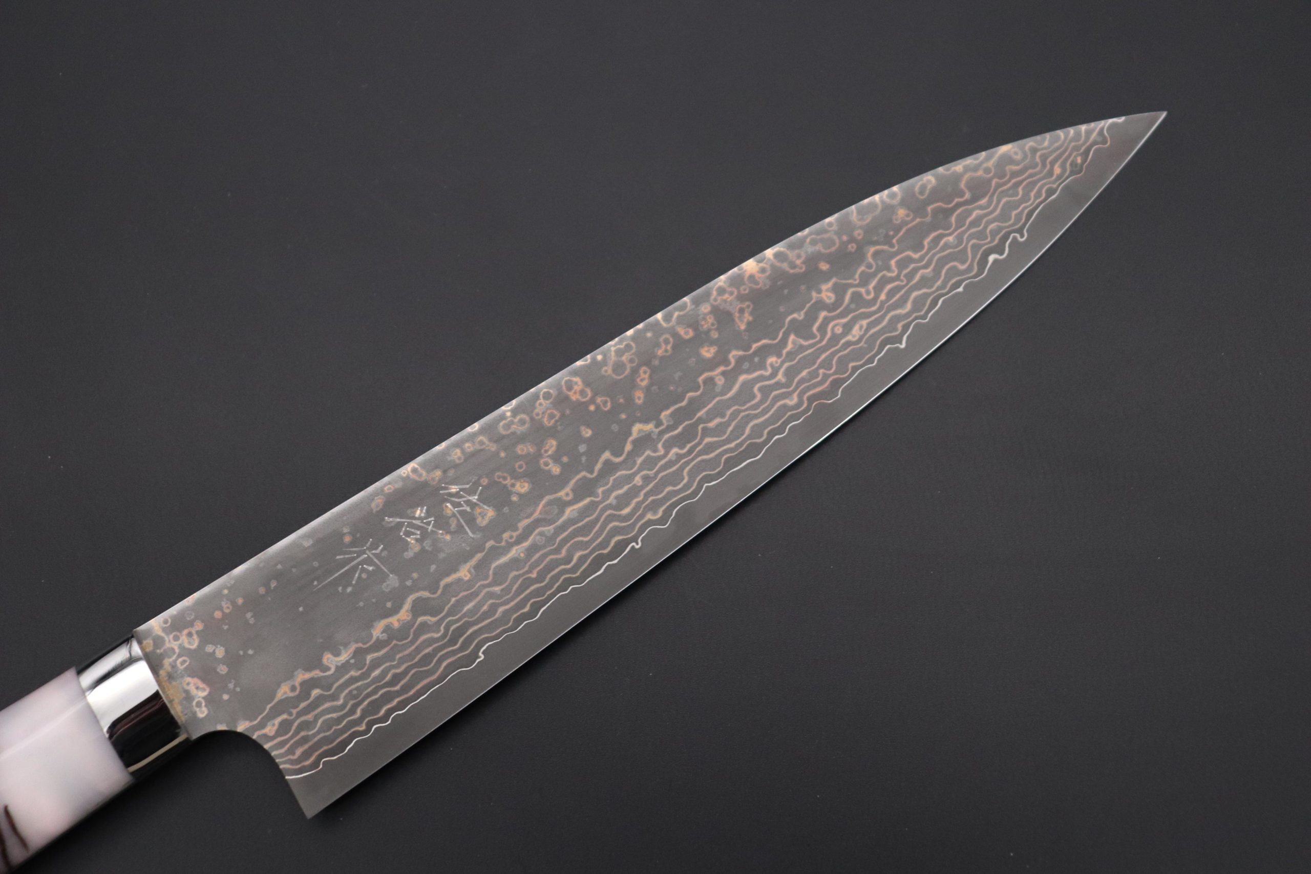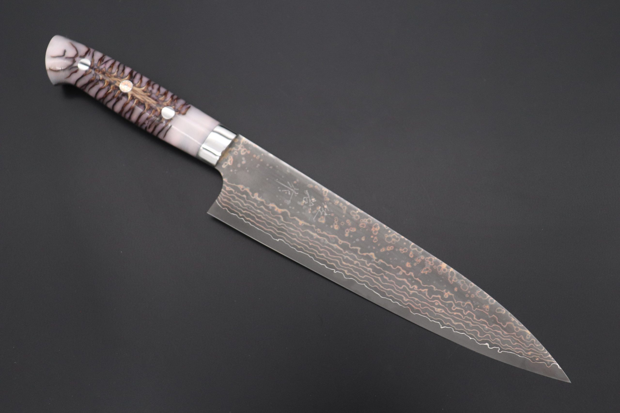 Knife Model: Takeshi Saji SUMMIT ― Limited Edition Custom Series SMT-918 VG-10W Multi-Colored Golden-Rainbow Damascus Gyuto 210mm