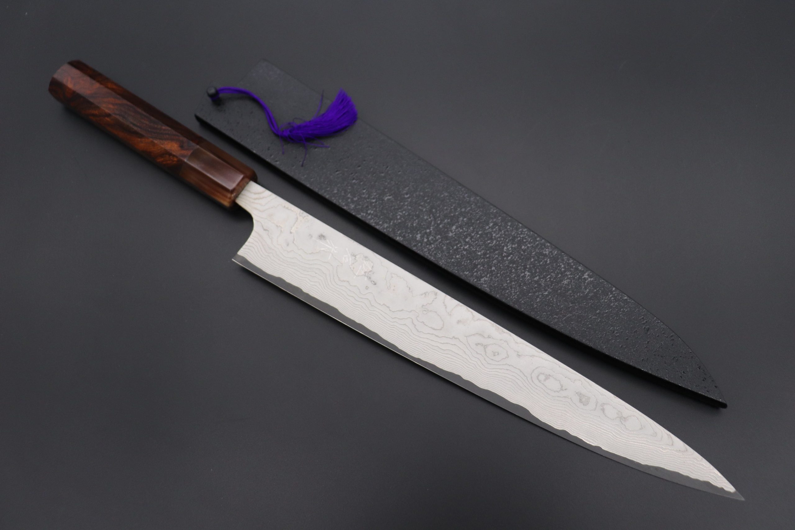 Knife Model: Takeshi Saji VG-10 Custom “Silver Color” Nickel Damascus Wa Sujihiki 270mm (10.6 Inch)