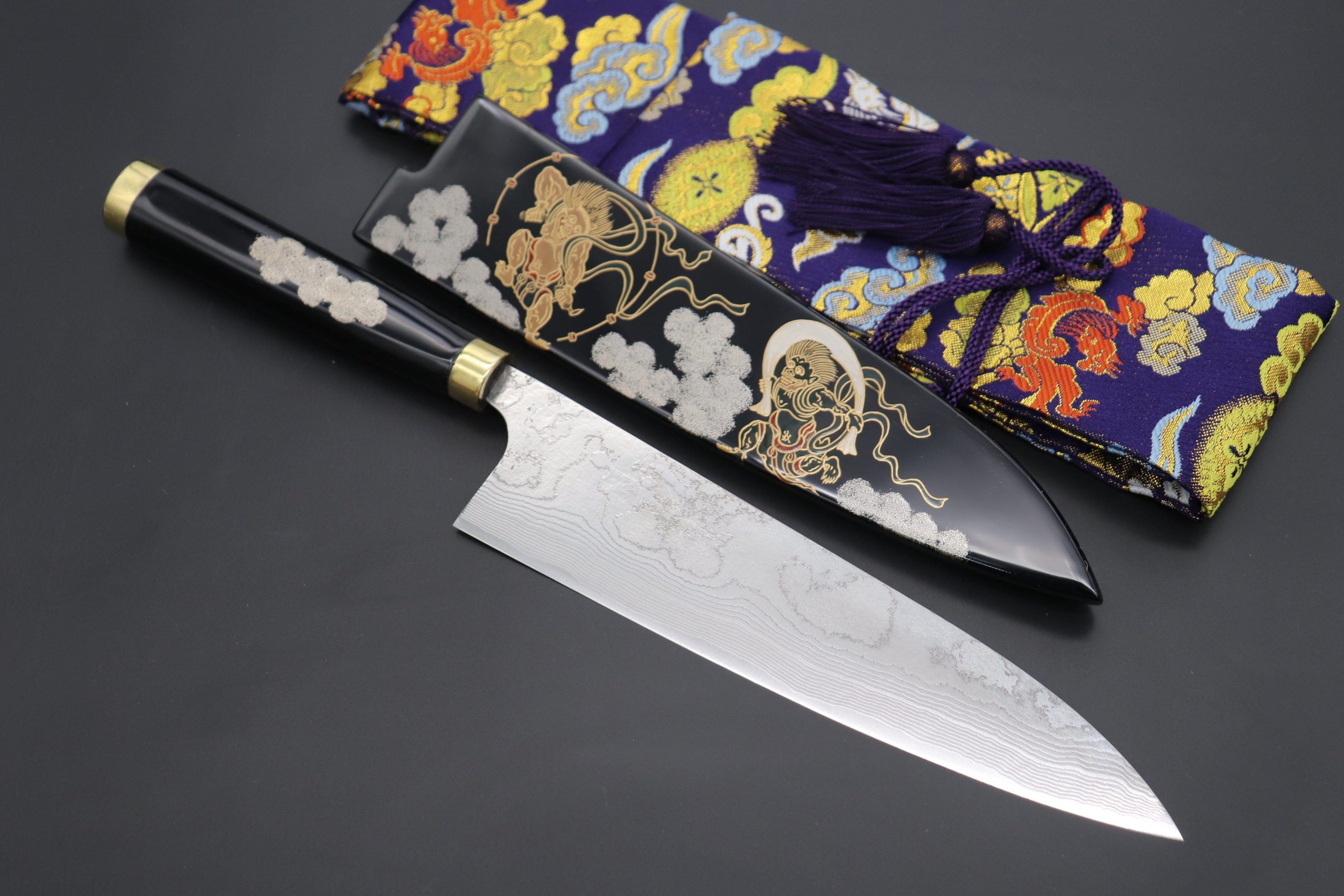 Knife Model: Takeshi Saji Urushi & Makie Series “風神(God of Wind) and 雷神(God of Thunder) Motif” Gyuto 210mm