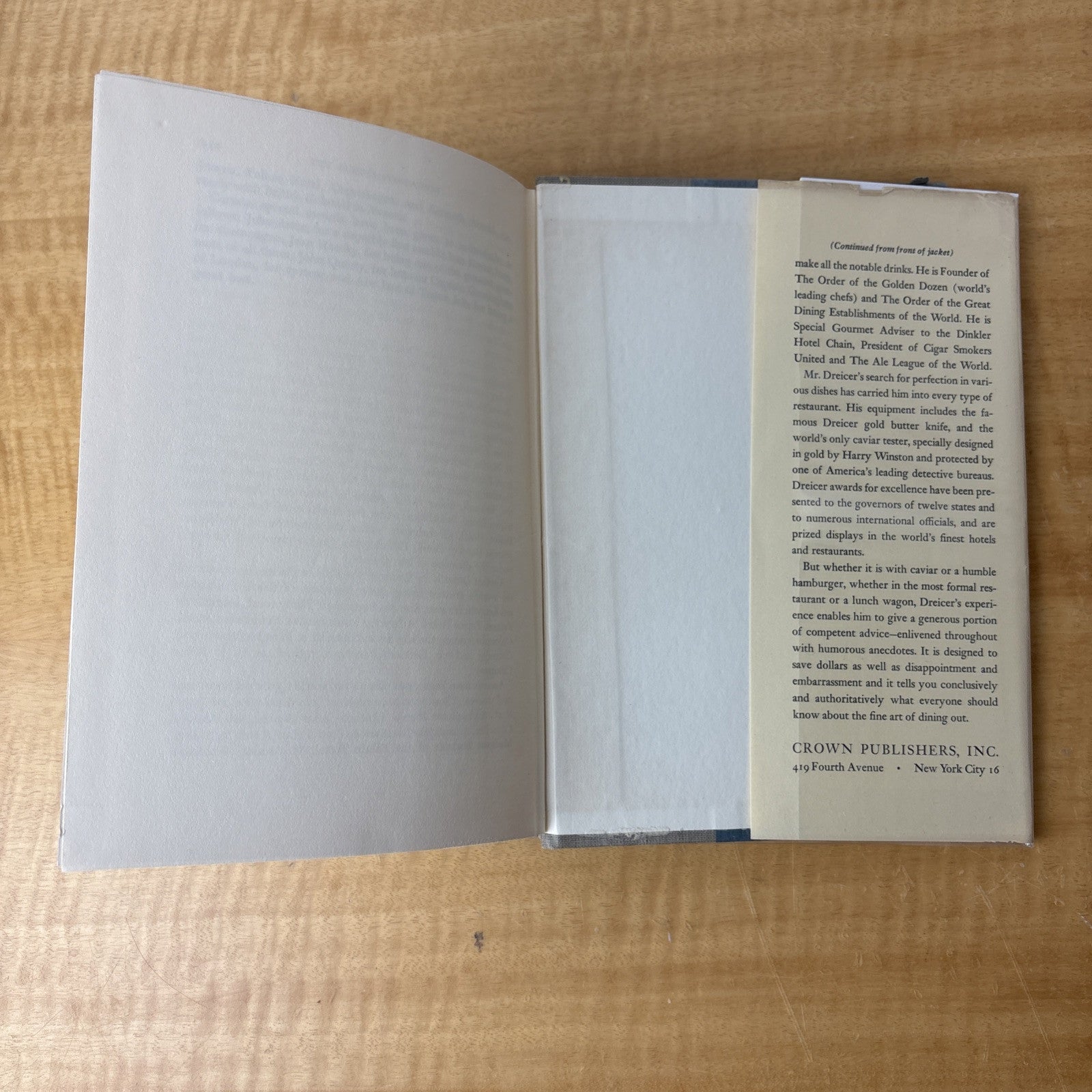 “The Diner’s Companion: A Guide To The Fine Art Of Dining Out” Maurice Dreicer