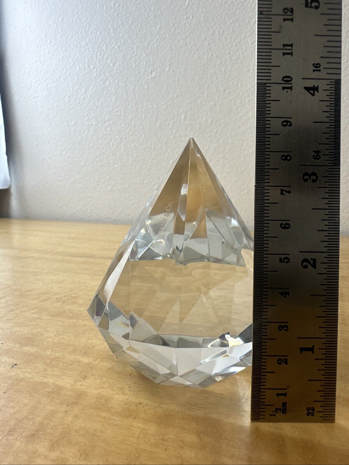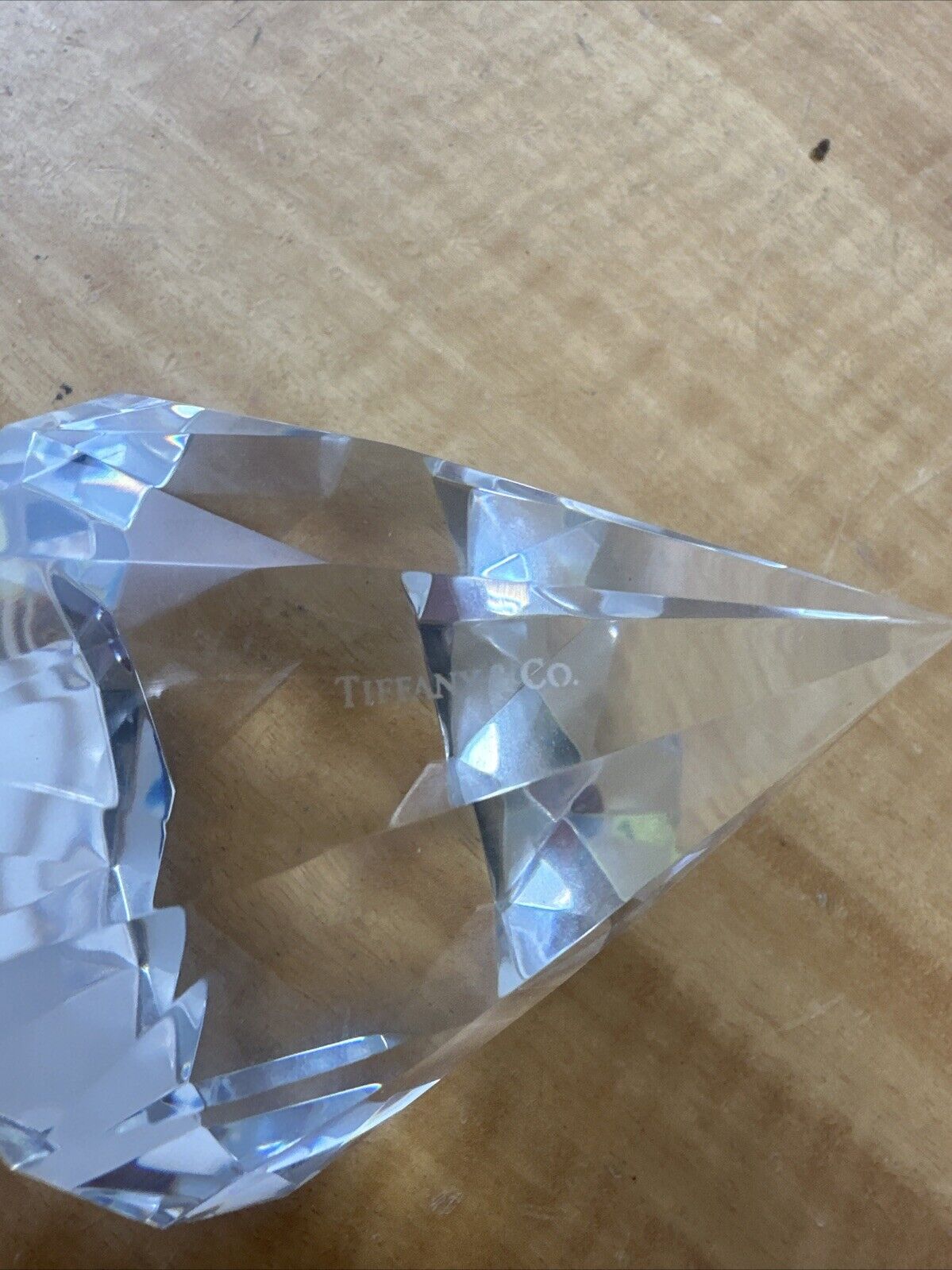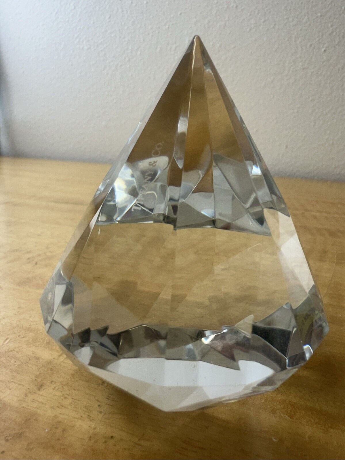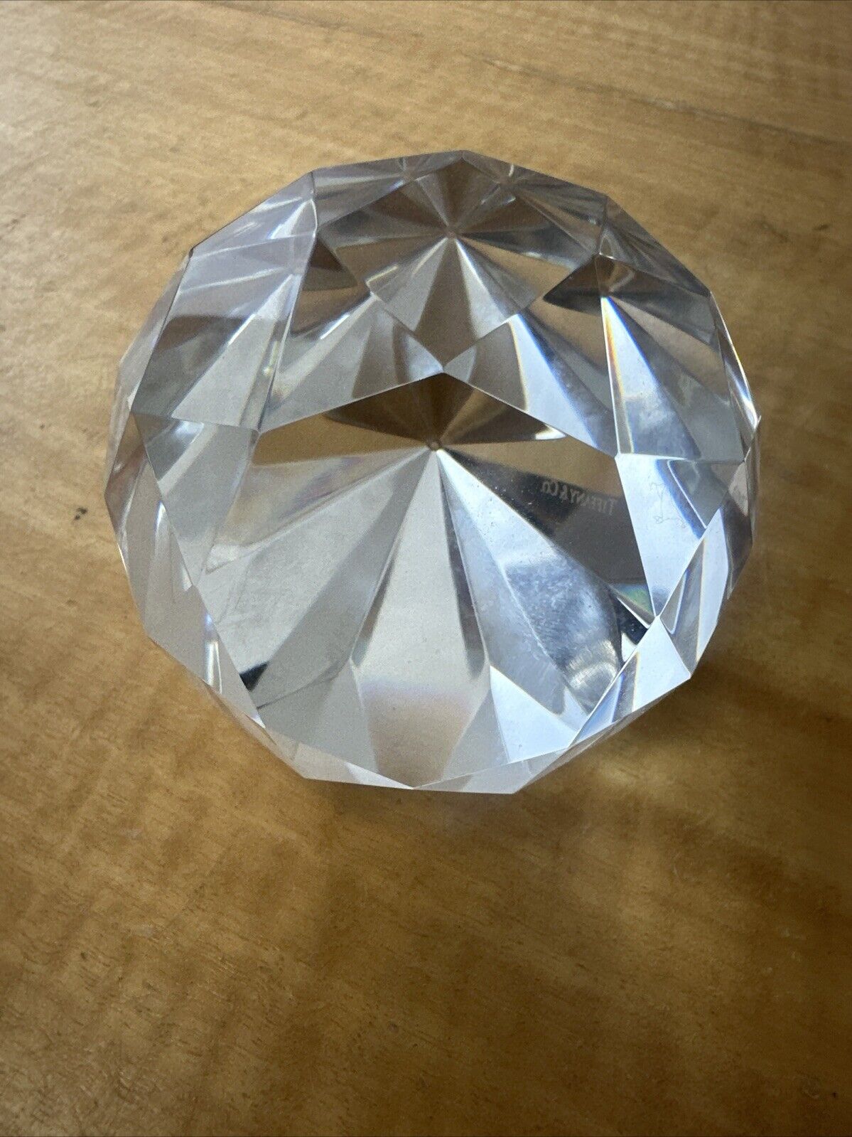 Tiffany & Co Diamond Cut Faceted Crystal Paperweight Signed