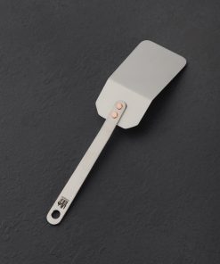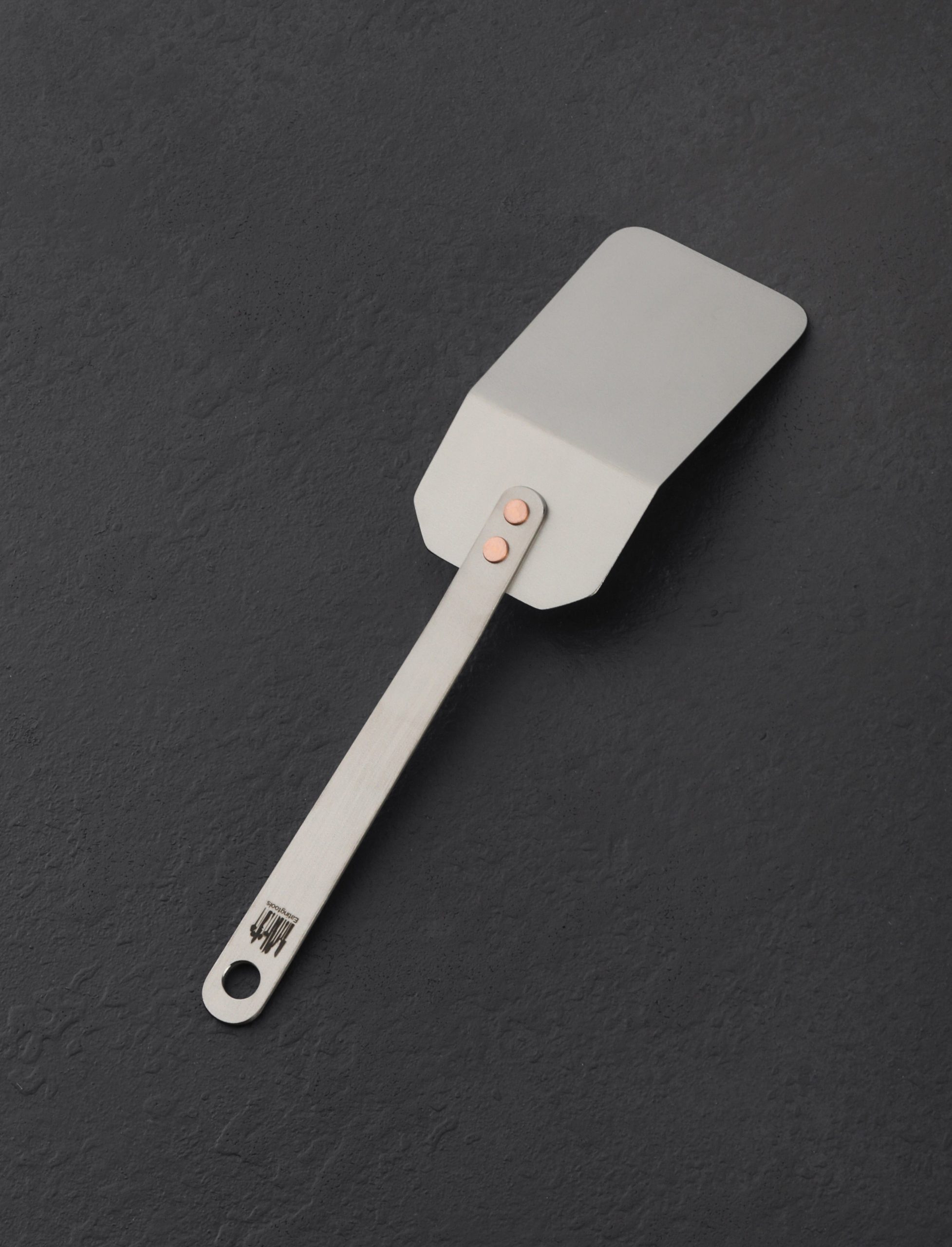 Weighing less than 1 ounce, this handmade, ultralight spatula is perfect for backpacking and campfire cooking, and endlessly handy in kitchens large and small. Incredibly strong yet flexible, titanium is softer than steel, making it the ideal material, and only metal, suited to use in cast iron and carbon steel pans. Low in heat conductivity, non-magnetic, and virtually impervious to rust and corrosion, titanium truly is the ultimate culinary material. It can even go in the dishwasher, and we do not say that about handcrafted tools often. The solid titanium blade and handle are secured with two copper rivets, and the thin profile provides a touch of flexibility to add to its versatility. Handmade in Oregon by artisan Ben Tendick, this spatula is a best-seller found only here.