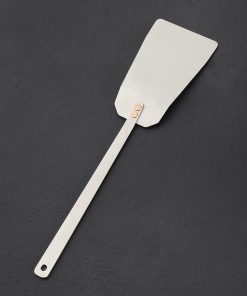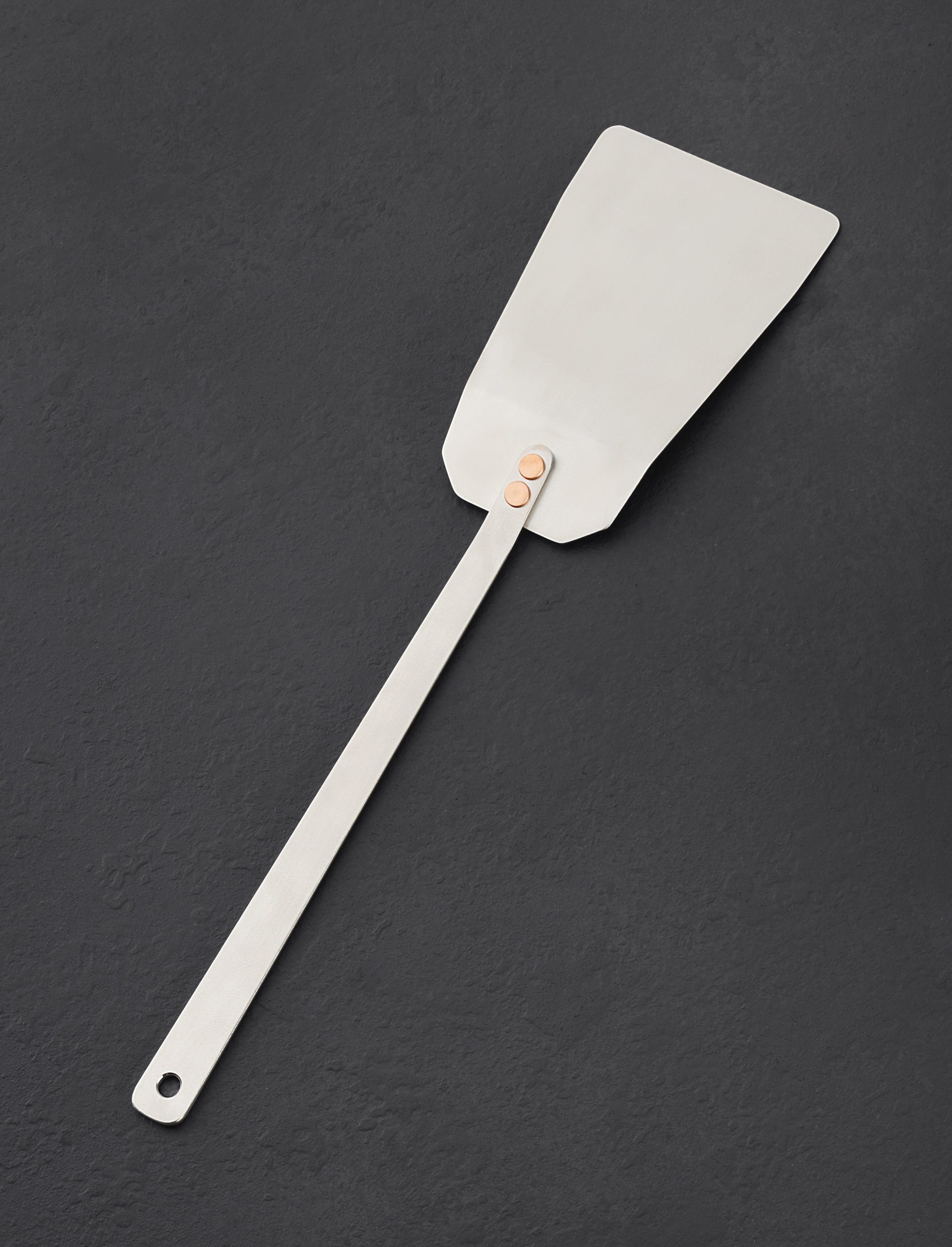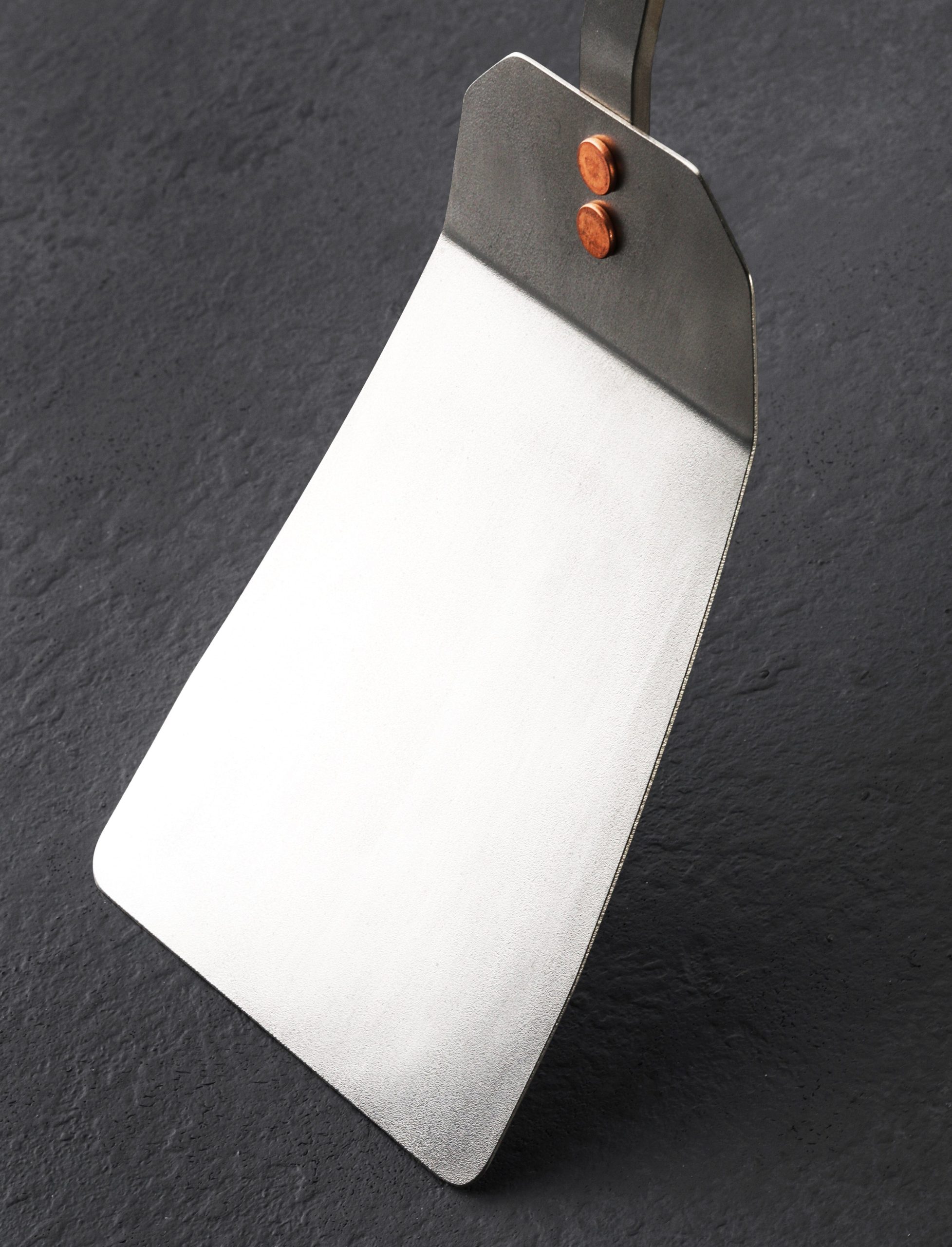 When Ben Tendick created the classic, must-have TiSpats Titanium Kitchen Spatula, we knew that an oversized version designed for the grill was the natural next step in the evolution of his titanium culinary wares collection. This specialty, purpose-built tool is handmade with a strong yet flexible head from solid, brushed titanium and fastened with solid copper rivets; the Grill Spatula is bound to serve you well during BBQ season, or any time you want to cook outside. Sturdy and lightweight, corrosion-resistant, non-magnetic, and a poor conductor of heat, titanium is the ultimate culinary material indoors and out.