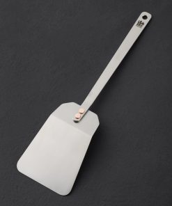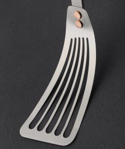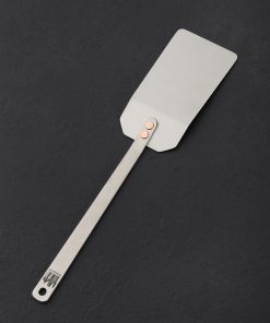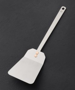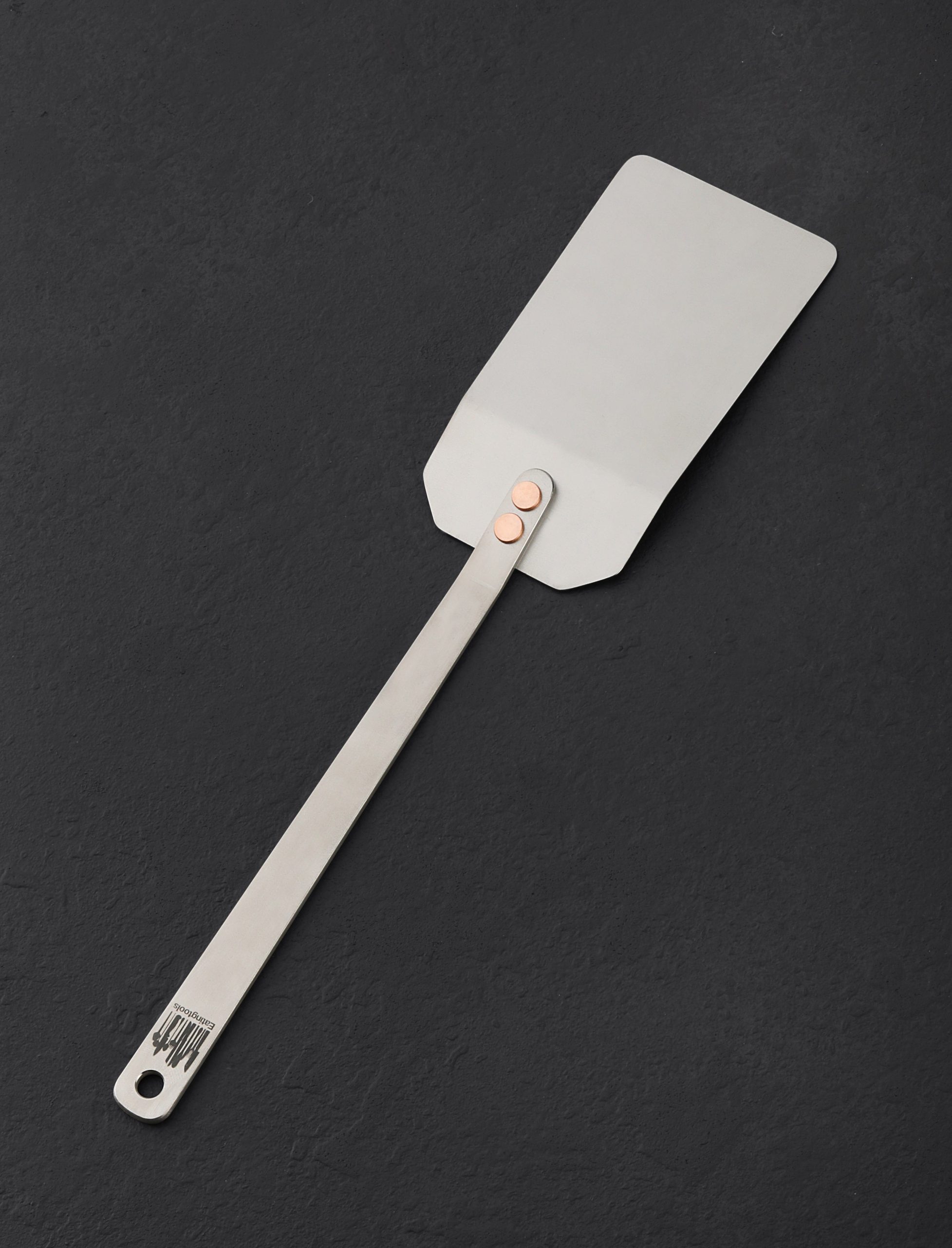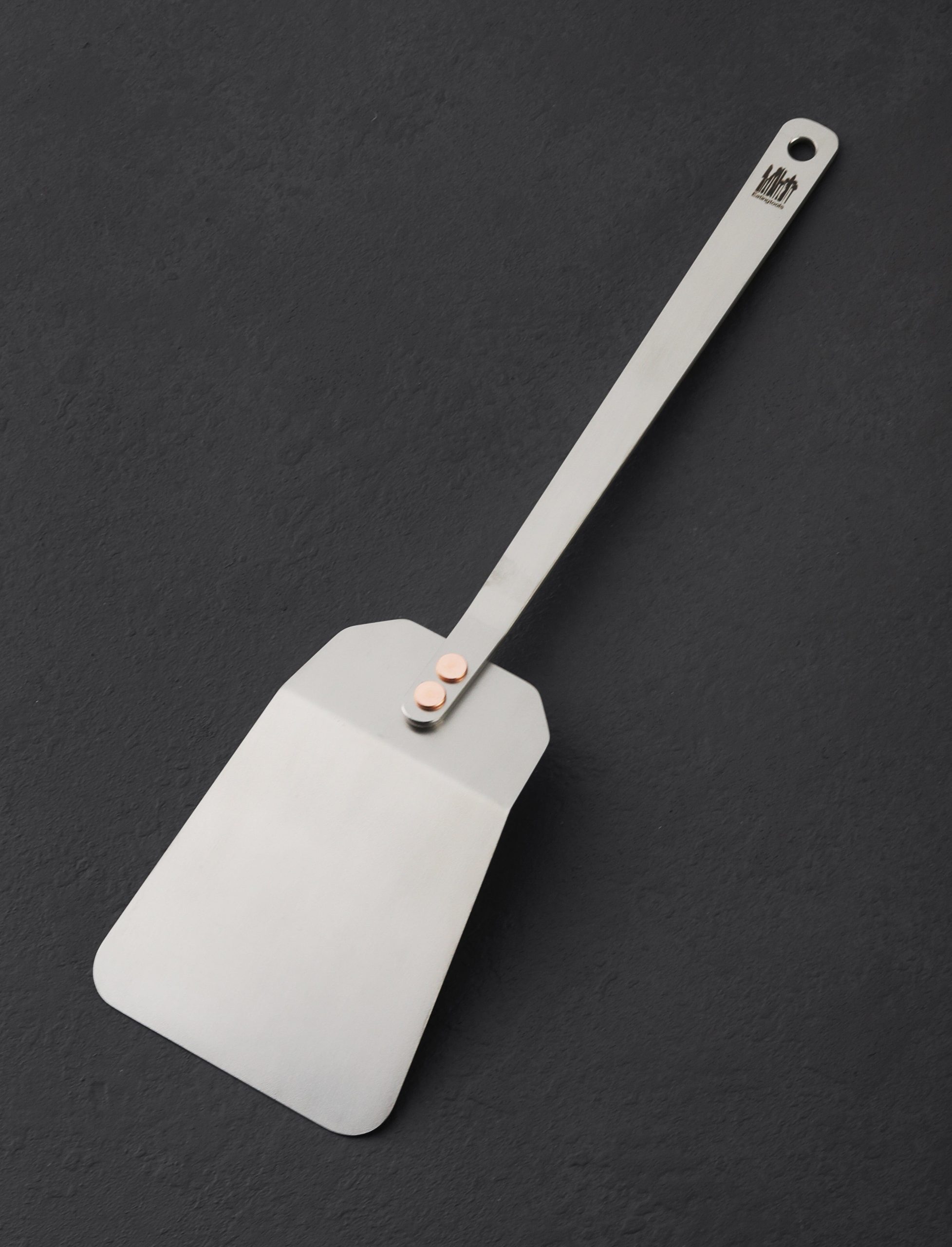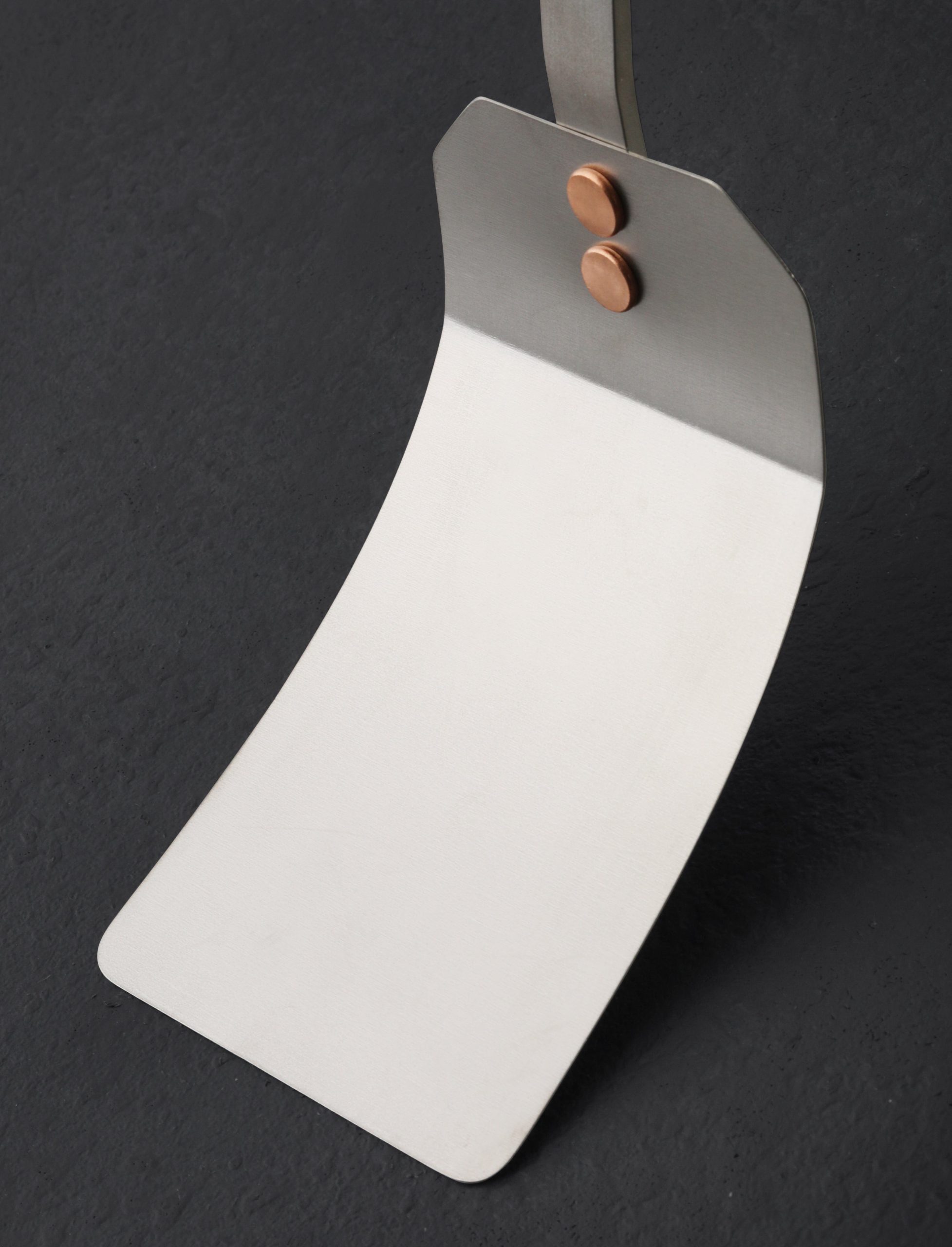 Available in Flat Head, Wide Head, and Angled Head styles, Ben Tendick’s TiSpats Titanium Spatulas now feature thinner, more flexible titanium heads for added versatility to perform superbly in the kitchen or outside at the grill. With rounded edges, the solid titanium heads maneuver well around the interiors of pans regardless of wall height and dimensions, and offer just the right amount of flexibility to easily bend and scoop in tight spaces yet with ample strength to hold the heaviest loads. Secured to the handle with solid, hand-pressed copper rivets, the Wide Head flares to 110mm / 4.3″, the widest out of all, for the biggest jobs. Lightweight, strong, noncorrosive, low in heat conductivity and nonmagnetic, titanium is the ultimate cookware material.