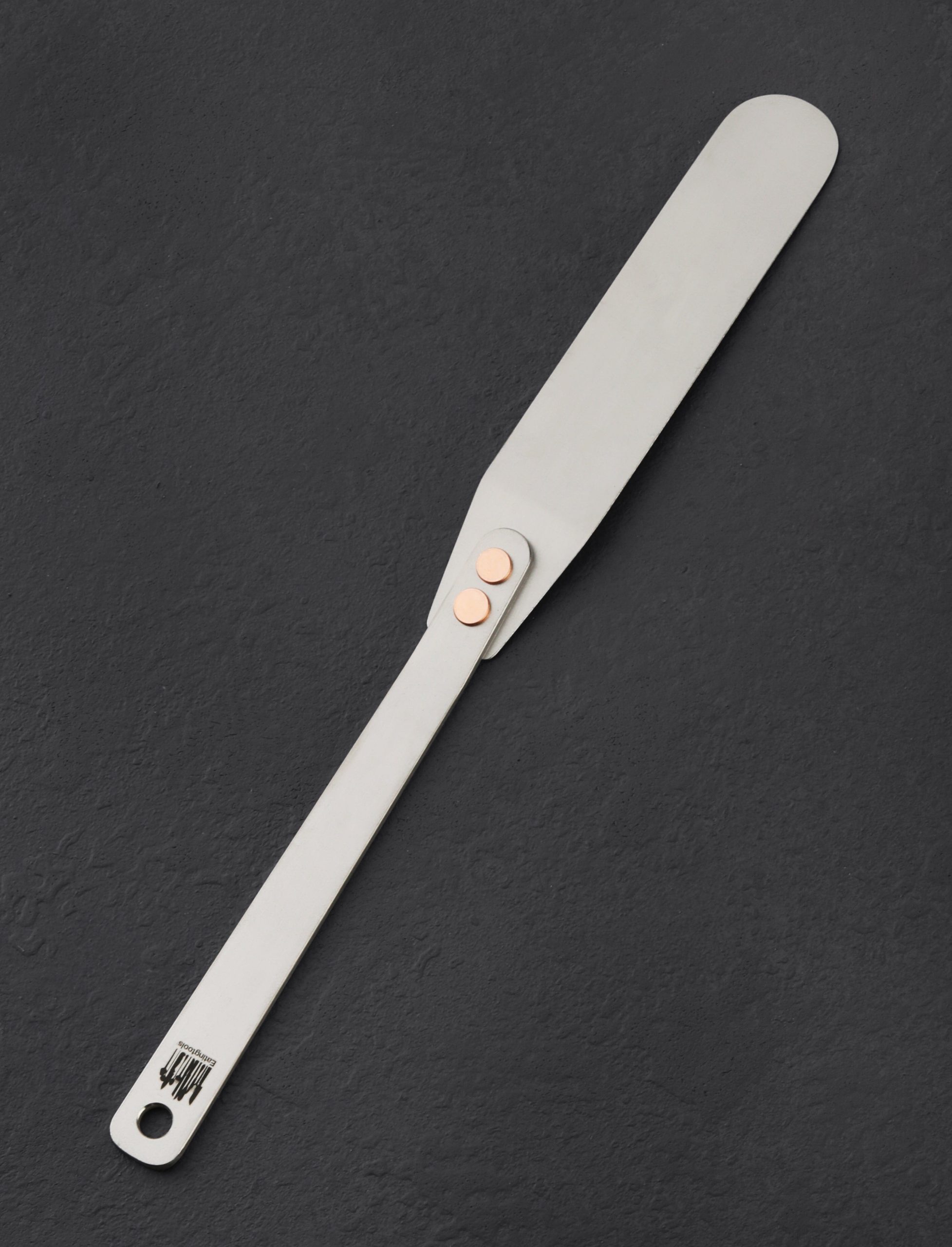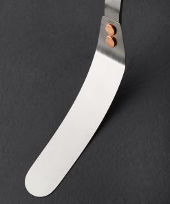 Made by Ben Tendick in Oregon, TiSpats Titanium Offset Spatula performs superbly in the kitchen, to spread icing on cake, flip crepes, or release a delicious loaf of bread before turning it out. With rounded edges, the solid titanium head maneuvers well around the interior walls of cookware, including cast iron and carbon steel, and offers just enough flexibility to easily bend and scoop in tight spaces yet with ample strength to hold the heaviest loads. Lightweight, strong, noncorrosive, low in heat conductivity and nonmagnetic, titanium is the ultimate cookware material.