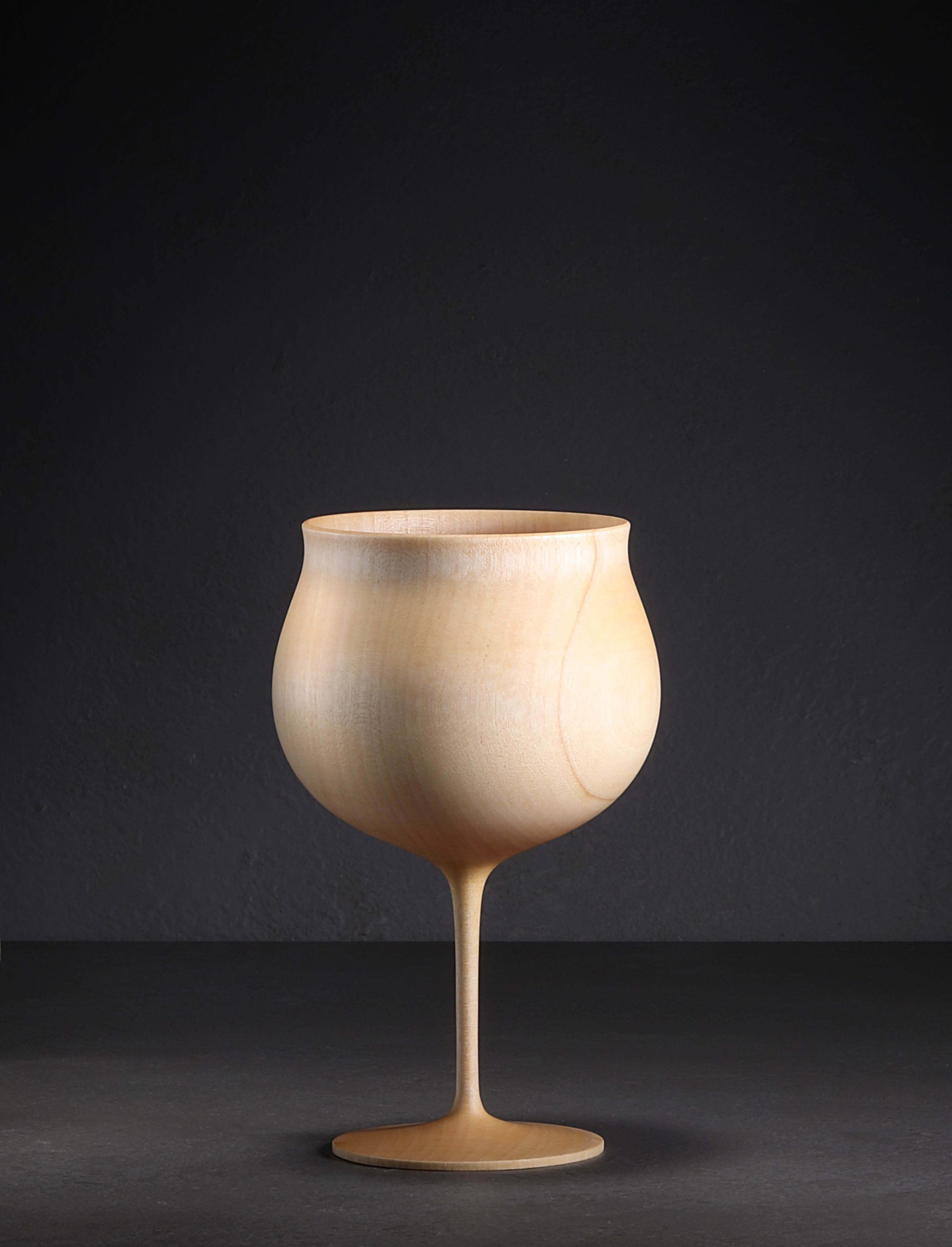 Delicate and specialized woodturning techniques practiced by only the most highly trained craftspeople in the Ishikawa Prefecture of Japan result in the Tohka collection’s exquisite Burgundy Wine Goblet. Designed by Masaharu Asano, each vessel is turned from locally-sourced water betula grossa wood that has been cut across its longitudinal grain, allowing the natural grain to show beautifully, and the cup’s striking form to be achieved, from its thin, precisely sculpted foot and stem, to the delicate, soft lip of the bowl. Available in black and natural wiped lacquer finishes, applied using the fukiurushi lacquering technique common to this region for hundreds of years, each goblet bares a smooth, warm, and welcoming feel in the hand, and at the lips. For the home bar and dining room, a handcrafted wooden wine goblet made from generations of dedication and passion for meticulous lacquerware.