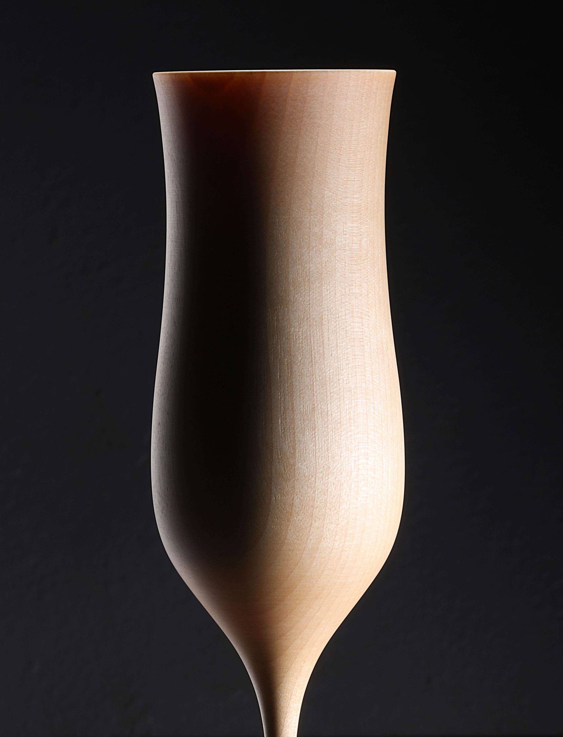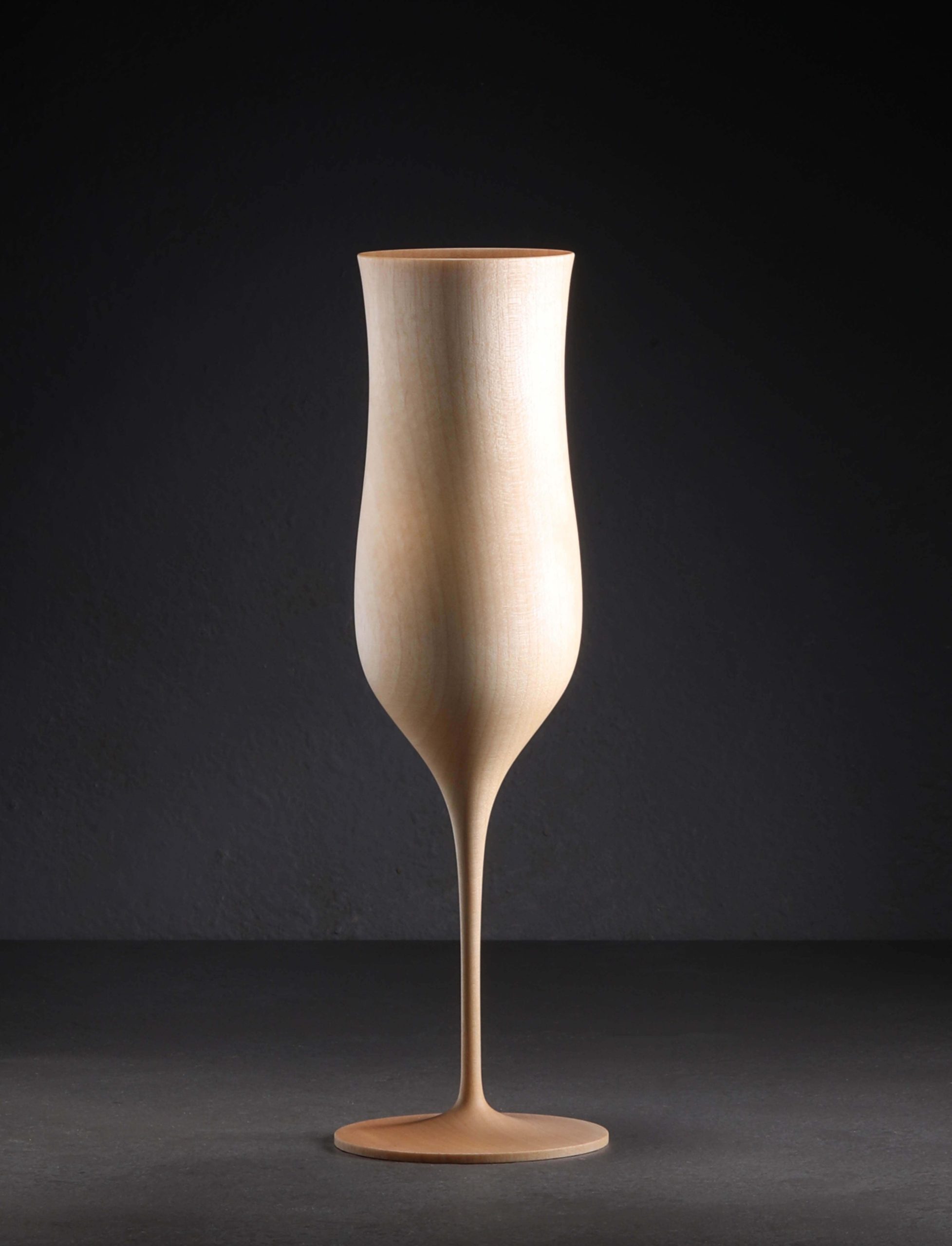 Pushing the limits of what is possible, this elegant champagne flute designed by Masaharu Asano is turned using traditional techniques by only the most skilled Yamanaka Lacquerware craftspeople. The betula grossa wood, known for its quality and durability, is harvested and prepared using the takidori approach whereby the material is cross cut along its longitudinal grain (tatekidori) and then delicately and meticulously turned to create a slender, elegant stem, precisely shaped foot, and a seamless, glass-thin bowl. Made one at a time, the Tohka collection is brought to life in this region of Japan famed for its lacquerware for hundreds of years, a craft practiced by generation after generation of artisan, including by Gato Mikio since its founding in 1908. Available in black and natural wiped lacquer finishes applied with the traditional fukiurushi method, a more beautiful champagne flute you will not soon find.